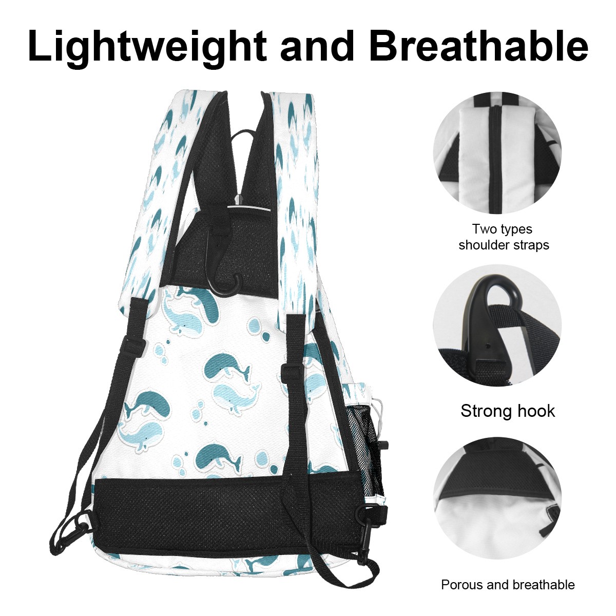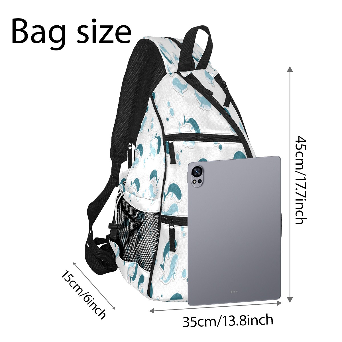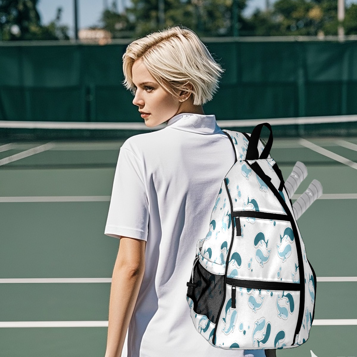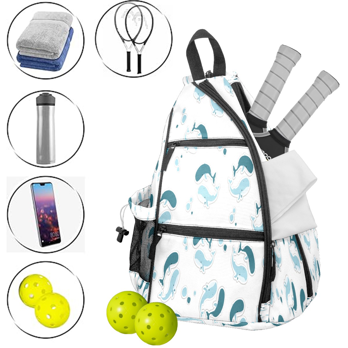 Pickleball Sling Bag for Women and Men - Backpack with Nylon Fabric/Woven Strap/Mesh Pocket/Fence Hook/Large Capacity/Adjustable Sling Bag Blue Whale