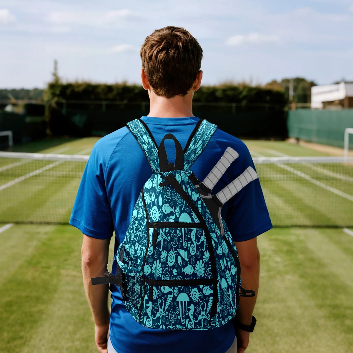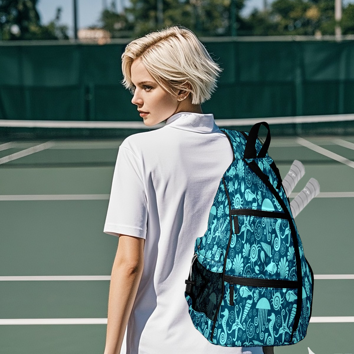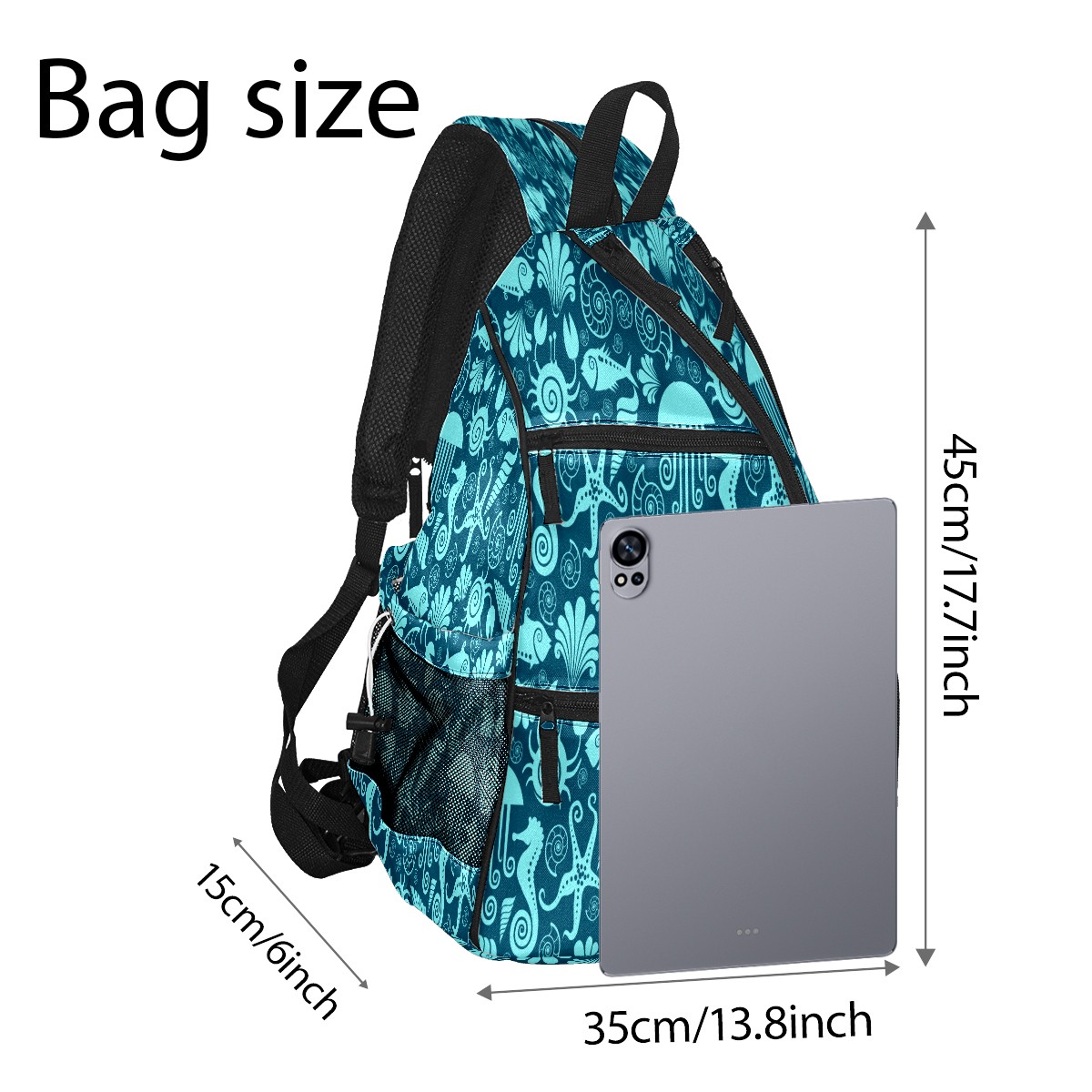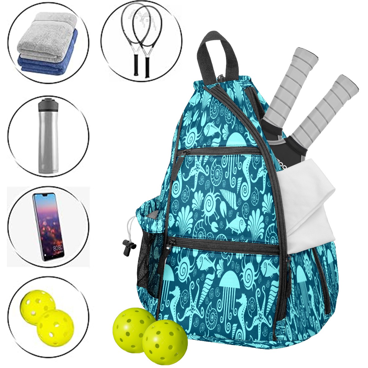 Pickleball Sling Bag for Women and Men - Backpack with Nylon Fabric/Woven Strap/Mesh Pocket/Fence Hook/Large Capacity/Adjustable Sling Bag Marine Life