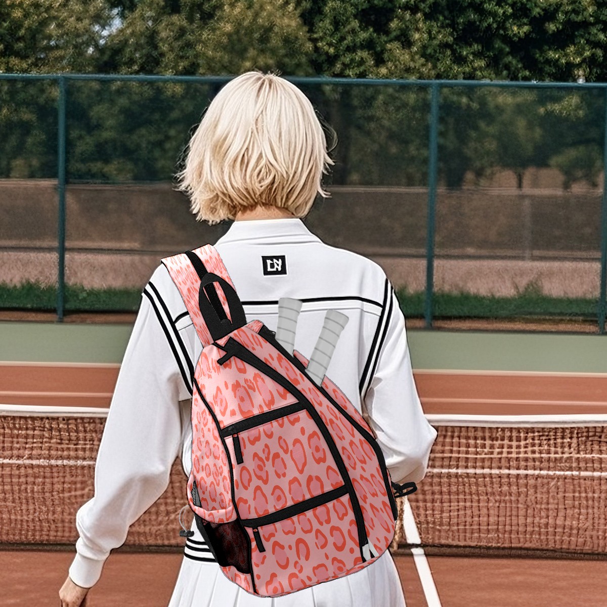 Pickleball Sling Bag for Women and Men - Backpack with Nylon Fabric/Woven Strap/Mesh Pocket/Fence Hook/Large Capacity/Adjustable Sling Bag Pink Leopard
