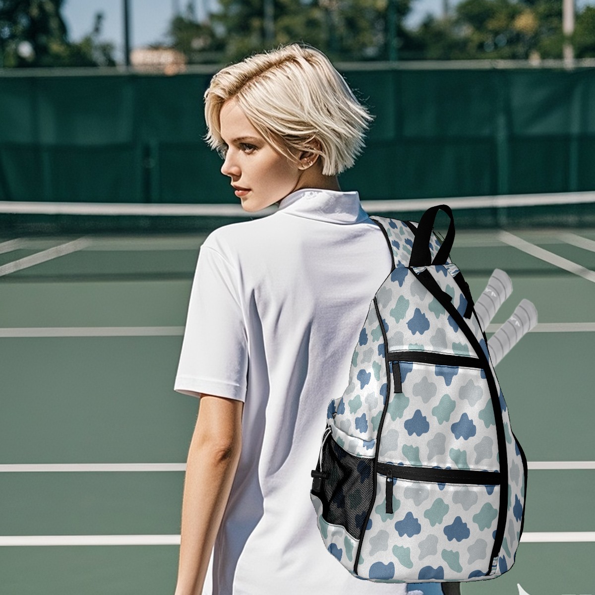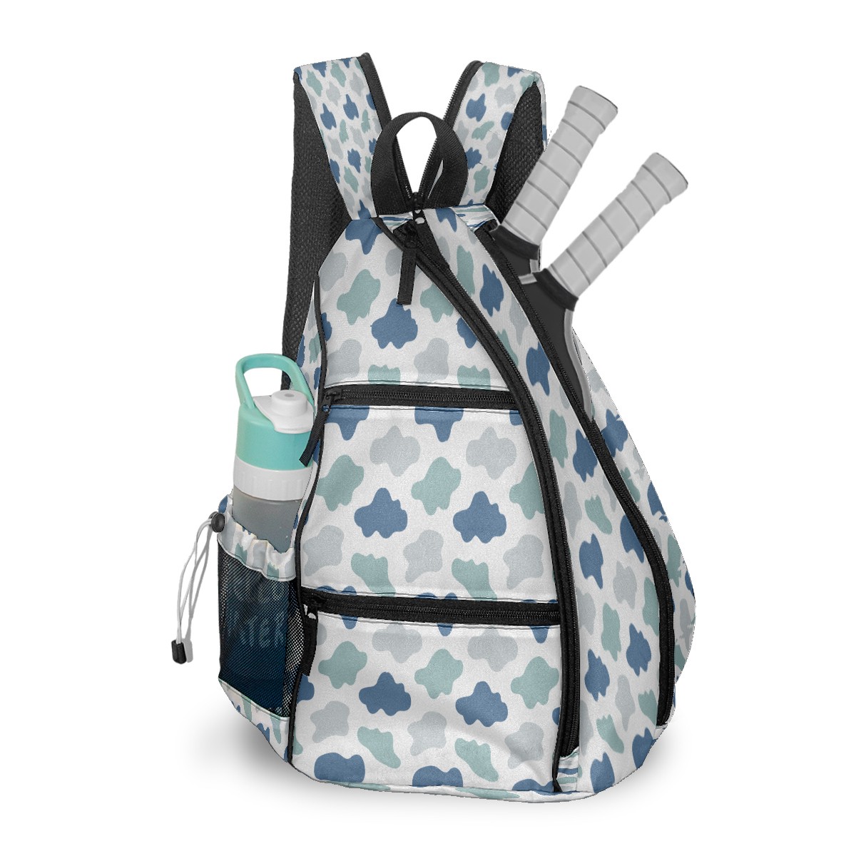 Pickleball Sling Bag for Women and Men - Backpack with Nylon Fabric/Woven Strap/Mesh Pocket/Fence Hook/Large Capacity/Adjustable Sling Bag Blue White Cloud Pattern