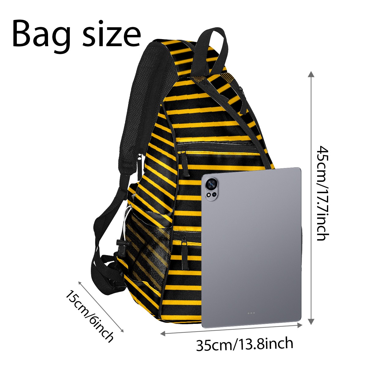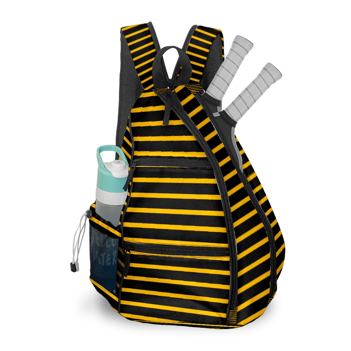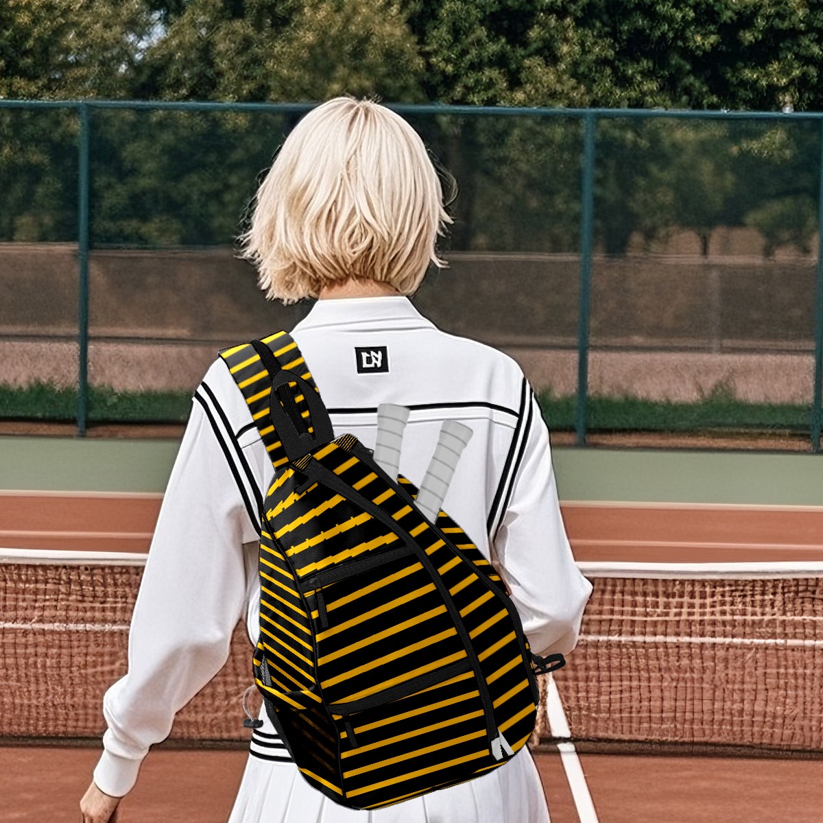 Pickleball Sling Bag for Women and Men - Backpack with Nylon Fabric/Woven Strap/Mesh Pocket/Fence Hook/Large Capacity/Adjustable Sling Bag Black Yellow Stripe