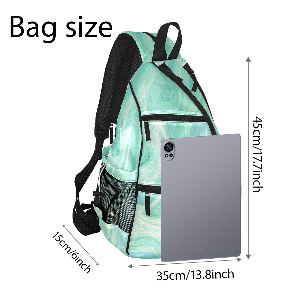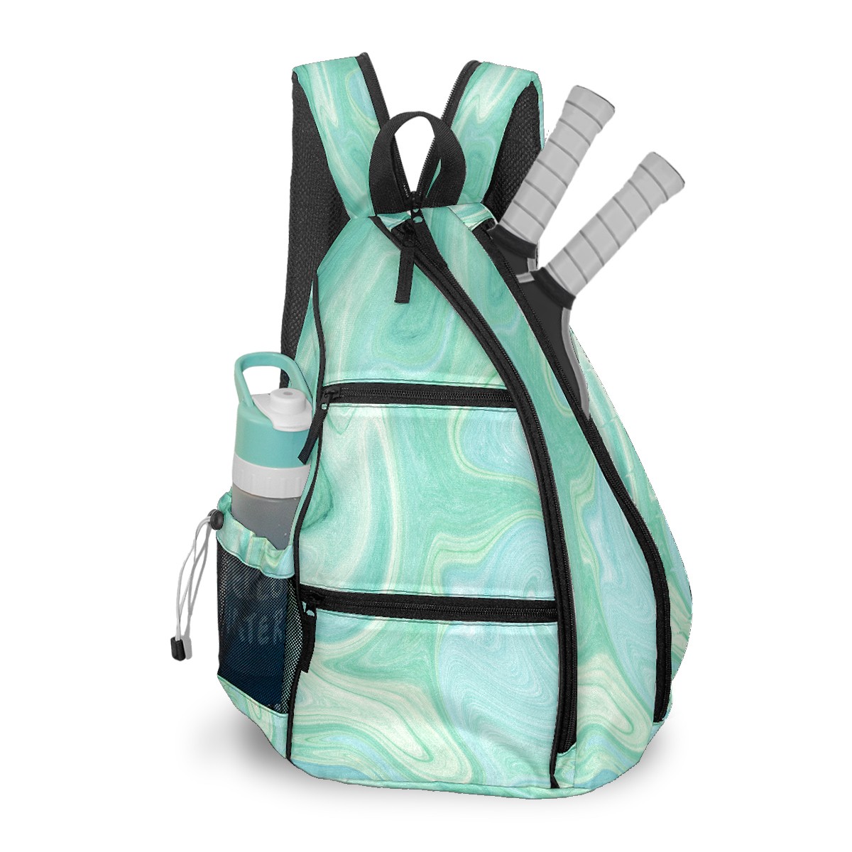 Pickleball Sling Bag for Women and Men - Backpack with Nylon Fabric/Woven Strap/Mesh Pocket/Fence Hook/Large Capacity/Adjustable Sling Bag Abstract Painting Green