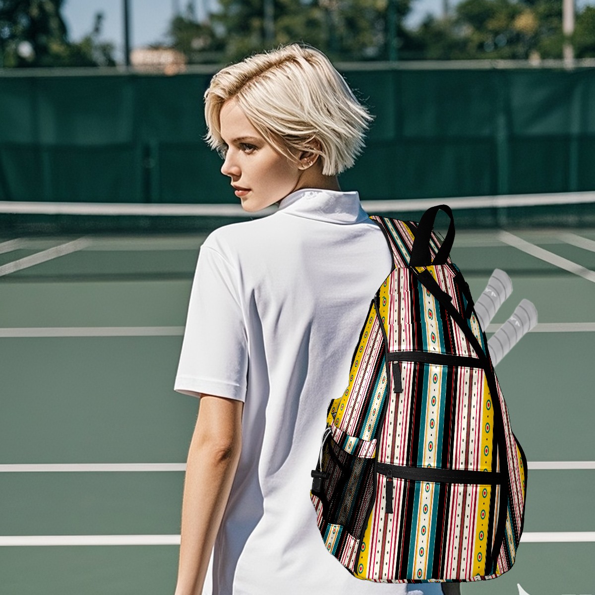 <p>Pickleball Bag | From “Equipment Chaos” to “One Bag to Rule Them All” — A Revolution on the Court</p> <p>The Origin: Every time we bent down to pick up scattered rackets, balls, and water bottles, we silently vowed — we had to create a pickleball bag that could “cure laziness”!</p> <p>✨ 5 Core Features, Designed for Pickleball Players</p> <p>✅ Durable Construction: Wear-resistant nylon + reinforced woven straps + breathable mesh pockets withstand the “brutal tests” of dropping rackets and dragging on the ground; the mesh pockets also allow wet towels to “breathe”;</p> <p>✅ Spacious storage: 15×35×45cm golden dimensions, easily accommodating 2 racquets + 10 balls + water bottle + spare clothes, saying goodbye to the awkwardness of “left hand holding the racquet, right hand chasing the ball”;</p> <p>✅ Cloud-like carrying experience: Padded back panel + air mesh shoulder straps, feel like you're being carried by a cloud while swinging your racket, no sweating even after prolonged use, no soreness after playing, keep your energy for what you love;</p> <p>✅ Transformable magic: Shoulder straps hide a “zipper mechanism,” unzip to instantly transform into a daily crossbody bag — take it straight to the mall after work, seamless transition from commuting to playing;</p> <p>✅ Bag Recognition Tool: Exclusive contrasting patterns act like a “signal flare” on the court, making your bag stand out in a crowd. No more worries about grabbing the wrong one!</p> <p>Starting with solving your own problems, we hope this bag will accompany you in swinging your racket with abandon, leaving all your energy for what you love!</p>