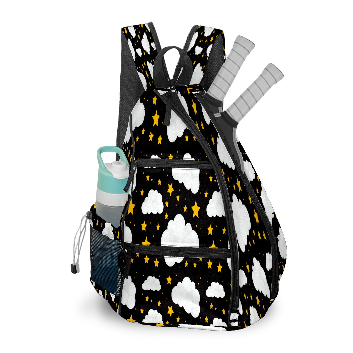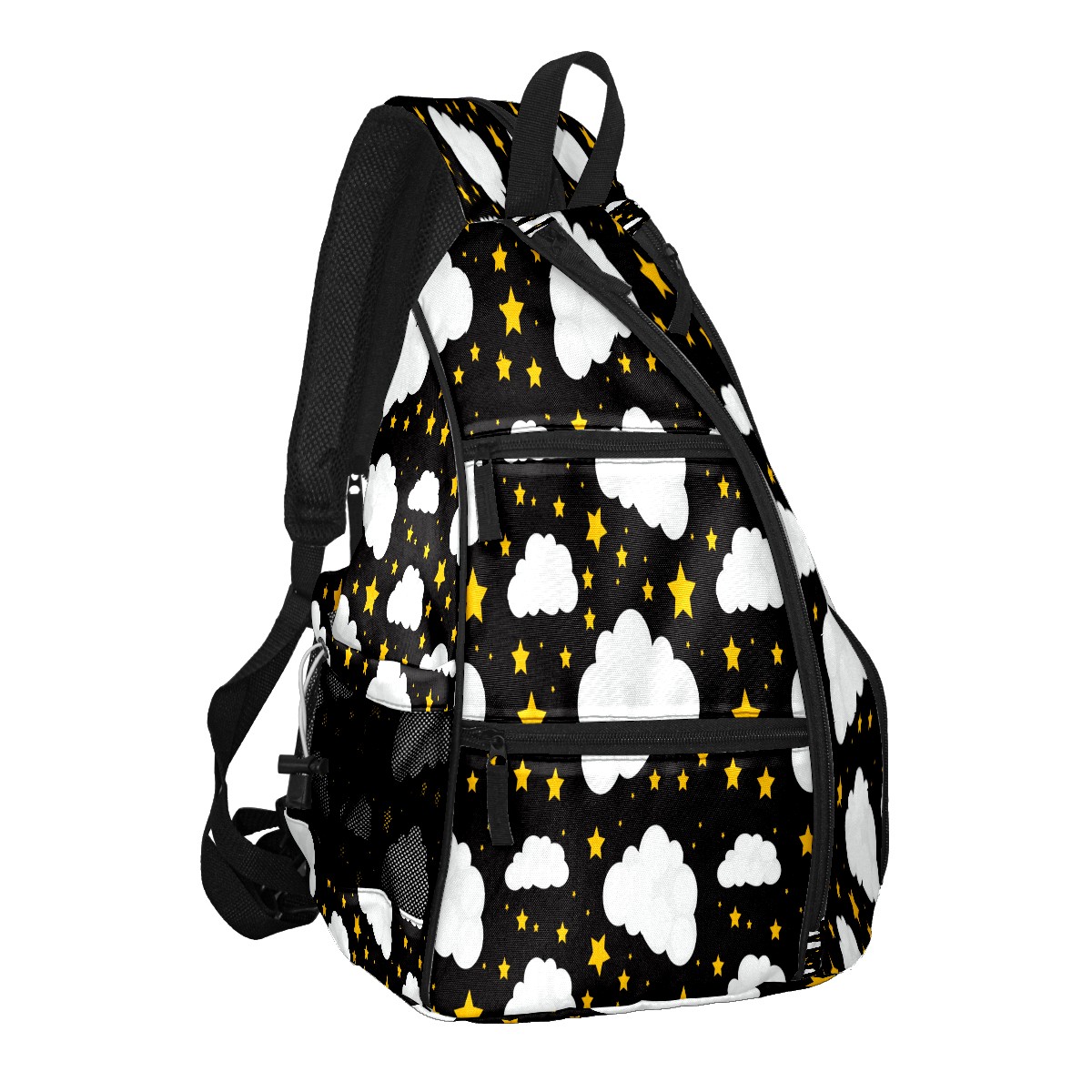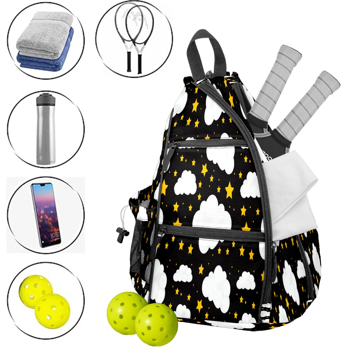 Pickleball Sling Bag for Women and Men - Backpack with Nylon Fabric/Woven Strap/Mesh Pocket/Fence Hook/Large Capacity/Adjustable Sling Bag Space Clouds Stars Pattern