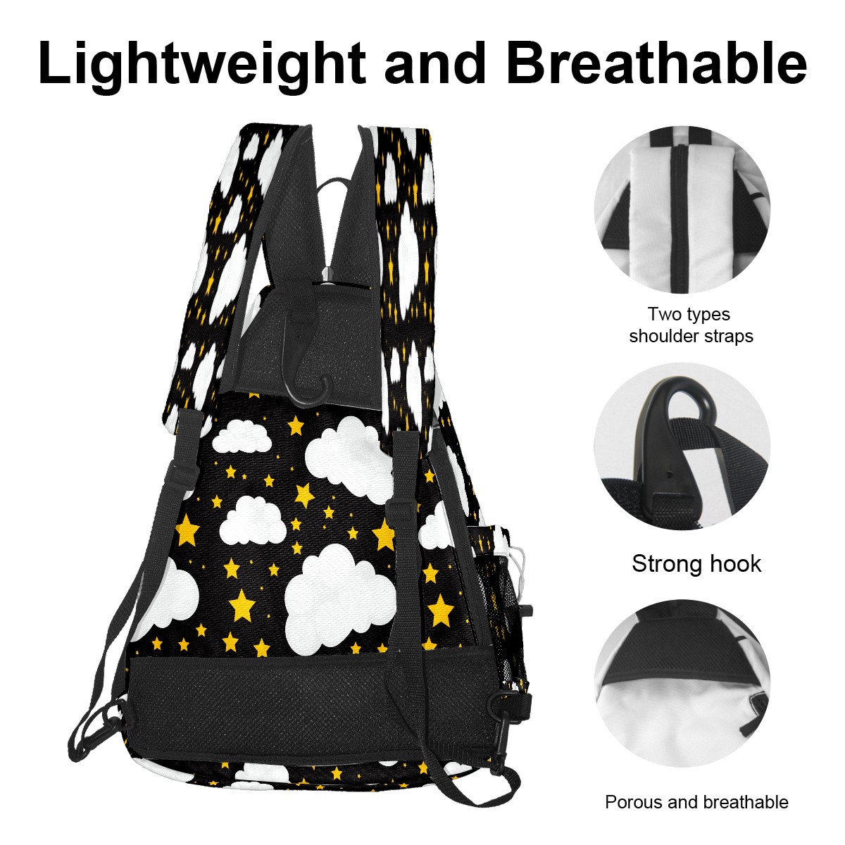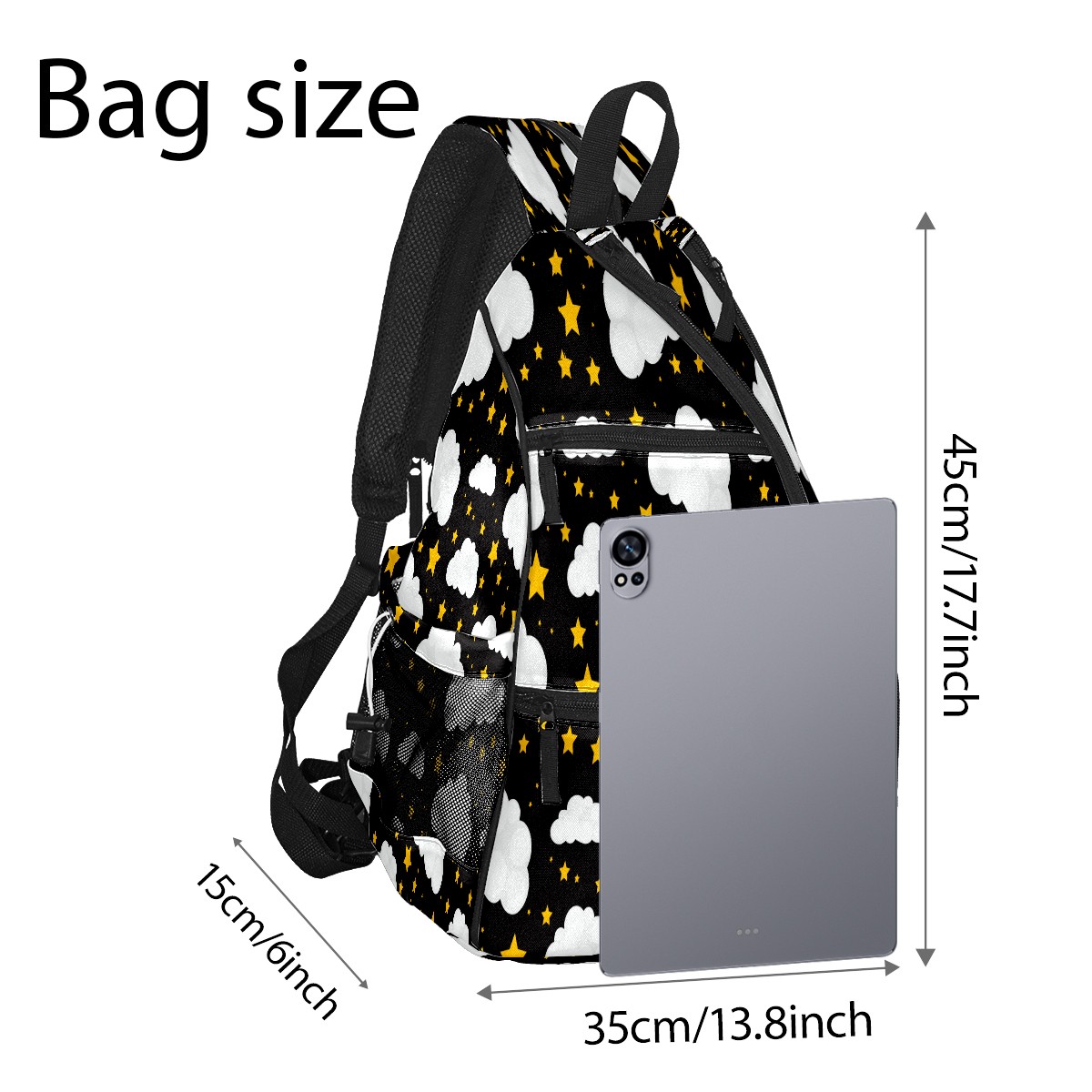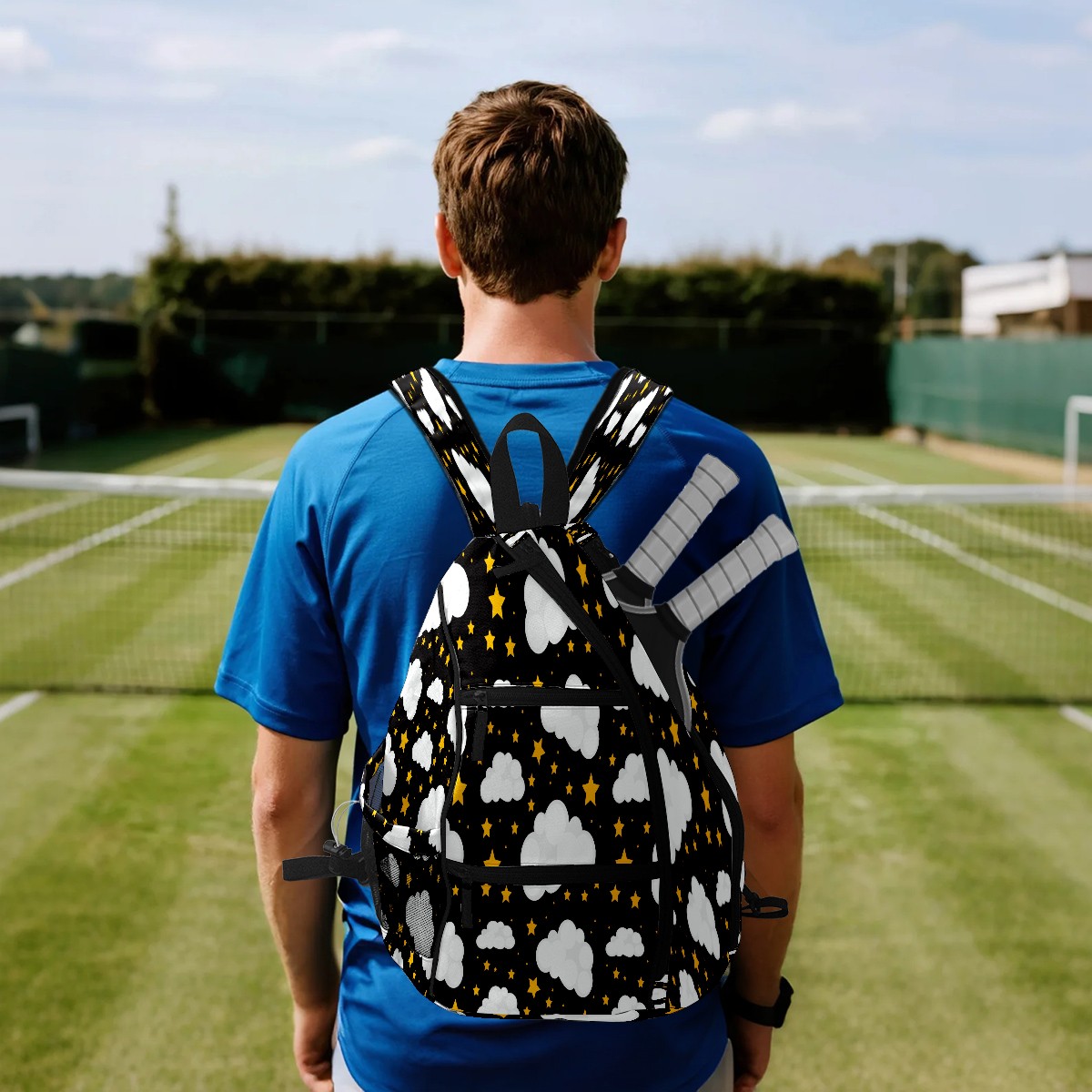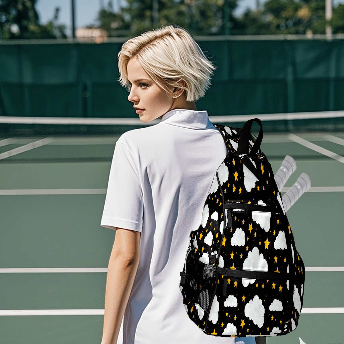 Pickleball Sling Bag for Women and Men - Backpack with Nylon Fabric/Woven Strap/Mesh Pocket/Fence Hook/Large Capacity/Adjustable Sling Bag Space Clouds Stars Pattern