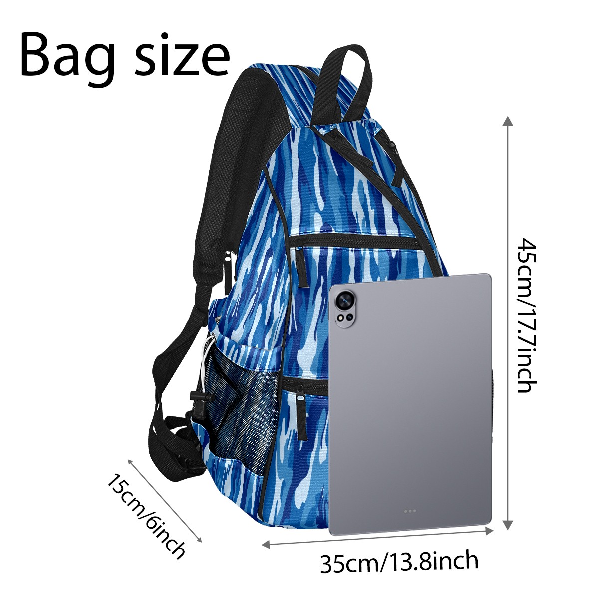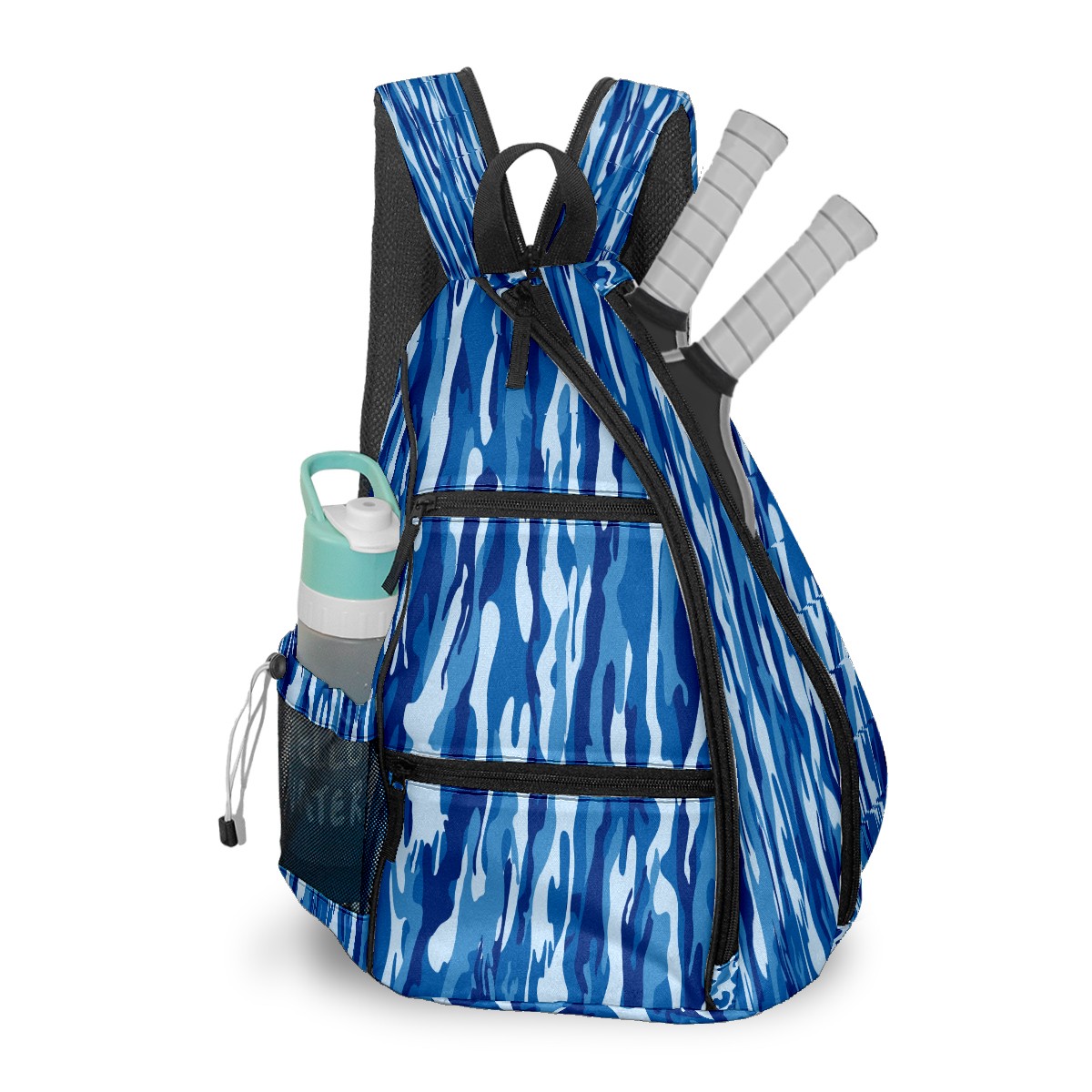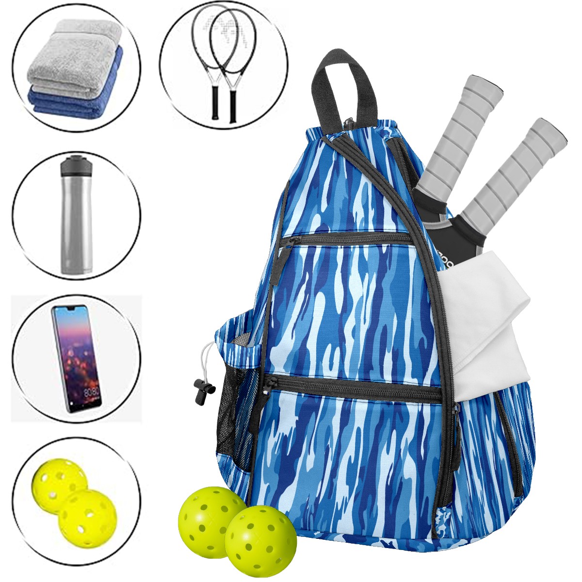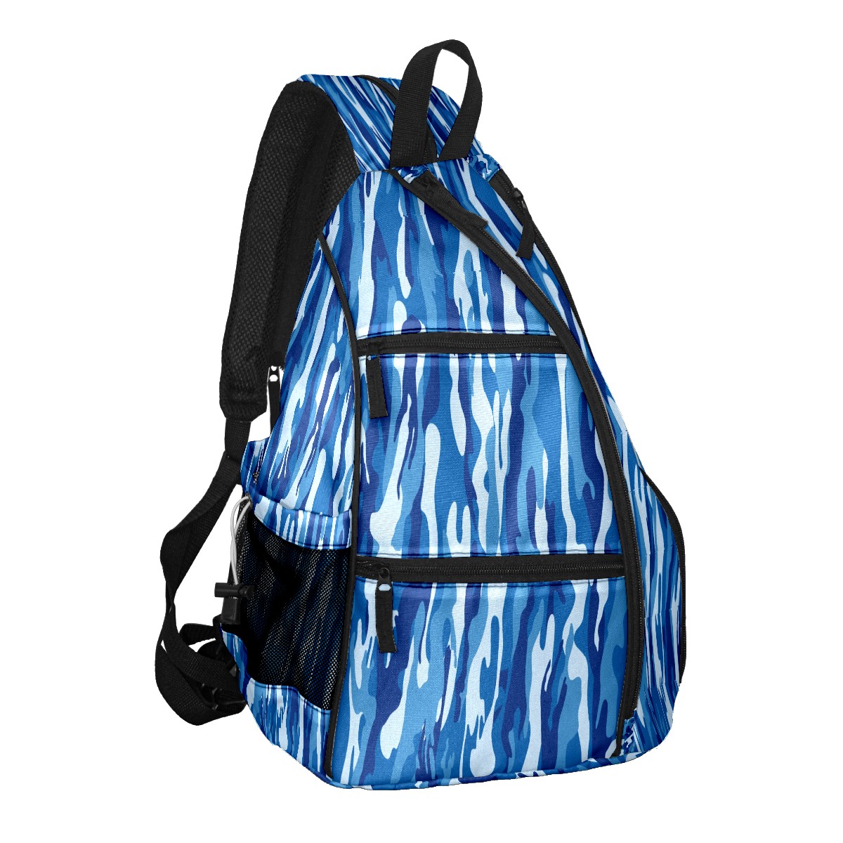 Pickleball Sling Bag for Women and Men - Backpack with Nylon Fabric/Woven Strap/Mesh Pocket/Fence Hook/Large Capacity/Adjustable Sling Bag Navy Blue Camouflage Pattern
