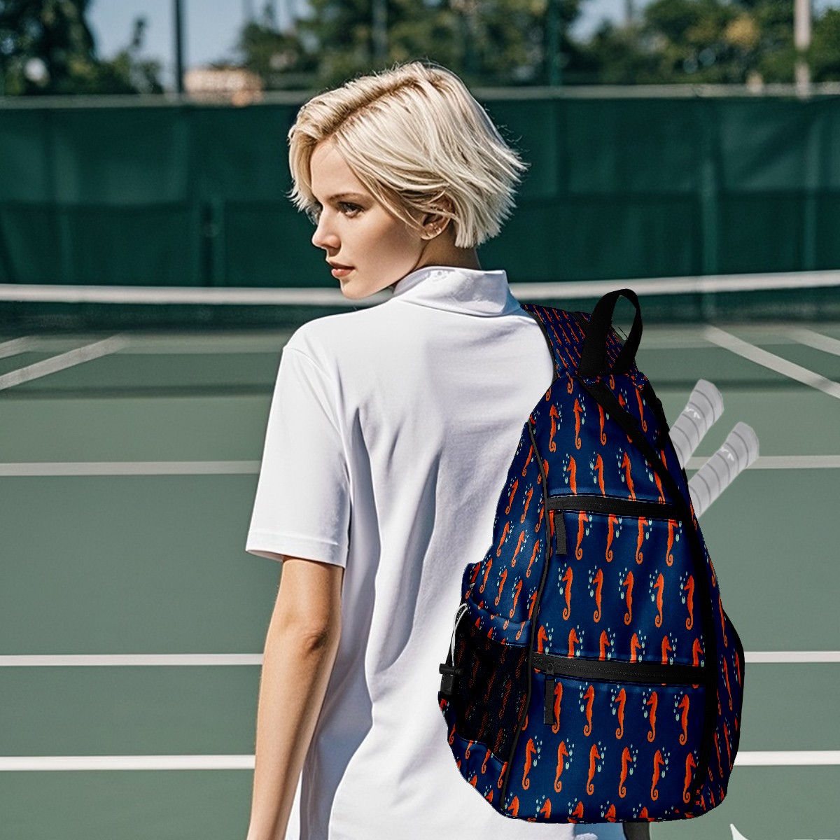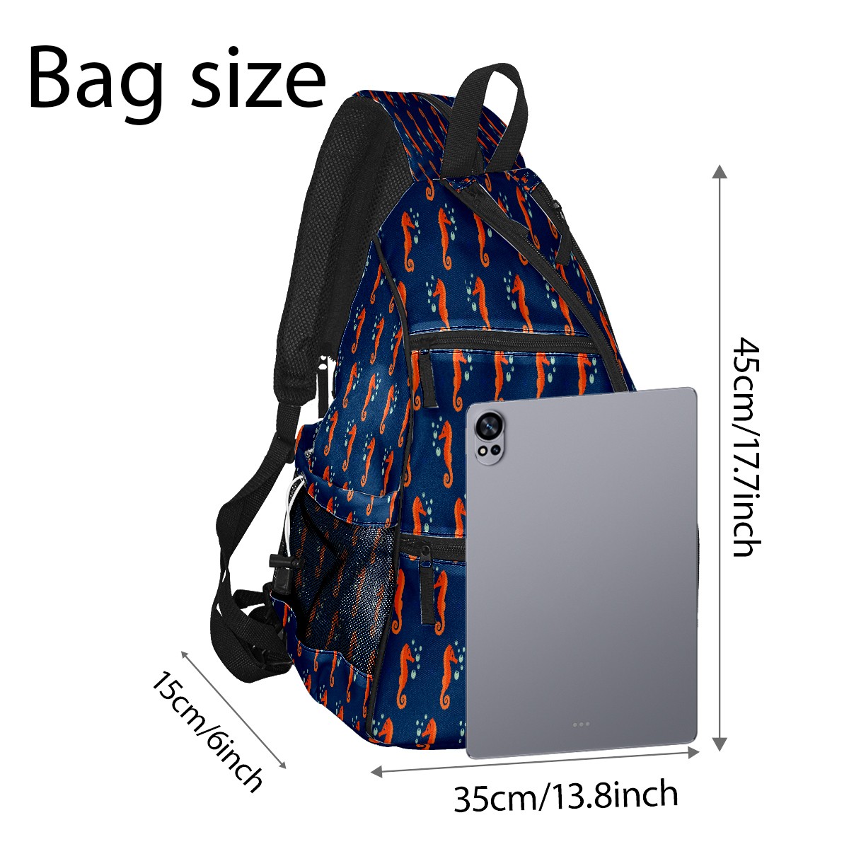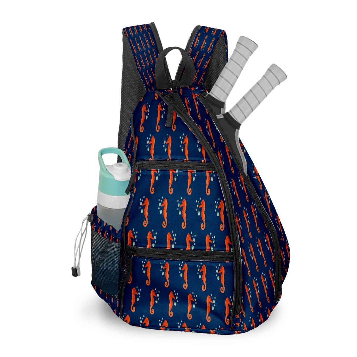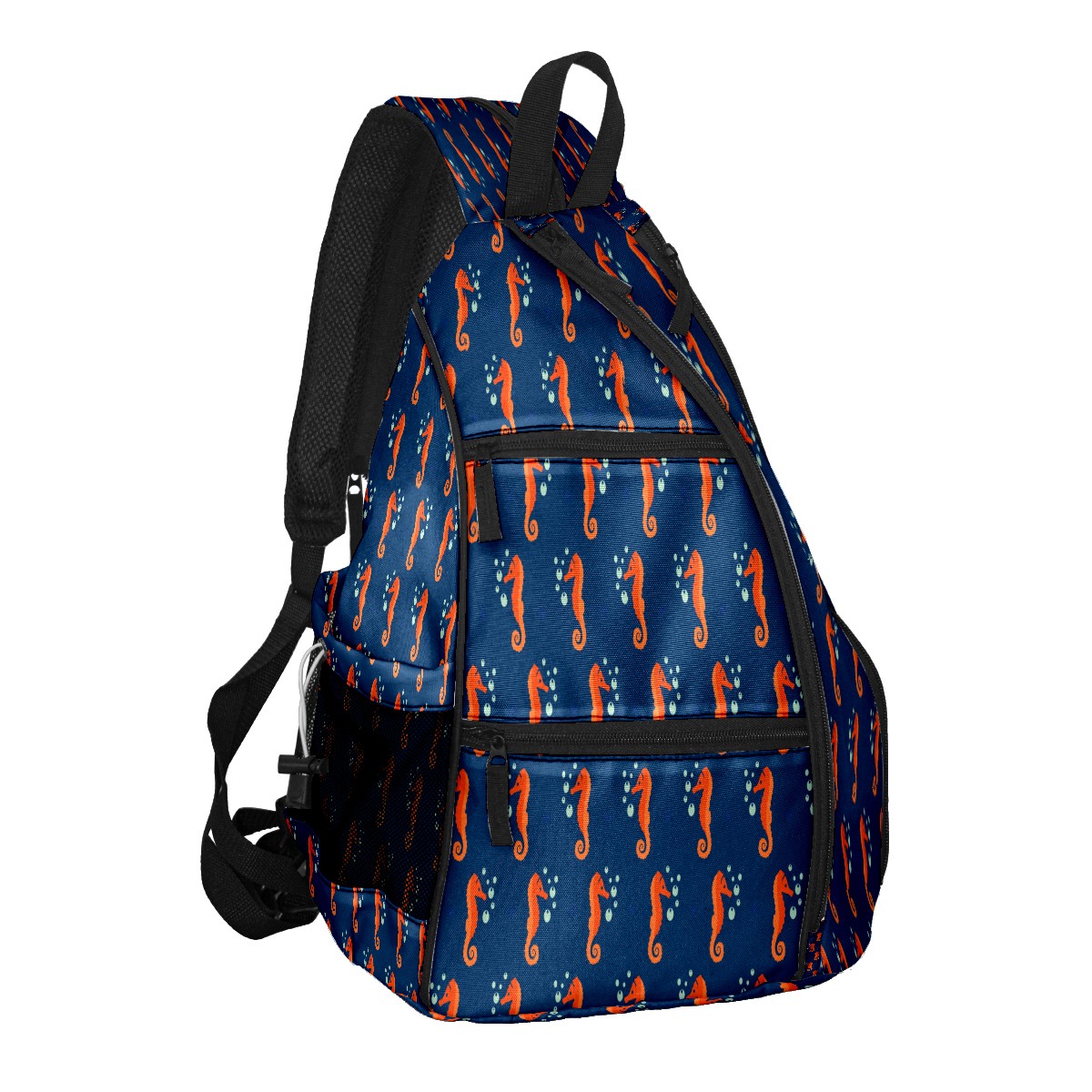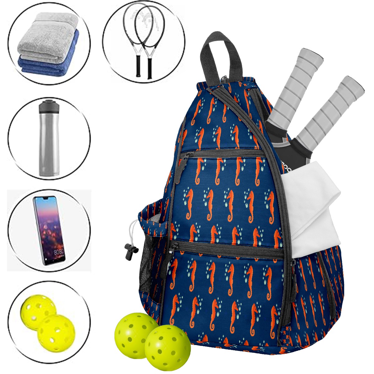 Pickleball Sling Bag for Women and Men - Backpack with Nylon Fabric/Woven Strap/Mesh Pocket/Fence Hook/Large Capacity/Adjustable Sling Bag Seahorse Pattern