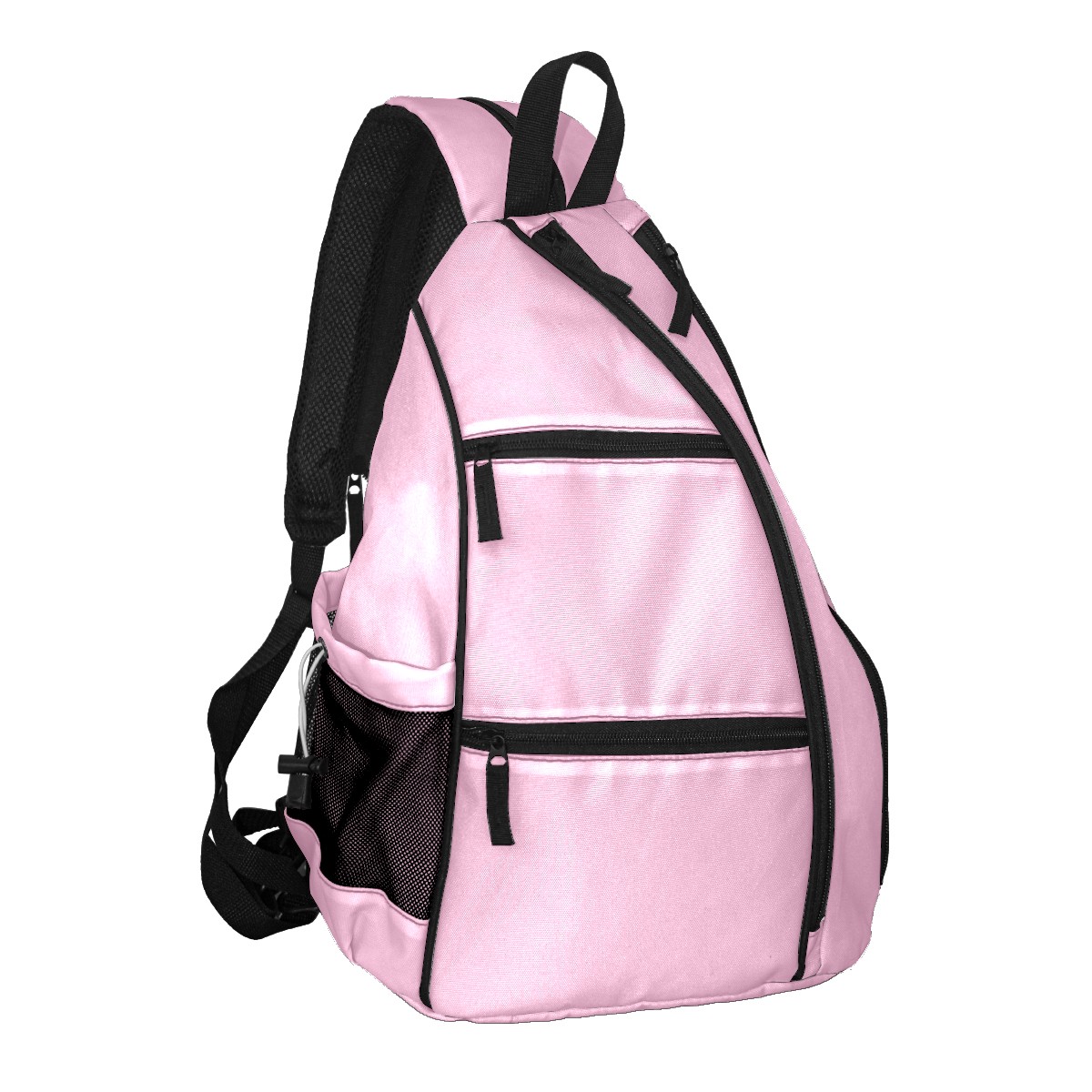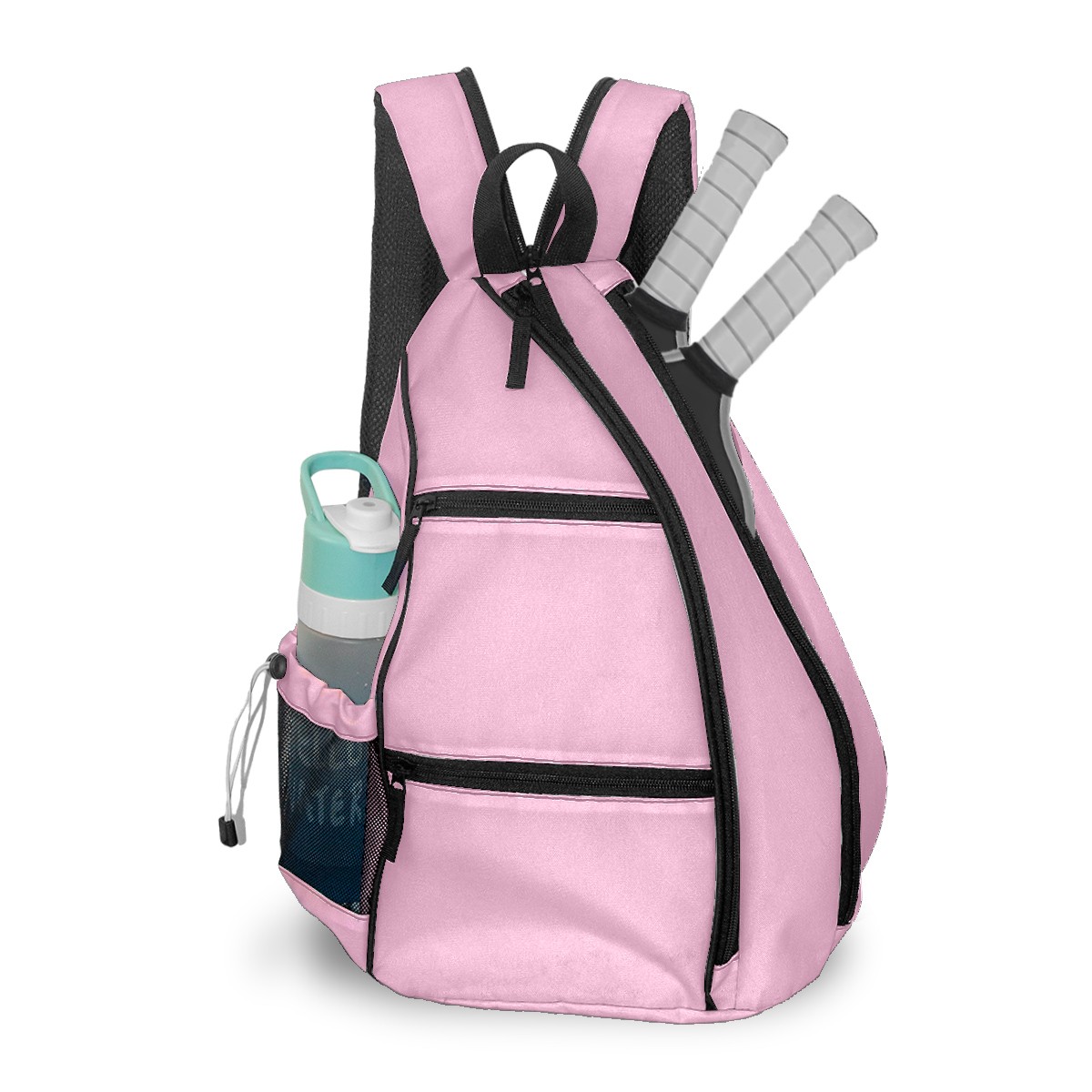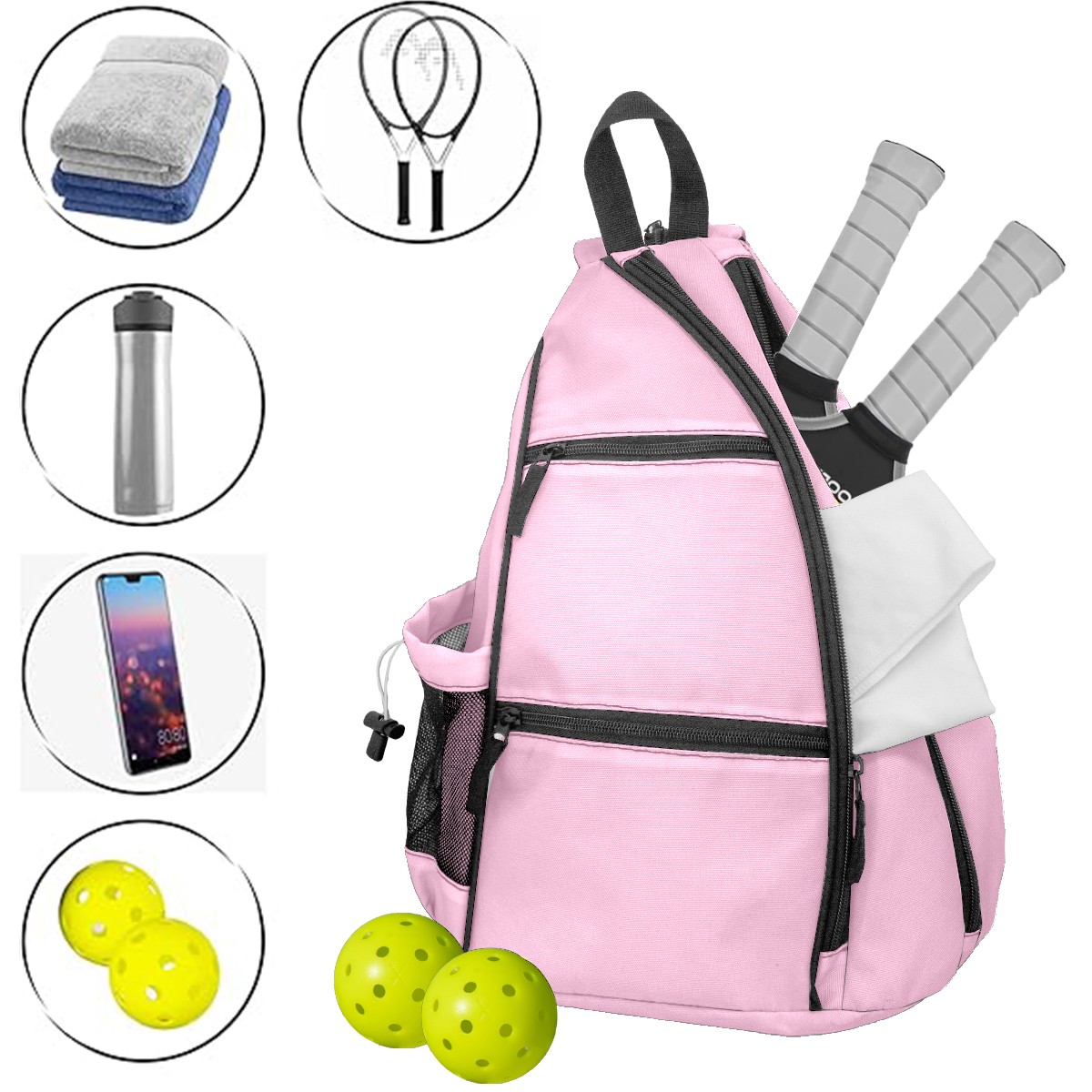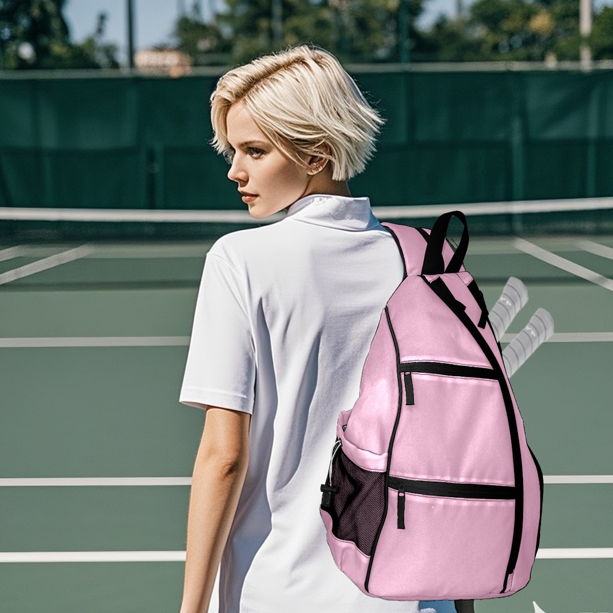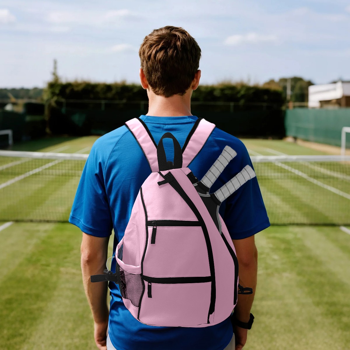 Pickleball Sling Bag for Women and Men - Backpack with Nylon Fabric/Woven Strap/Mesh Pocket/Fence Hook/Large Capacity/Adjustable Sling Bag Pink Pattern