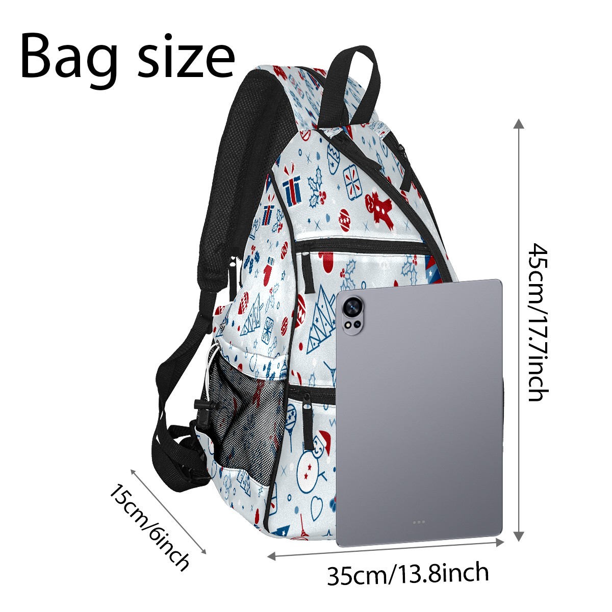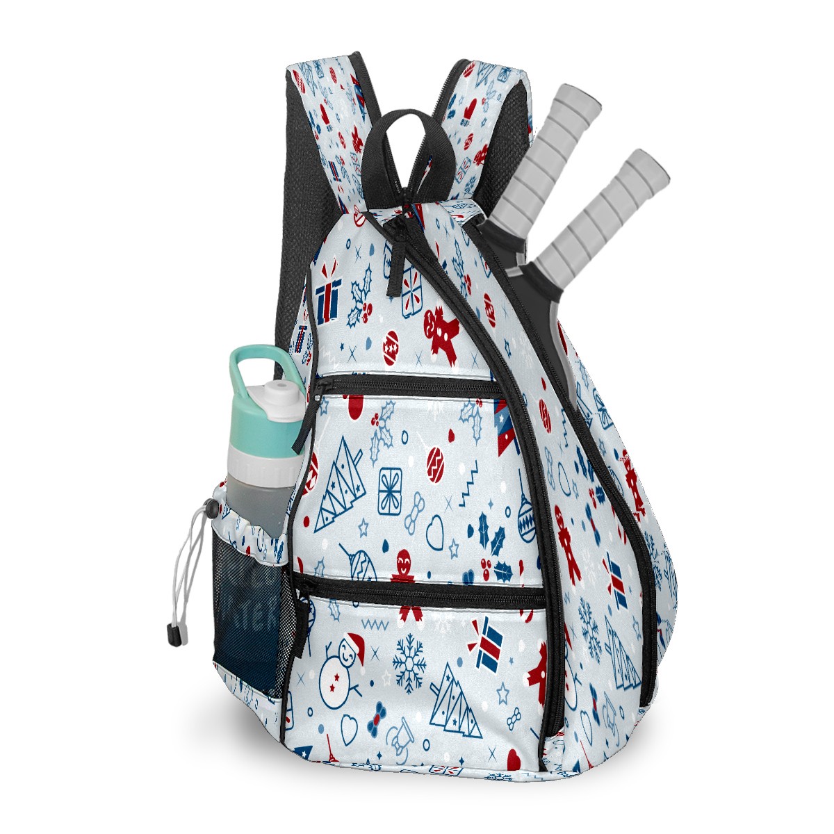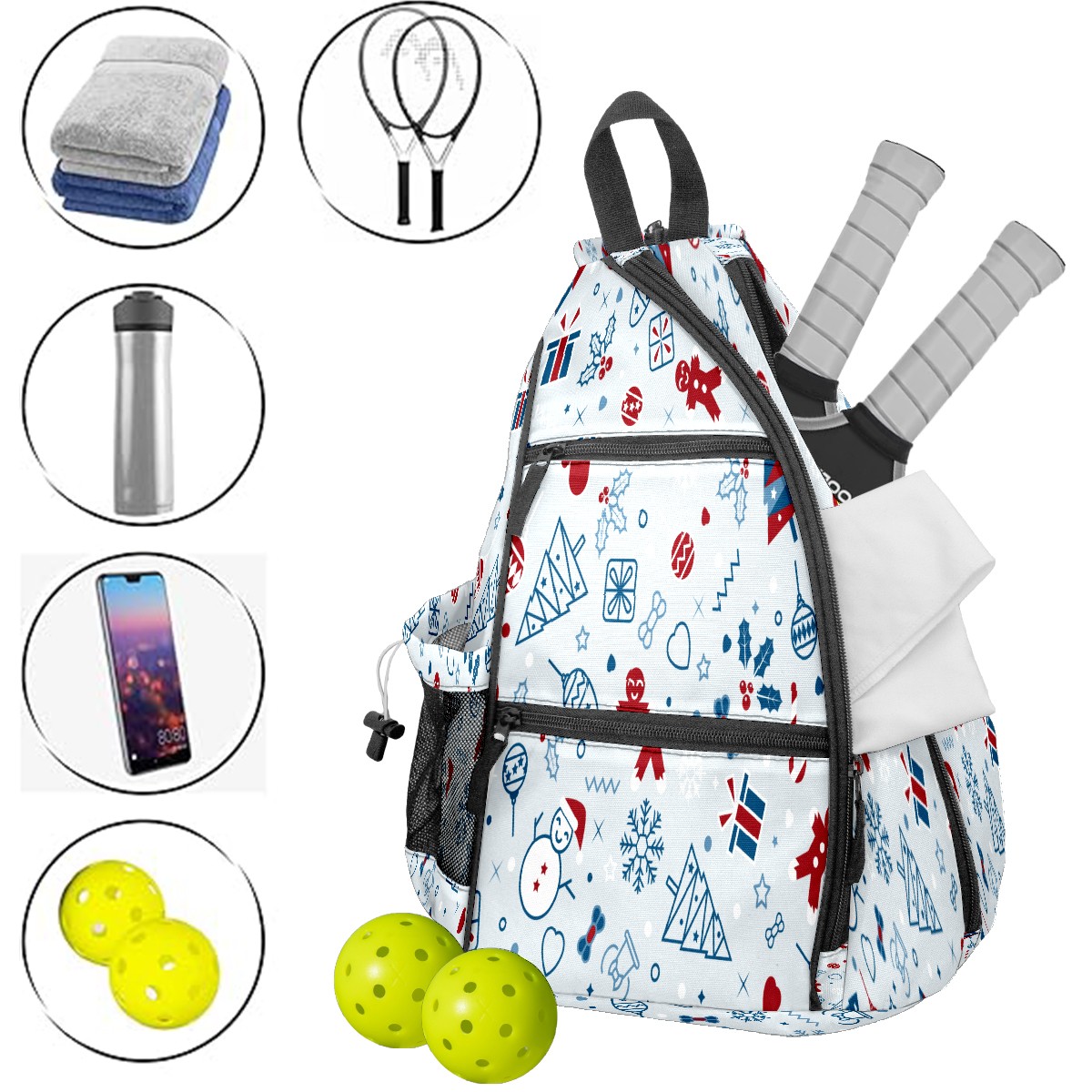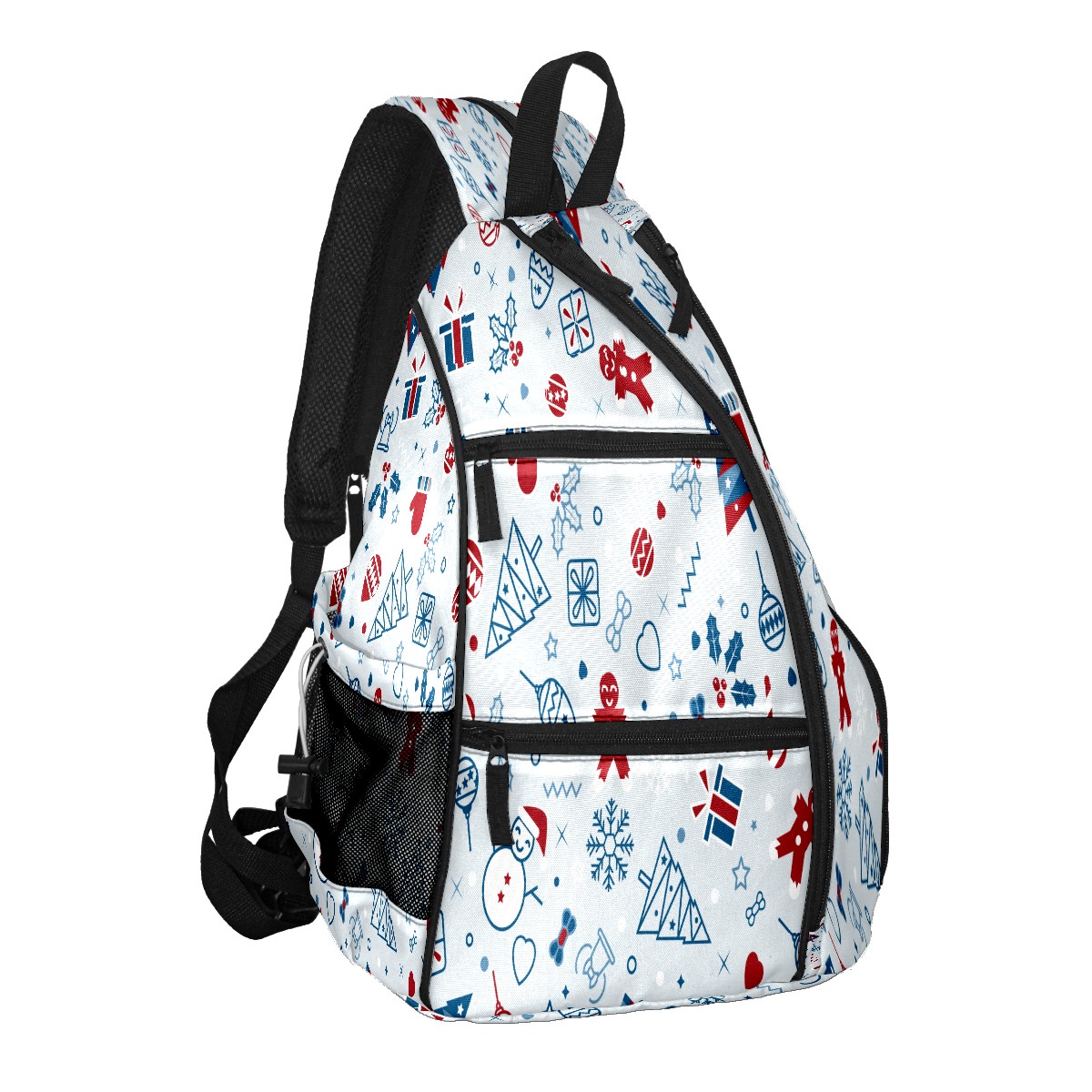 Pickleball Sling Bag for Women and Men - Backpack with Nylon Fabric/Woven Strap/Mesh Pocket/Fence Hook/Large Capacity/Adjustable Sling Bag Snowman Tree Candy Pattern