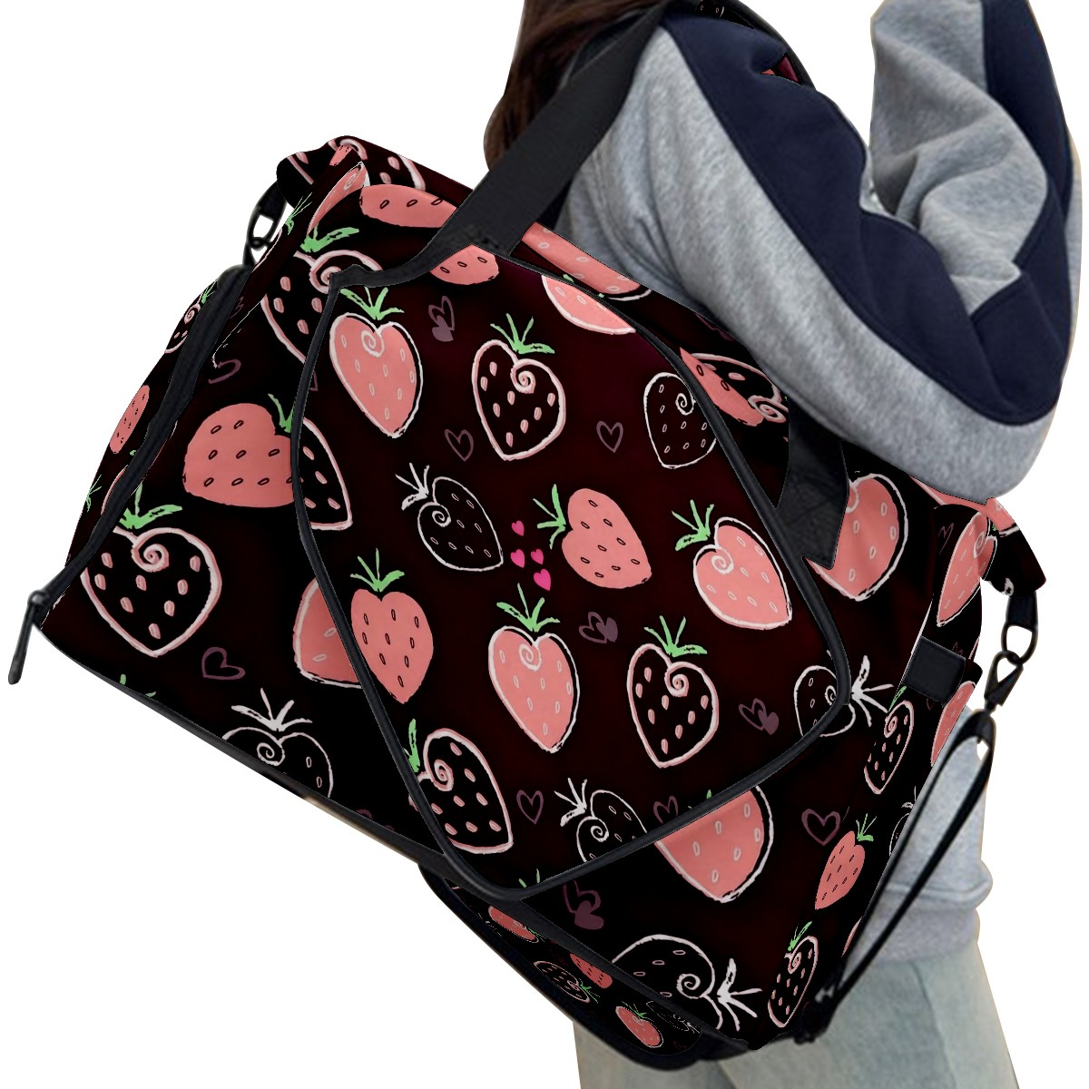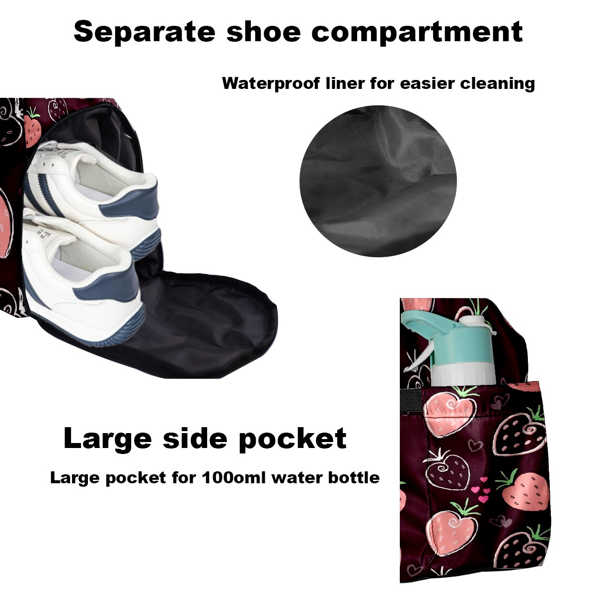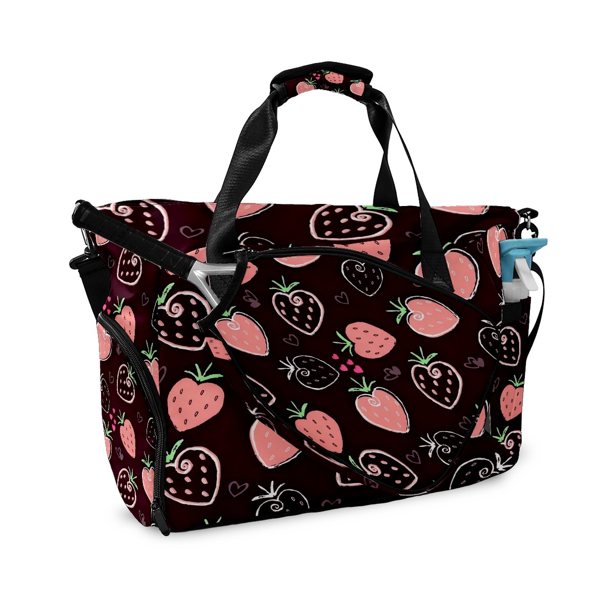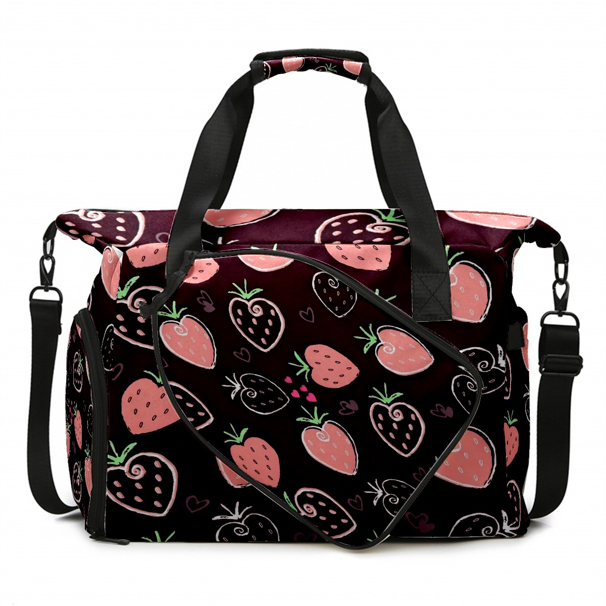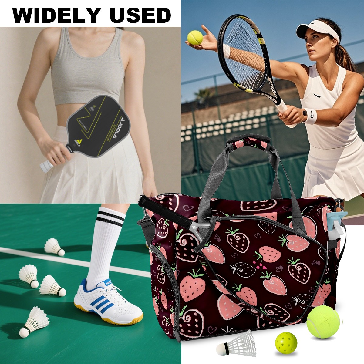 Pickleball Bag for Men and Women,with Water Bottle Holder and Separate Shoe Compartment, Hand Drawn Strawberry Pattern Great Best Gift for Pickleball Enthusiasts