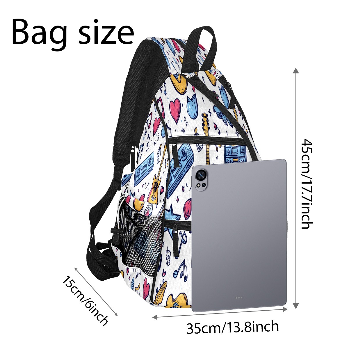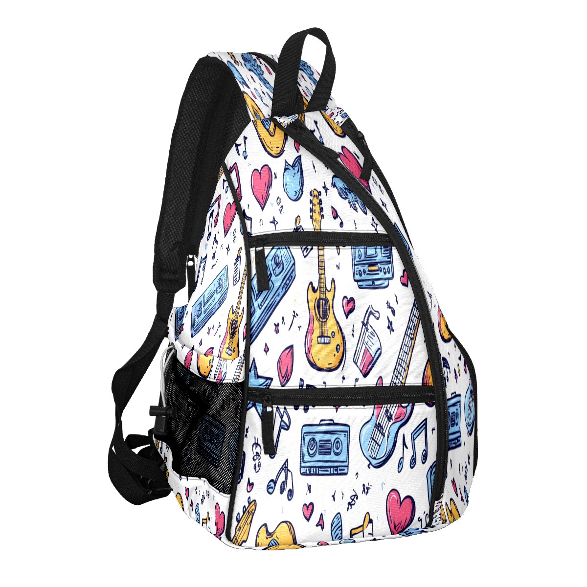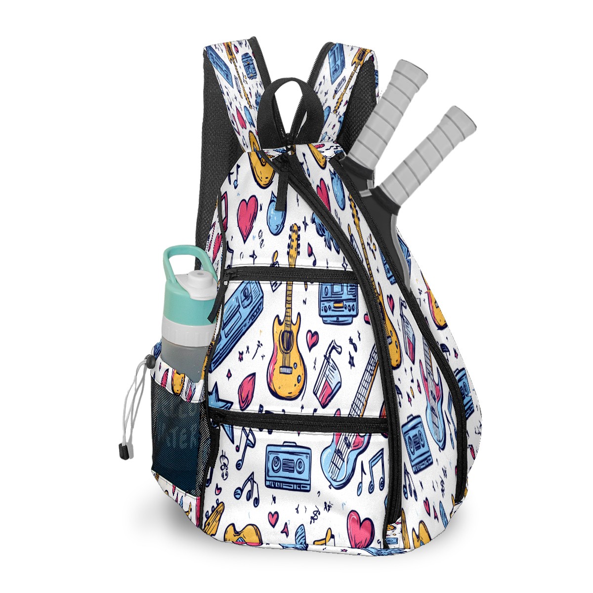 Pickleball Shoulder Bag for Men and Women - Fence Hook - Crossbody Backpack with Water Bottle Holder Rock Guitar