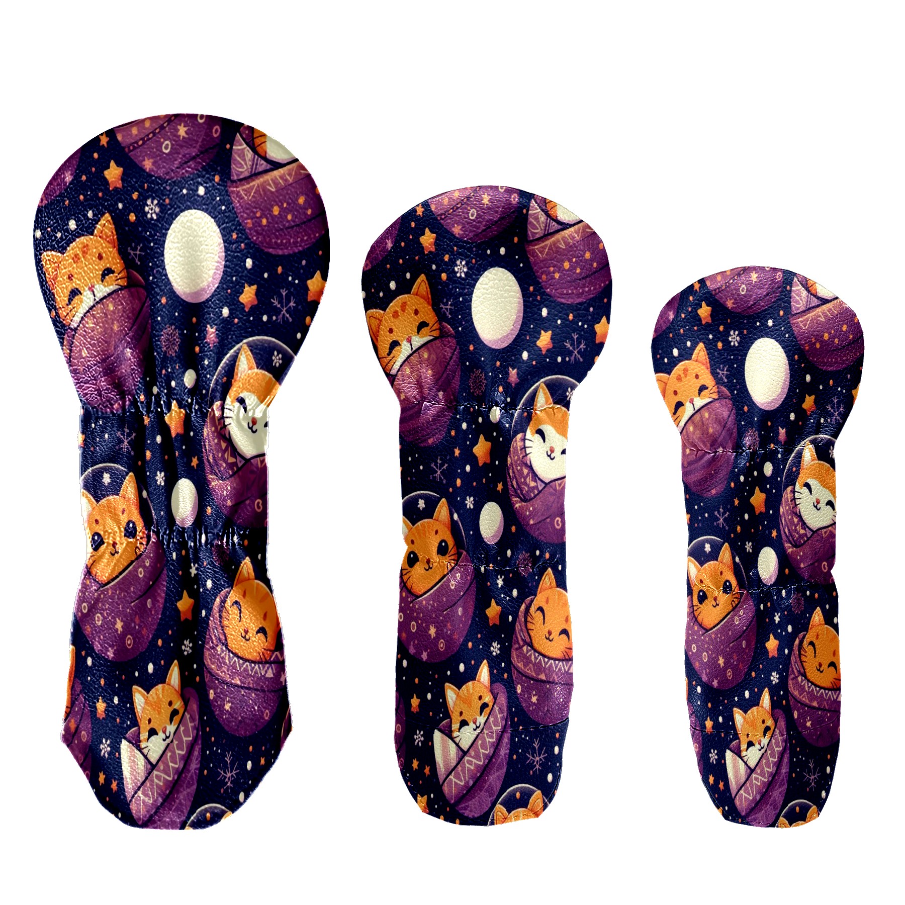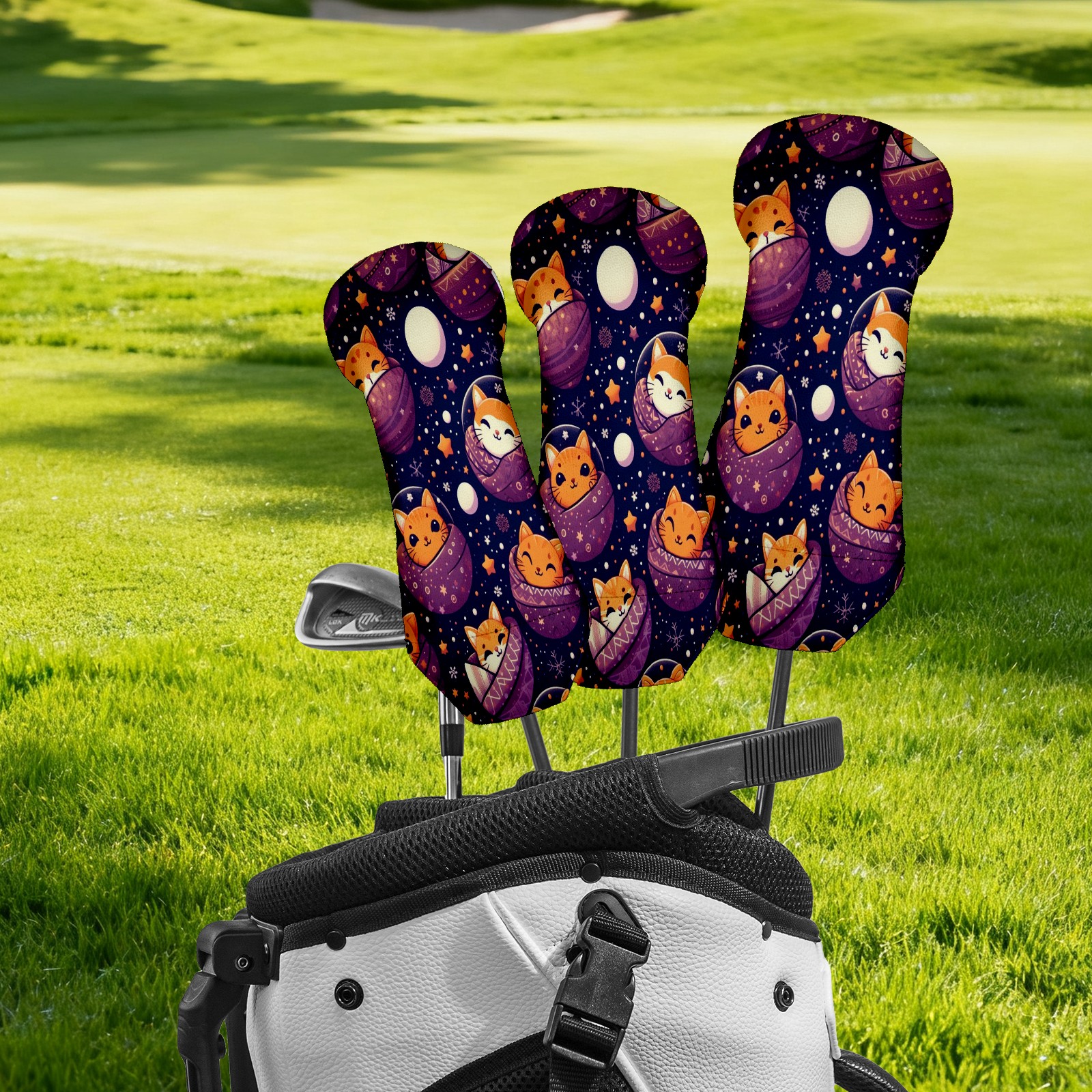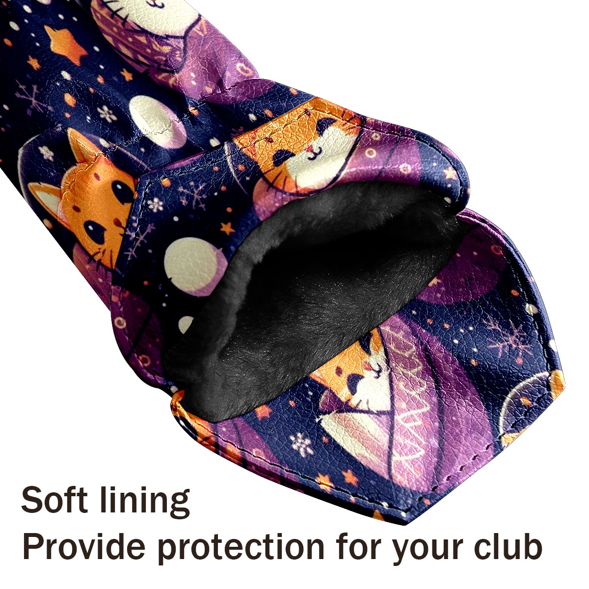 Golf Head Covers Purple Christmas Foxes Fits Driver Fairway Hybrid - Waterproof PU Leather with Plush Velvet Lining to Prevent Scratches Durable Golf Accessory Perfect Gift for Men/Women