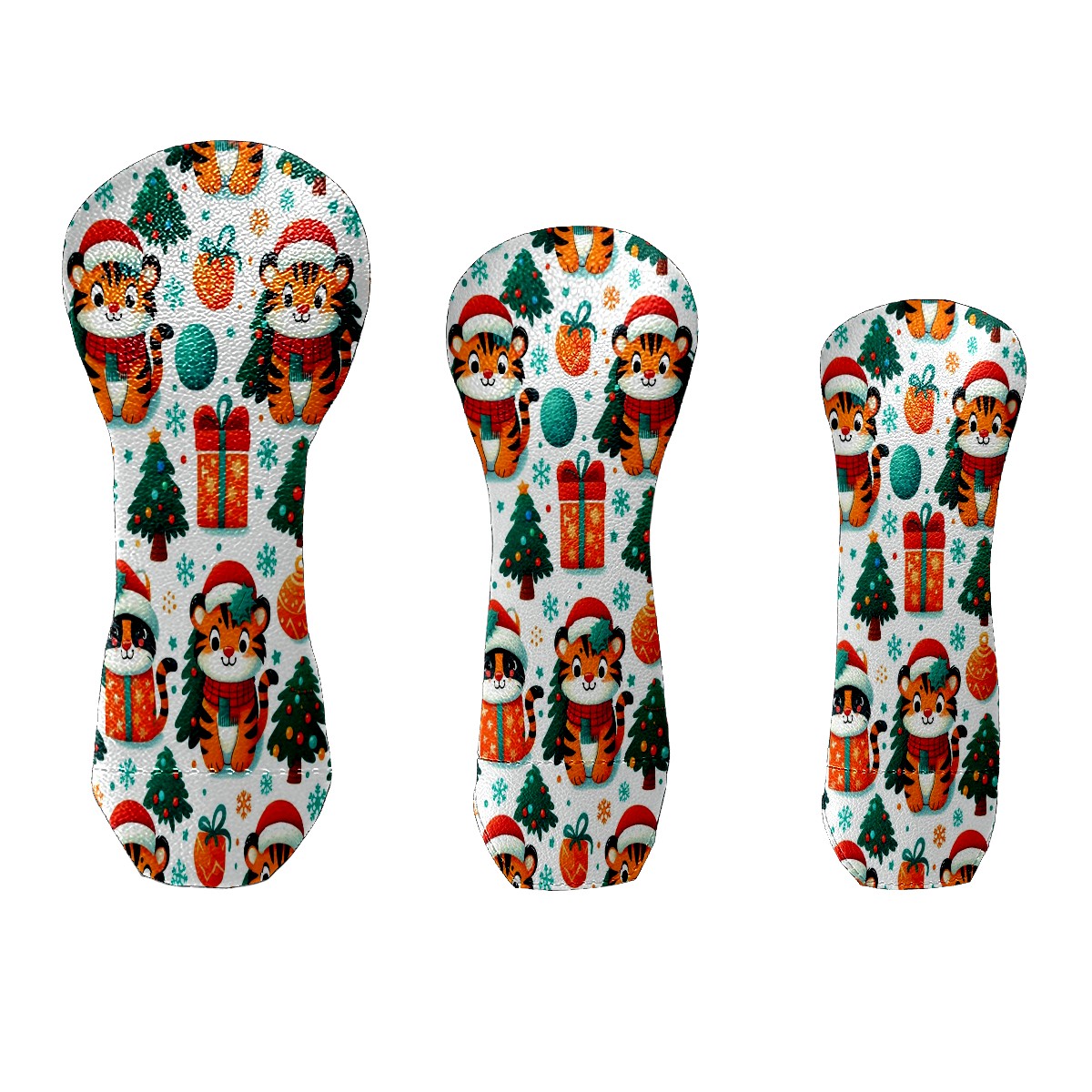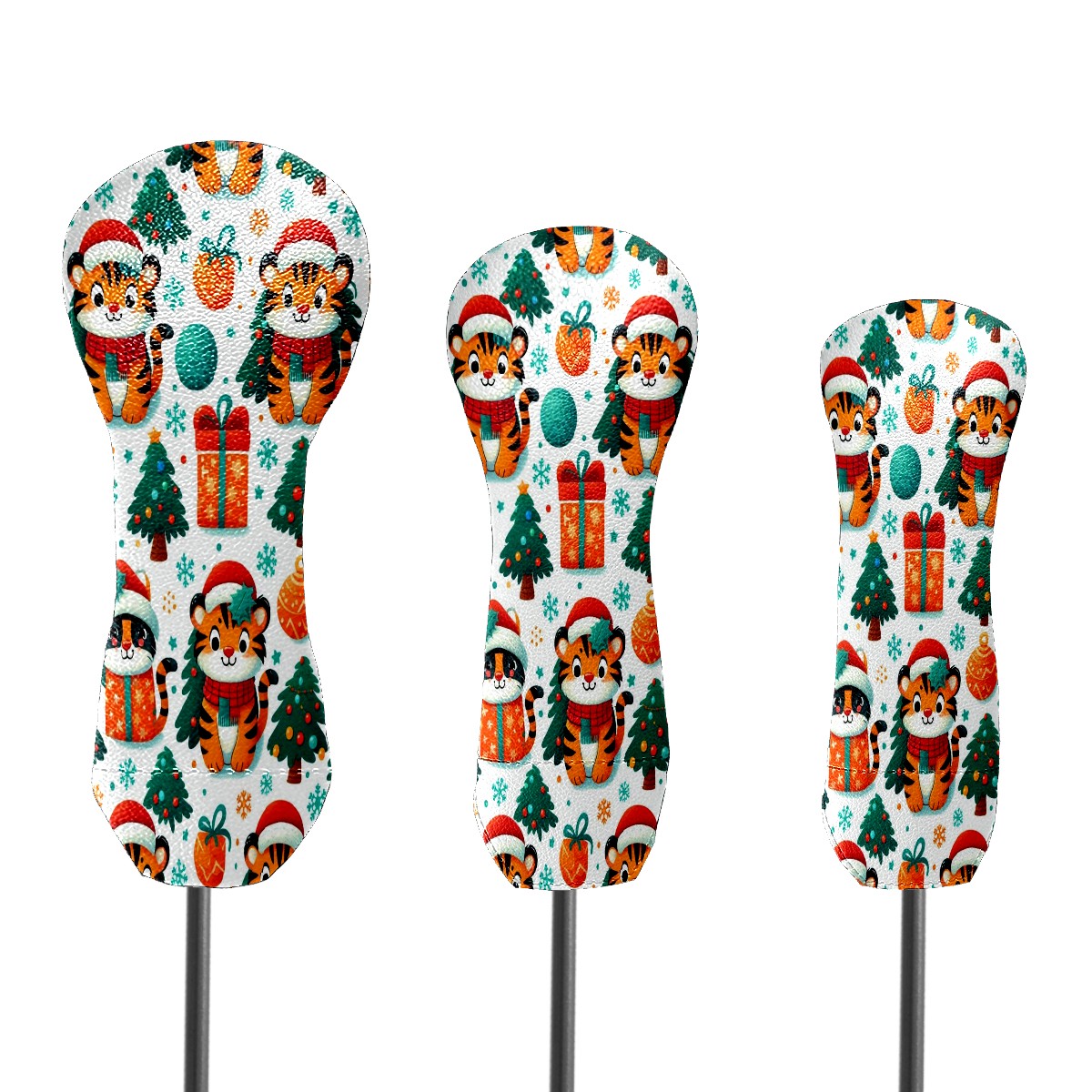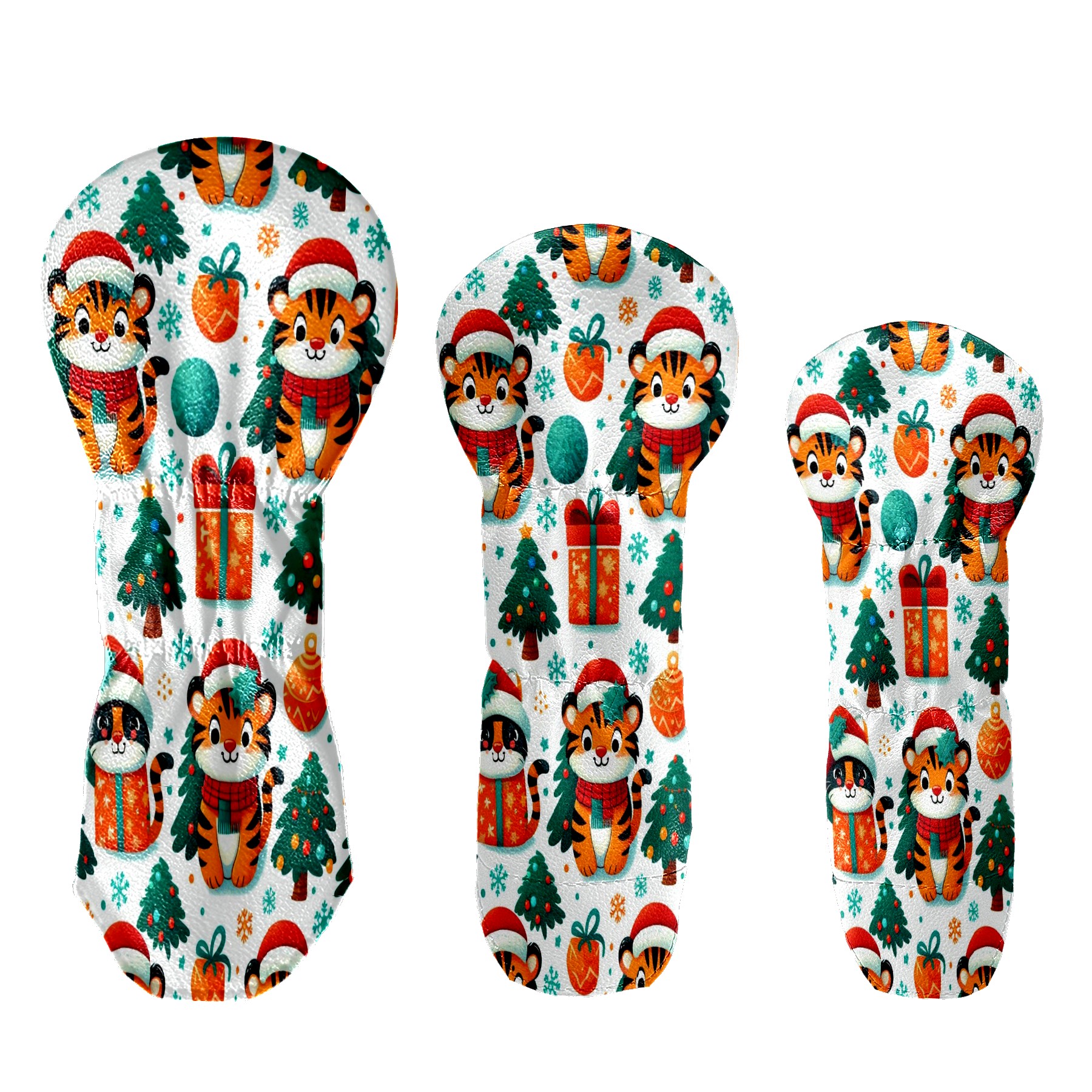 Golf Head Covers Red Christmas Tigers Fits Driver Fairway Hybrid - Waterproof PU Leather with Plush Velvet Lining to Prevent Scratches Durable Golf Accessory Perfect Gift for Men/Women