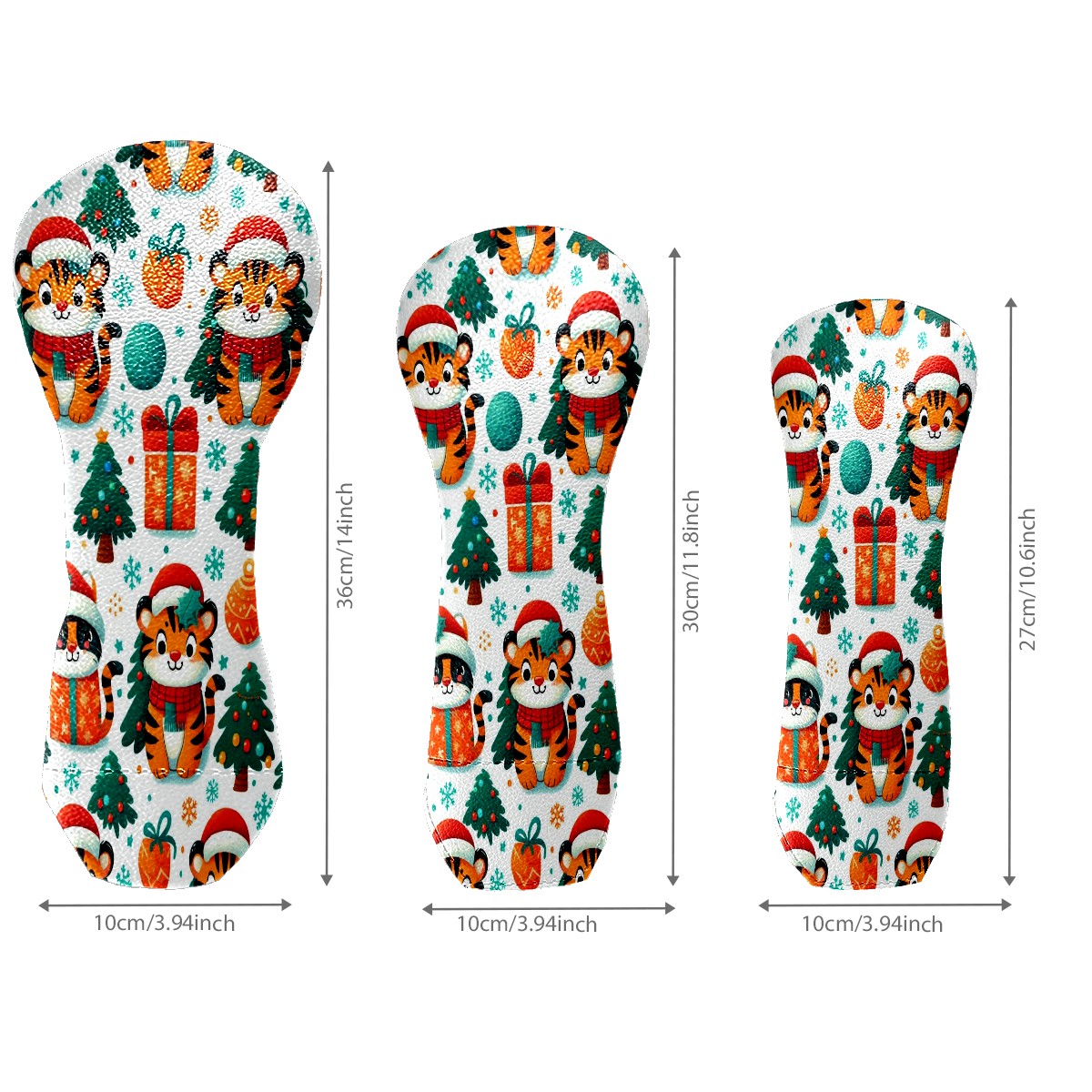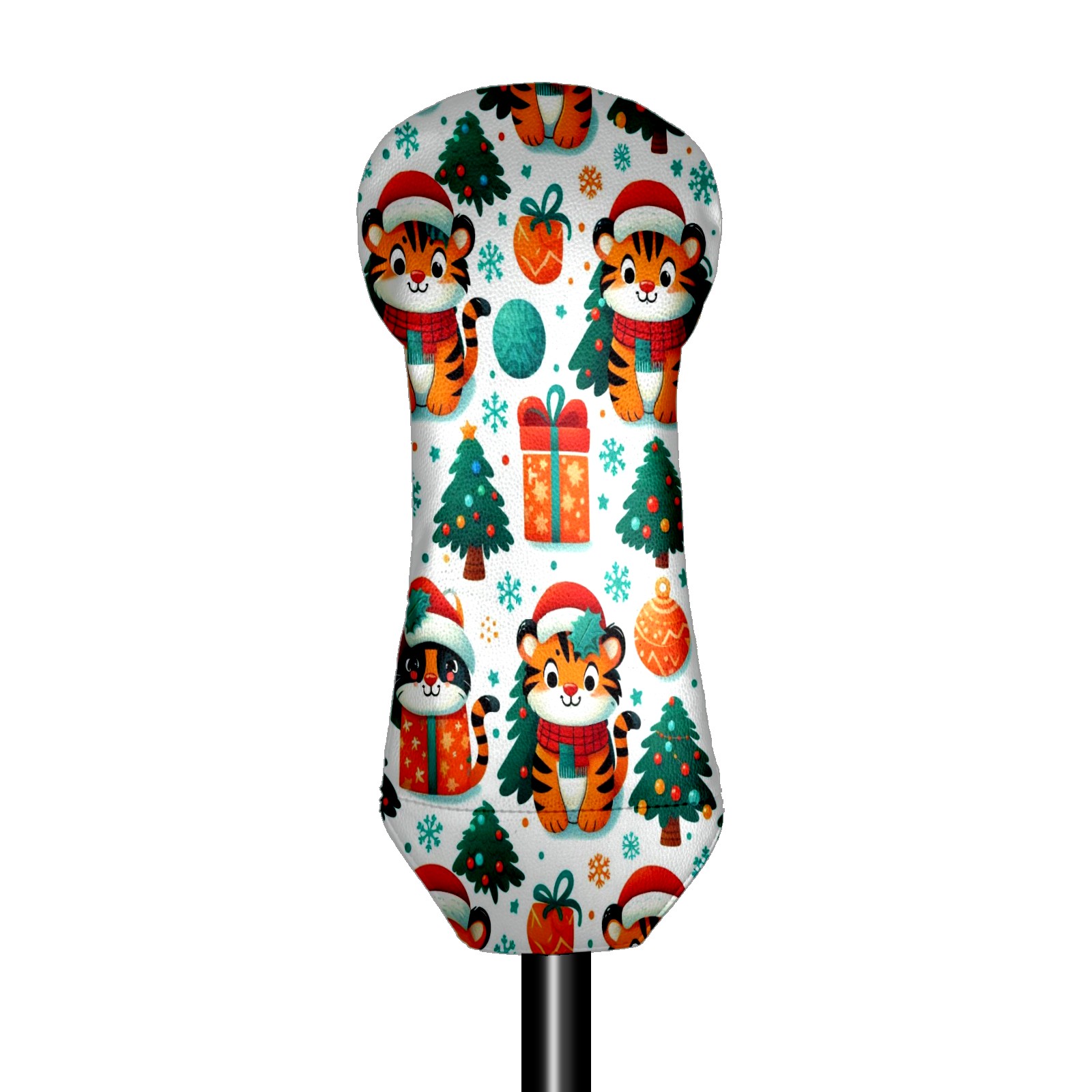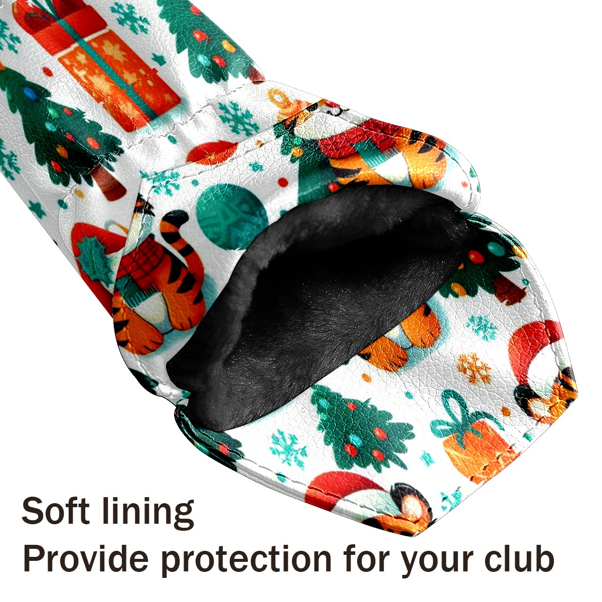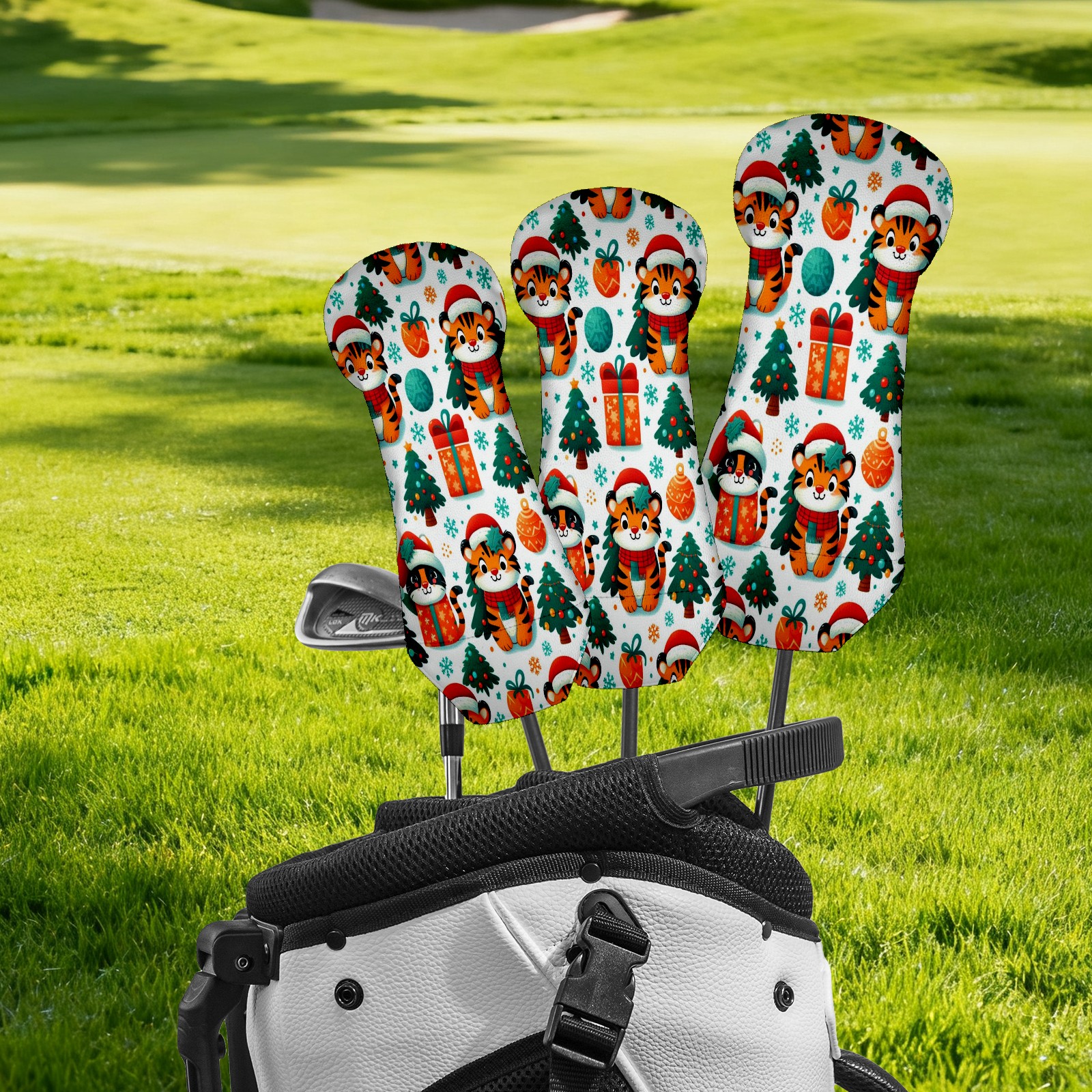 Golf Head Covers Red Christmas Tigers Fits Driver Fairway Hybrid - Waterproof PU Leather with Plush Velvet Lining to Prevent Scratches Durable Golf Accessory Perfect Gift for Men/Women