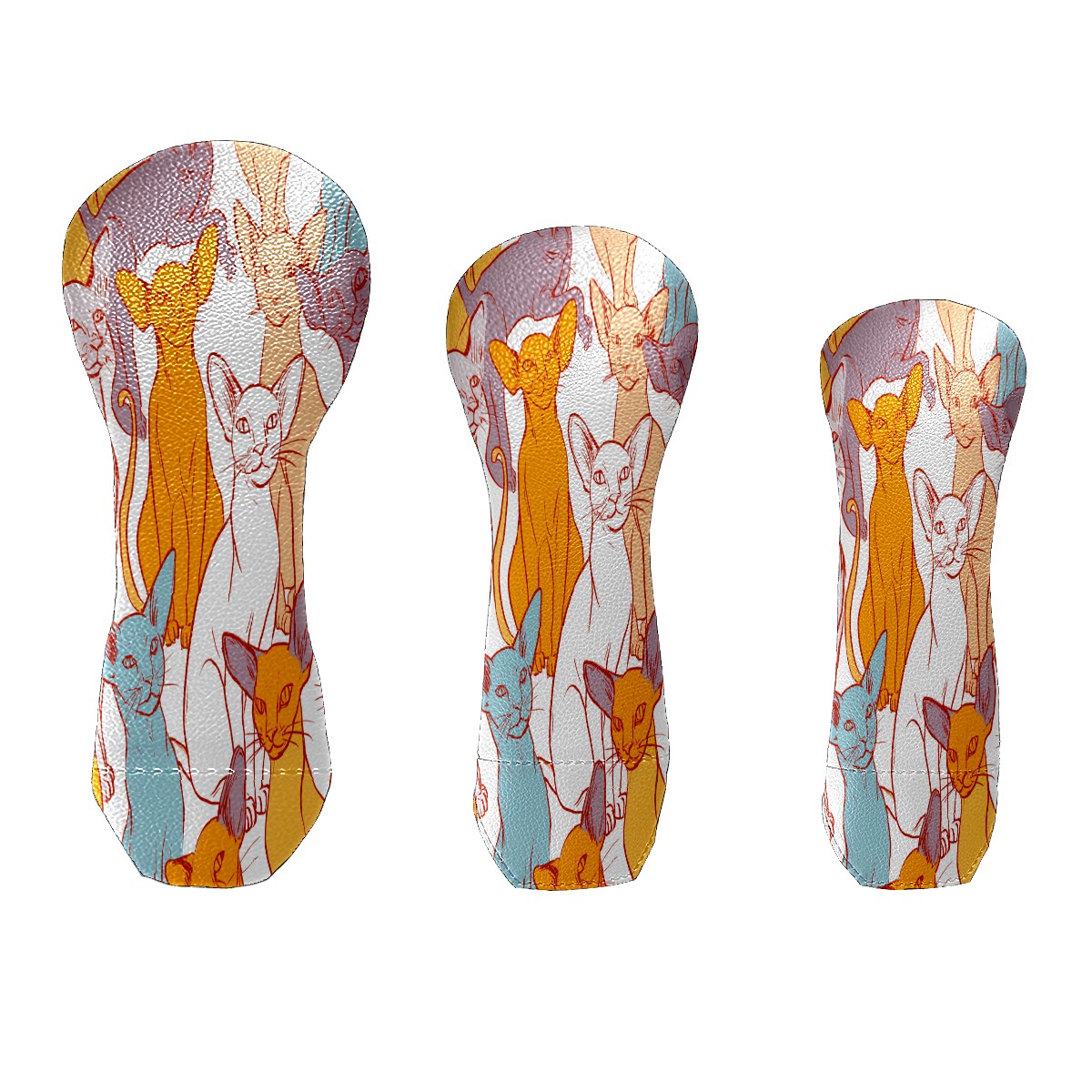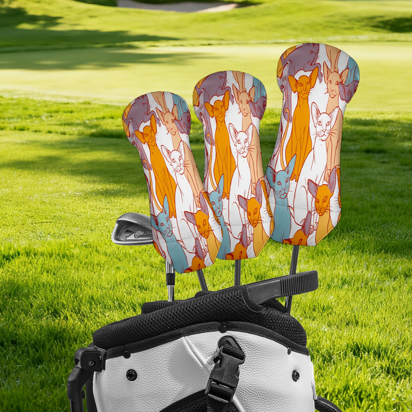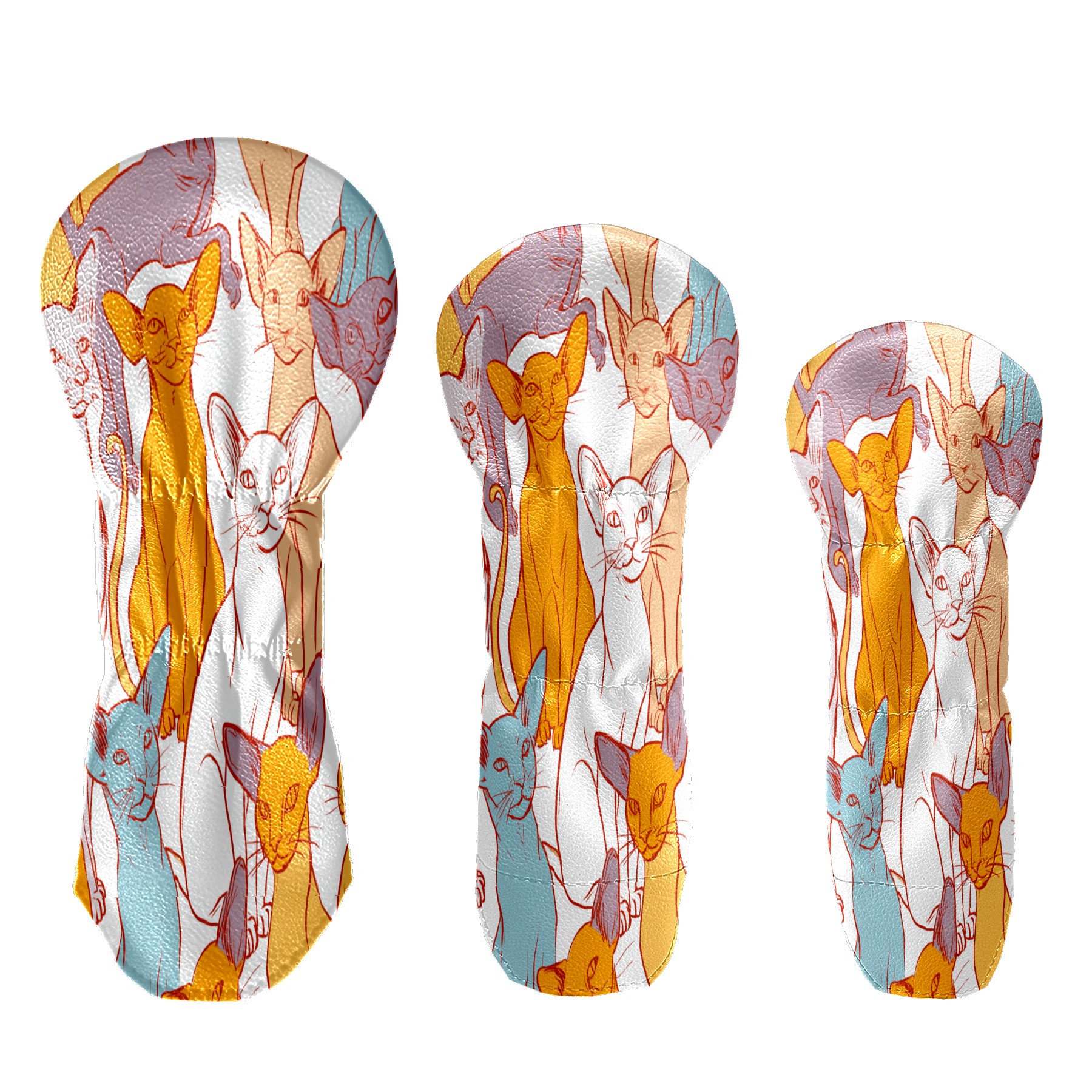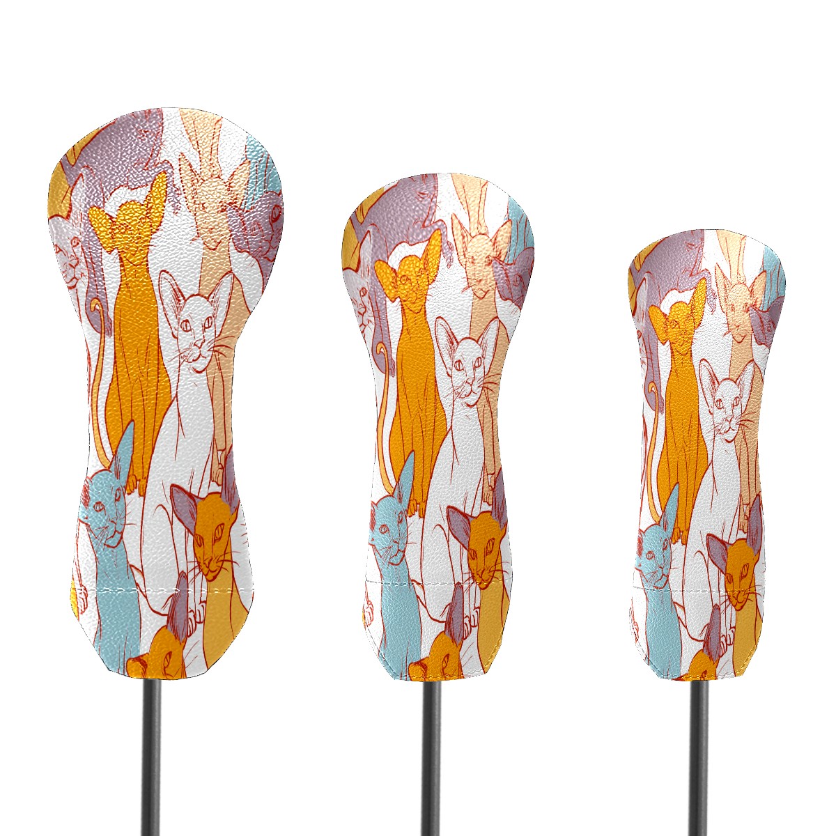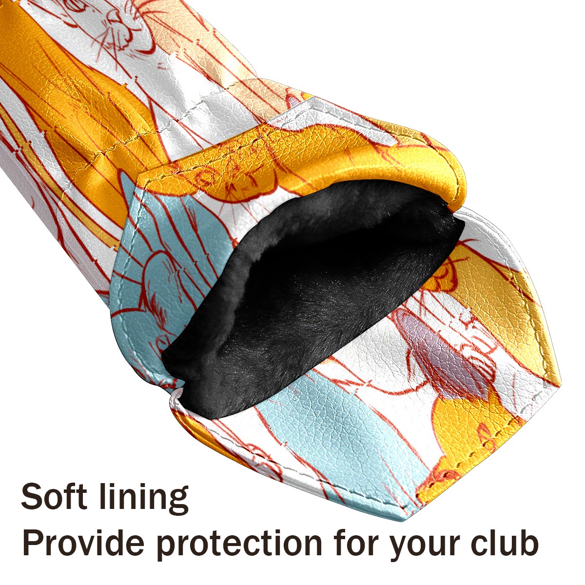 Golf Head Covers Colorful Cats Fits Driver Fairway Hybrid - Waterproof PU Leather with Plush Velvet Lining to Prevent Scratches Durable Golf Accessory Perfect Gift for Men/Women