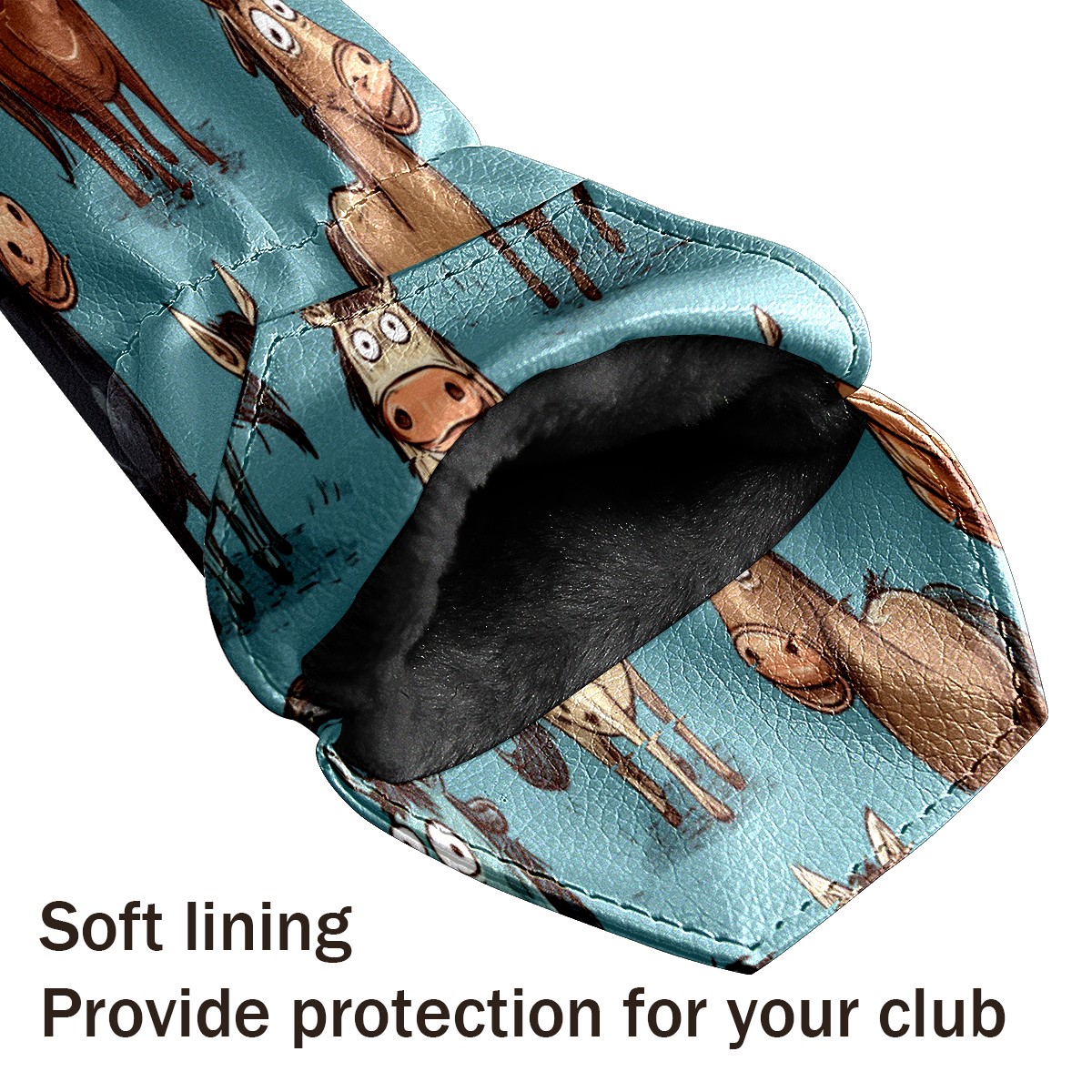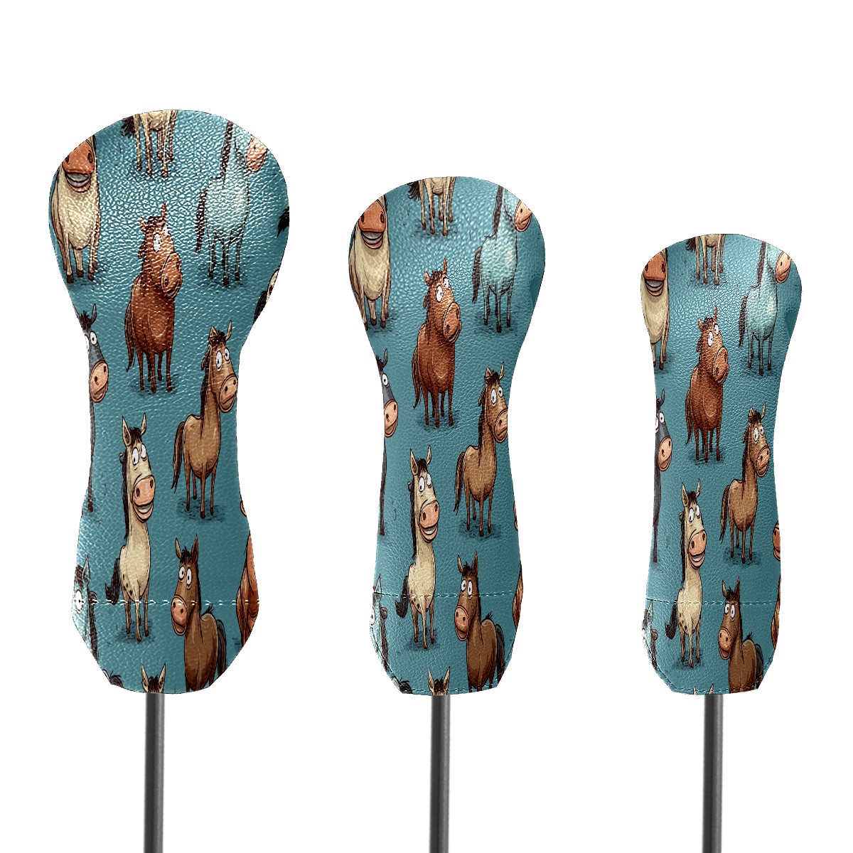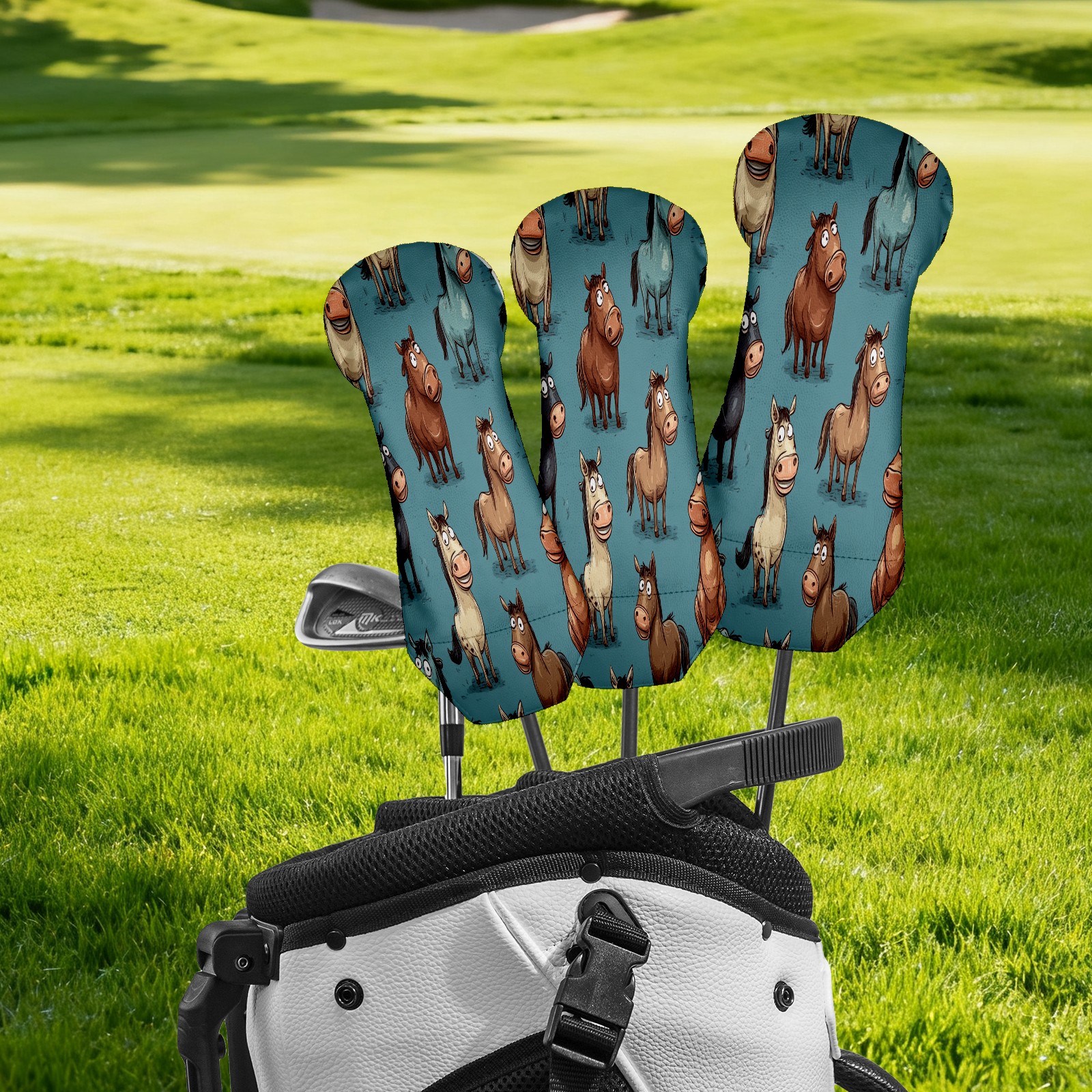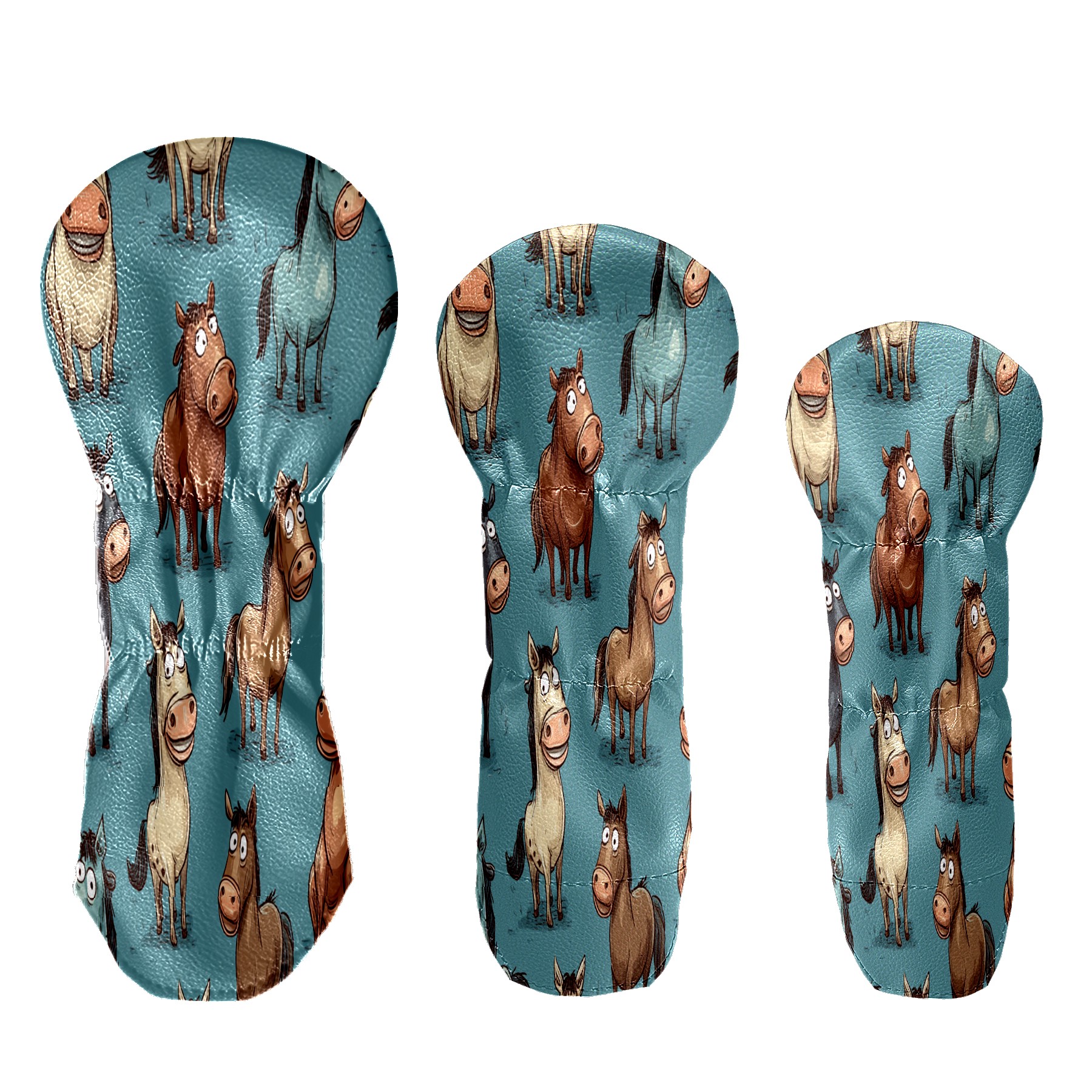 Golf Head Covers Blue Funny Horse Fits Driver Fairway Hybrid - Waterproof PU Leather with Plush Velvet Lining to Prevent Scratches Durable Golf Accessory Perfect Gift for Men/Women