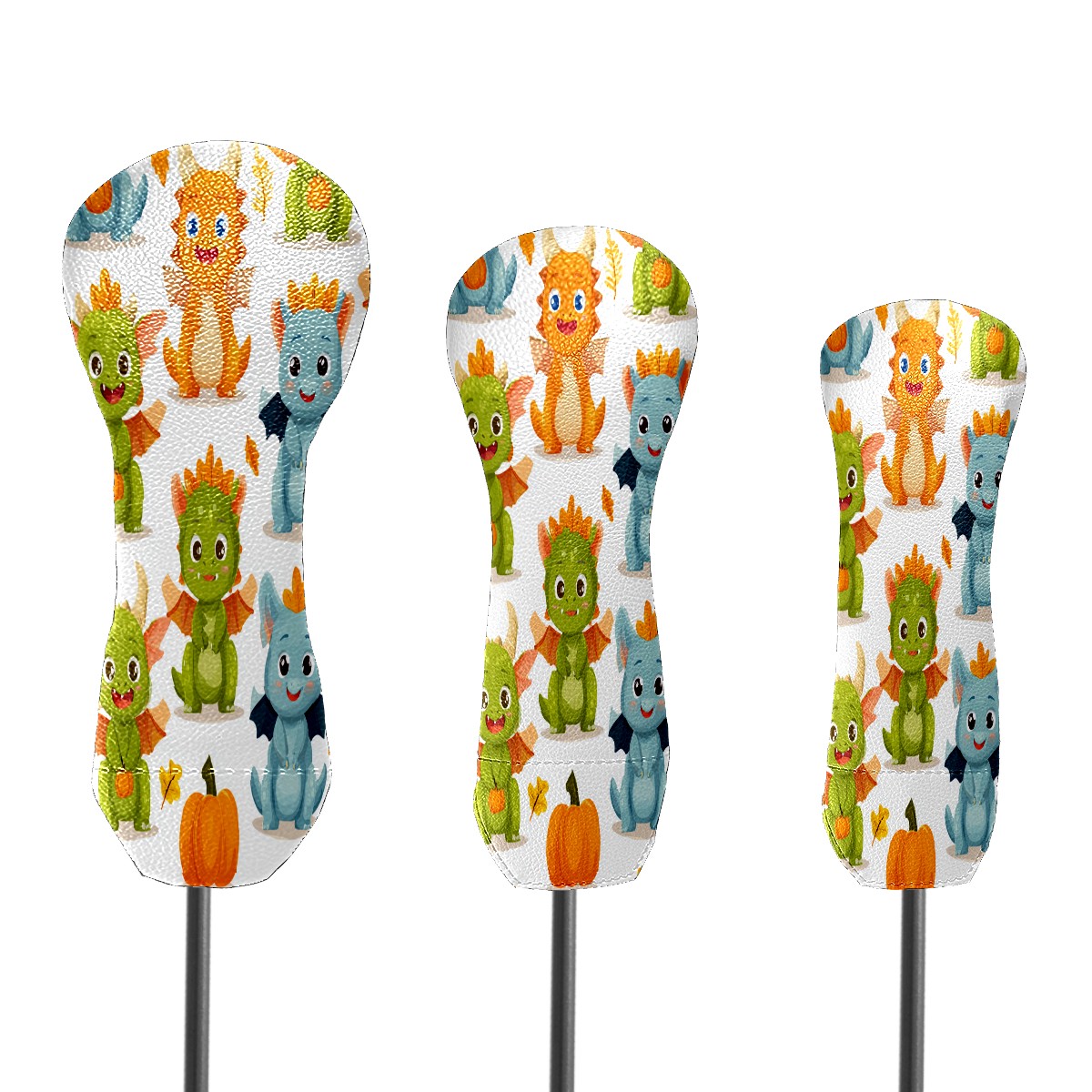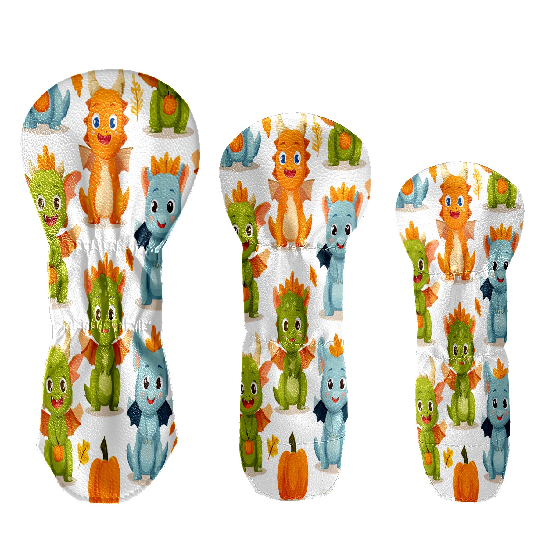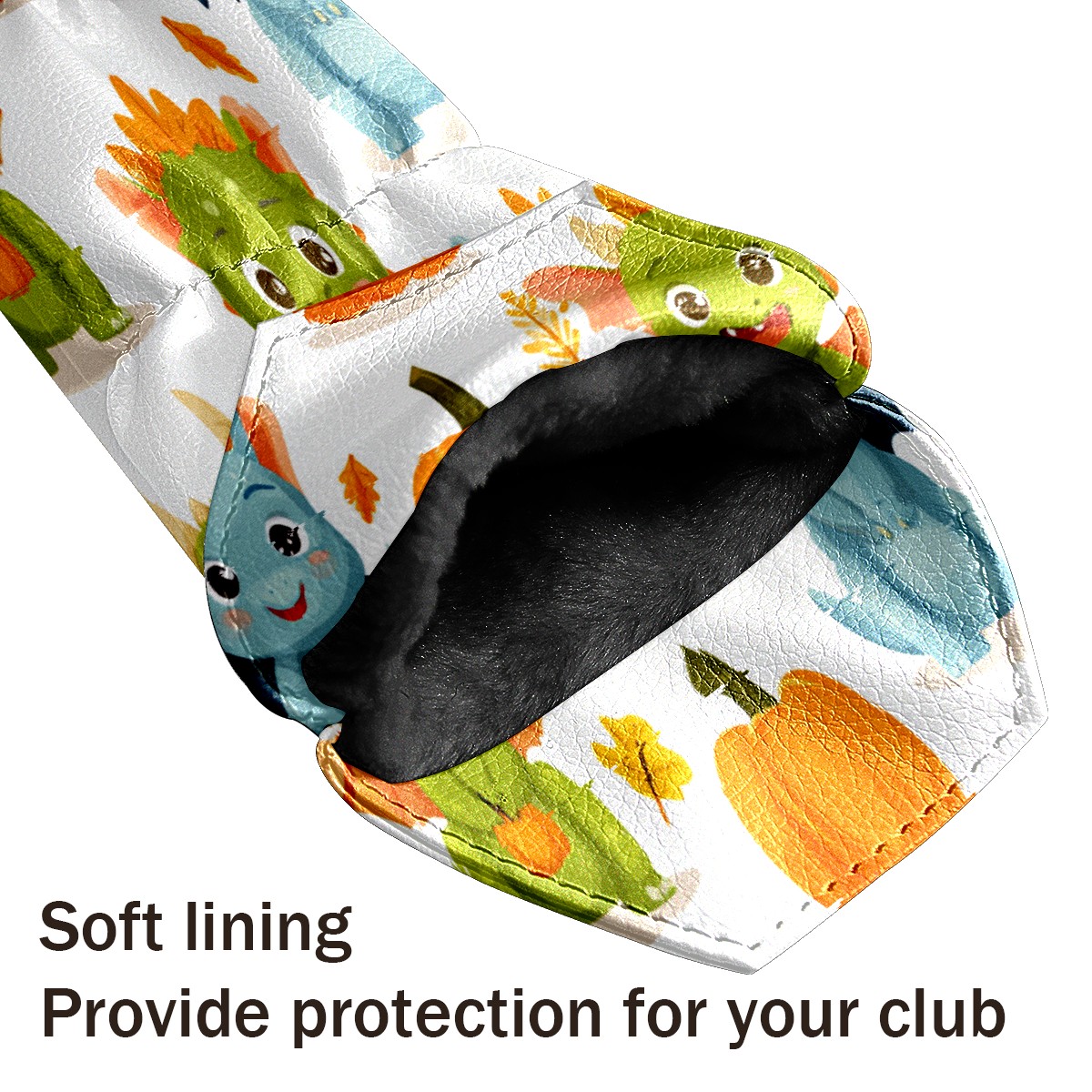 Golf Head Covers White Cartoon Dinosaurs Fits Driver Fairway Hybrid - Waterproof PU Leather with Plush Velvet Lining to Prevent Scratches Durable Golf Accessory Perfect Gift for Men/Women