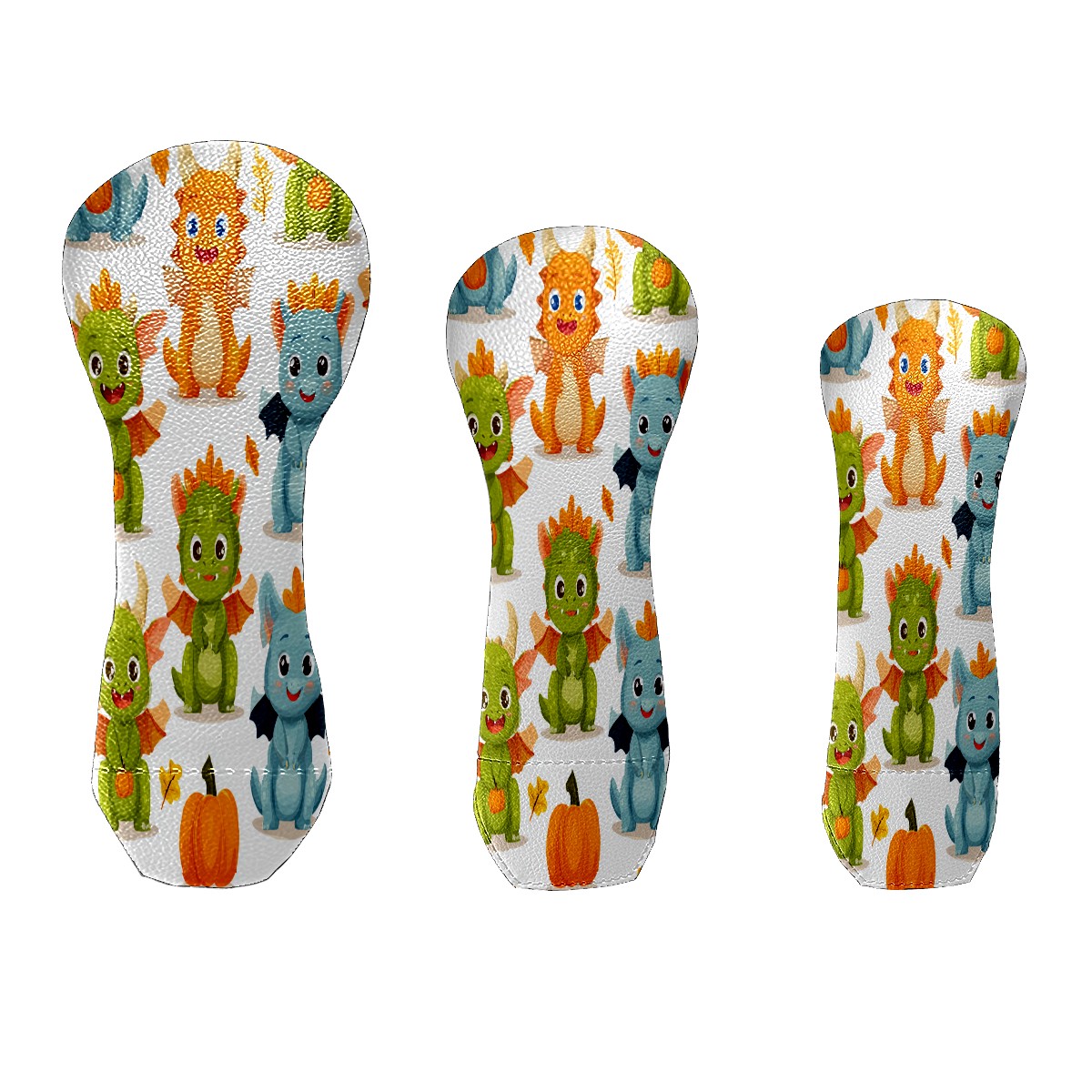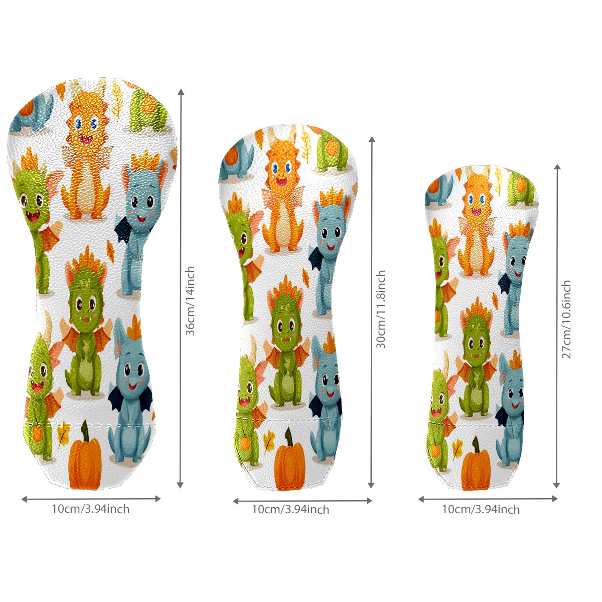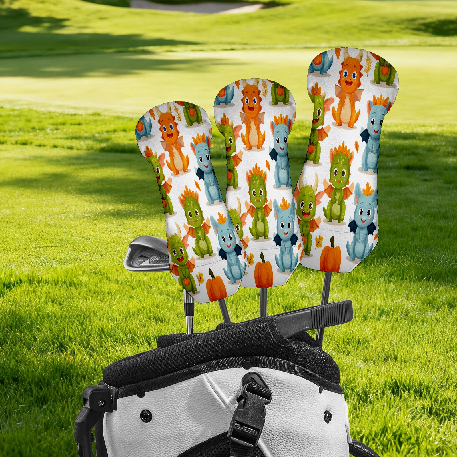 Golf Head Covers White Cartoon Dinosaurs Fits Driver Fairway Hybrid - Waterproof PU Leather with Plush Velvet Lining to Prevent Scratches Durable Golf Accessory Perfect Gift for Men/Women