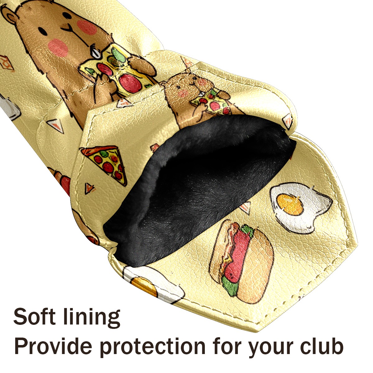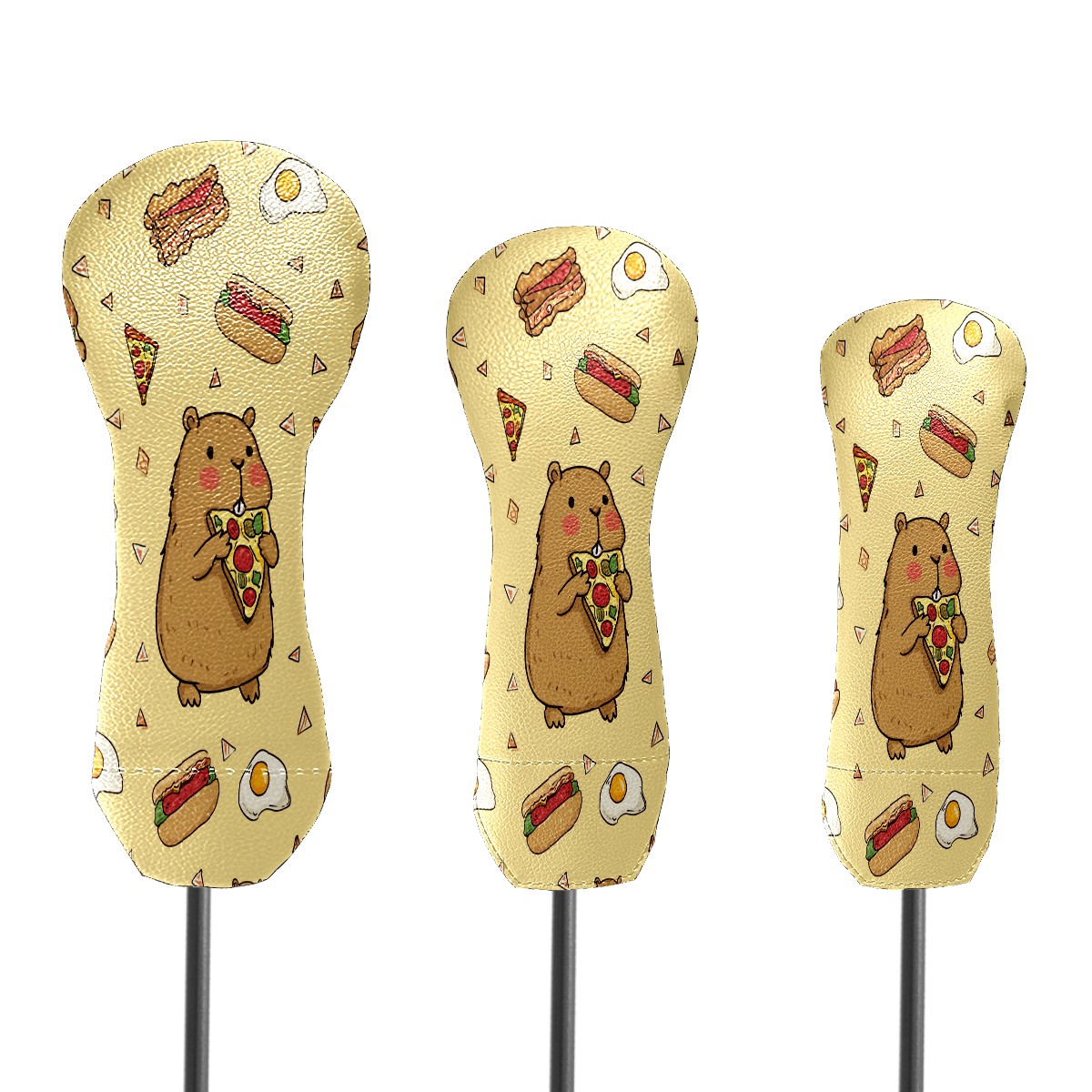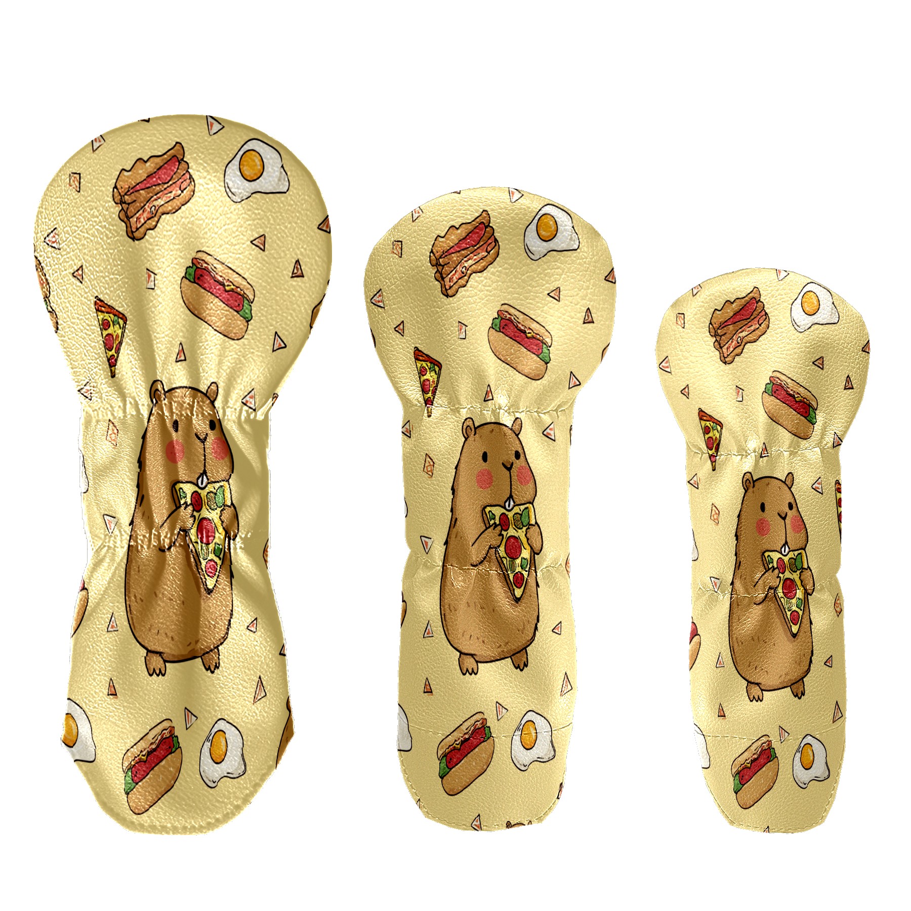 Golf Head Covers Yellow Bear Snacks Fits Driver Fairway Hybrid - Waterproof PU Leather with Plush Velvet Lining to Prevent Scratches Durable Golf Accessory Perfect Gift for Men/Women