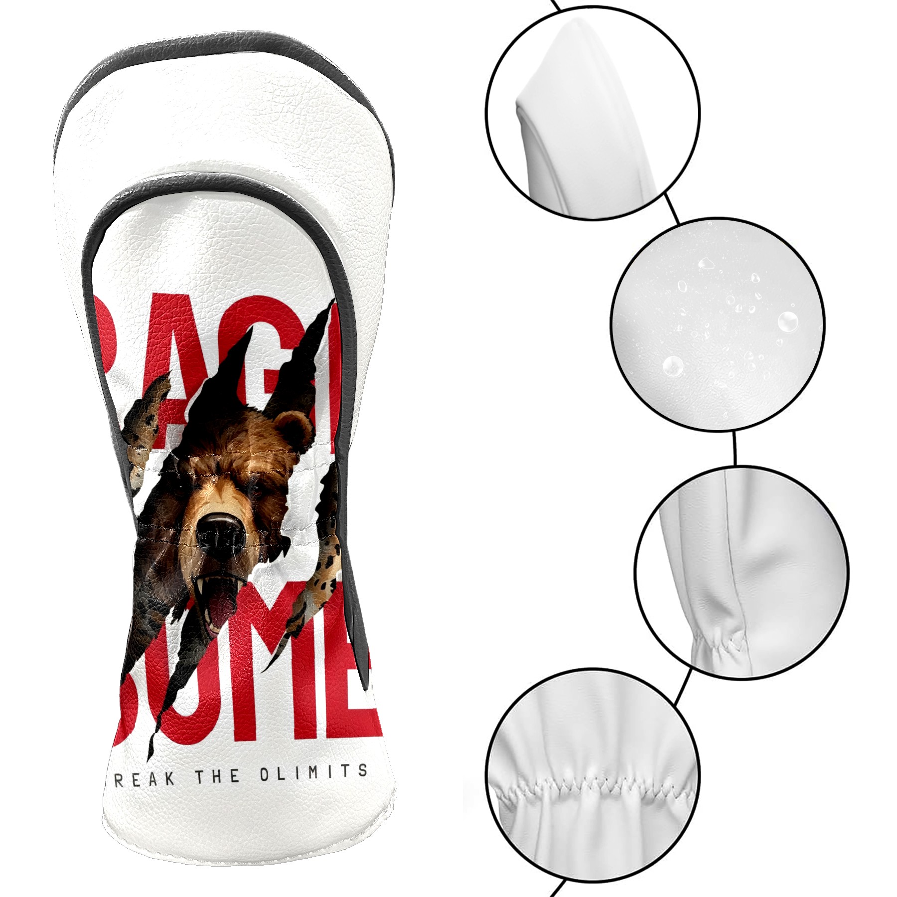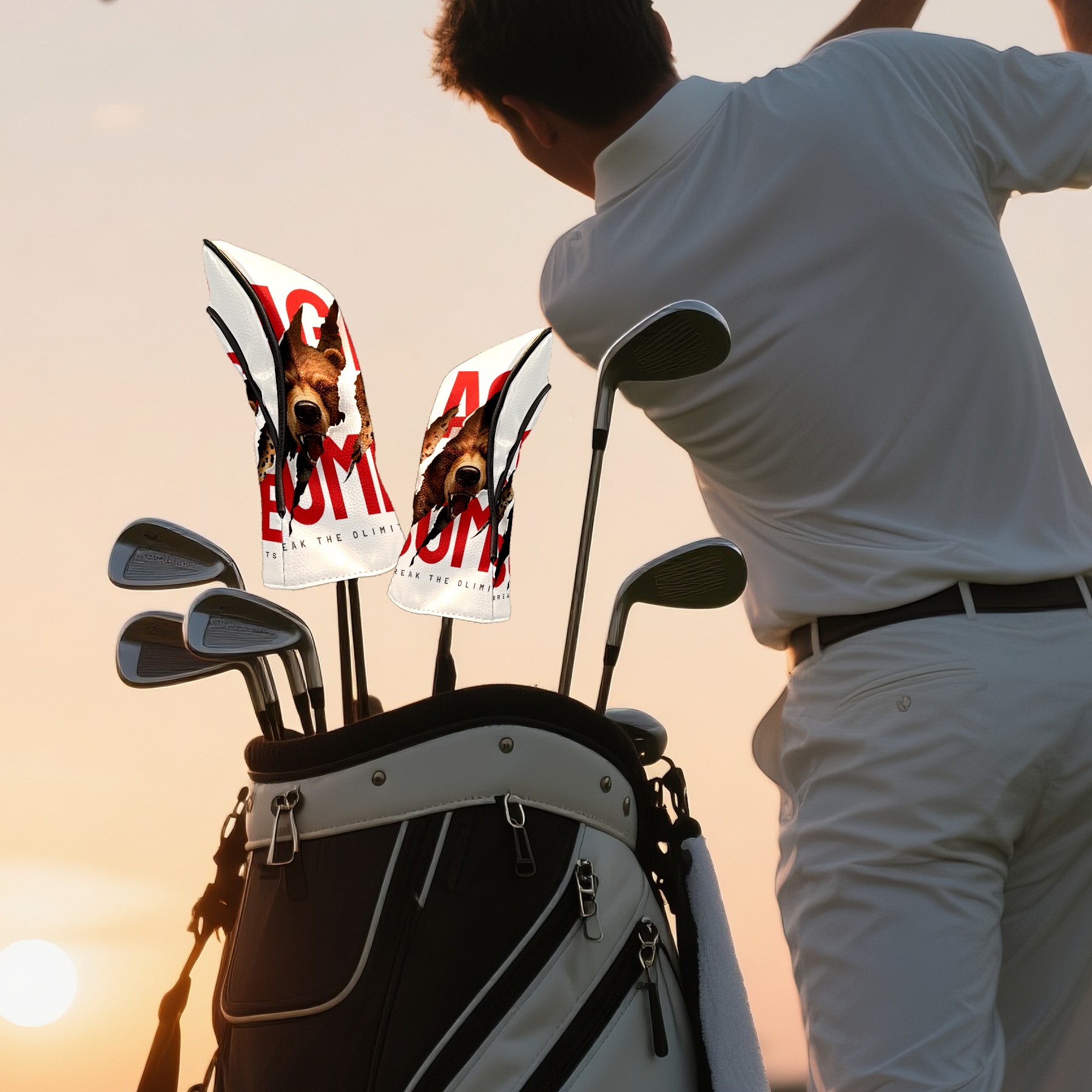 Golf Club Head Cover, High Quality PU Leather Driver and Wood Club Head Cover with Anti-Scratch Lining, Universal Gift for Men and Women Paw Print Bear