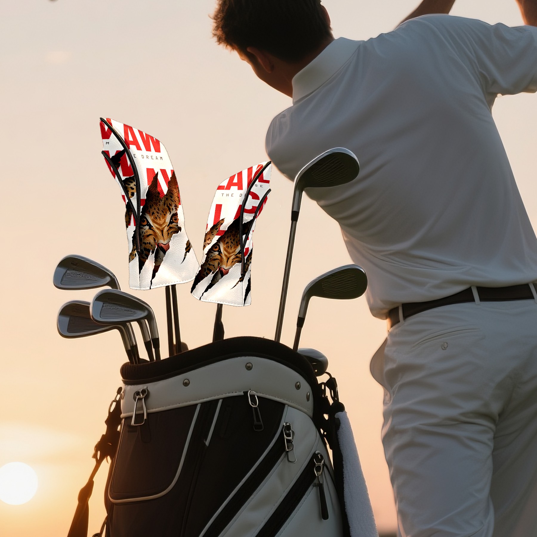 Golf Club Head Cover, High Quality PU Leather Driver and Wood Club Head Cover with Anti-Scratch Lining, Universal Gift for Men and Women Tiger Paw Prints