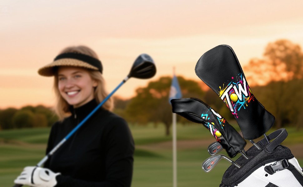 Golf Club Head Cover, High Quality PU Leather Driver and Wood Club Head Cover with Anti-Scratch Lining, Universal Gift for Men and Women Color TW