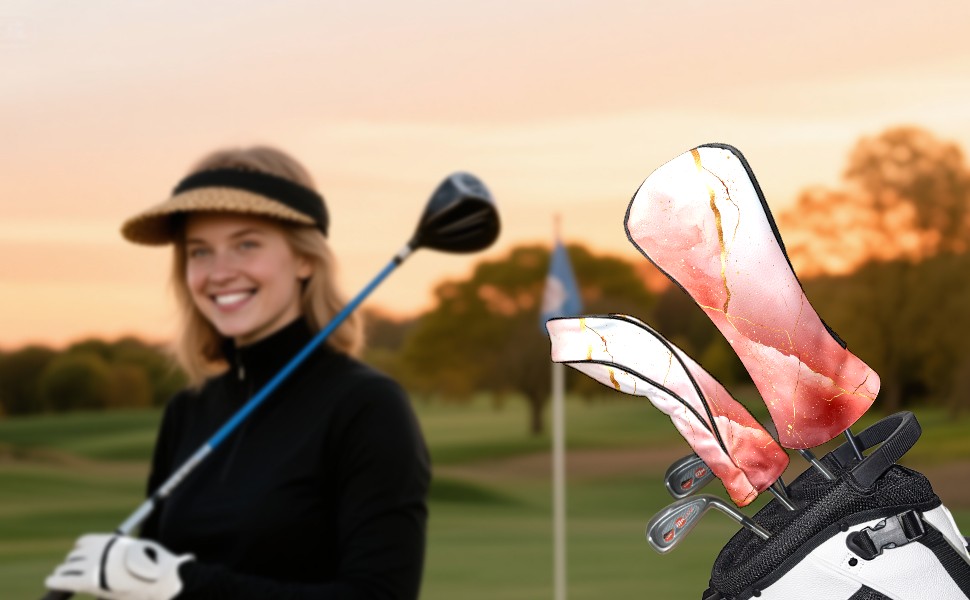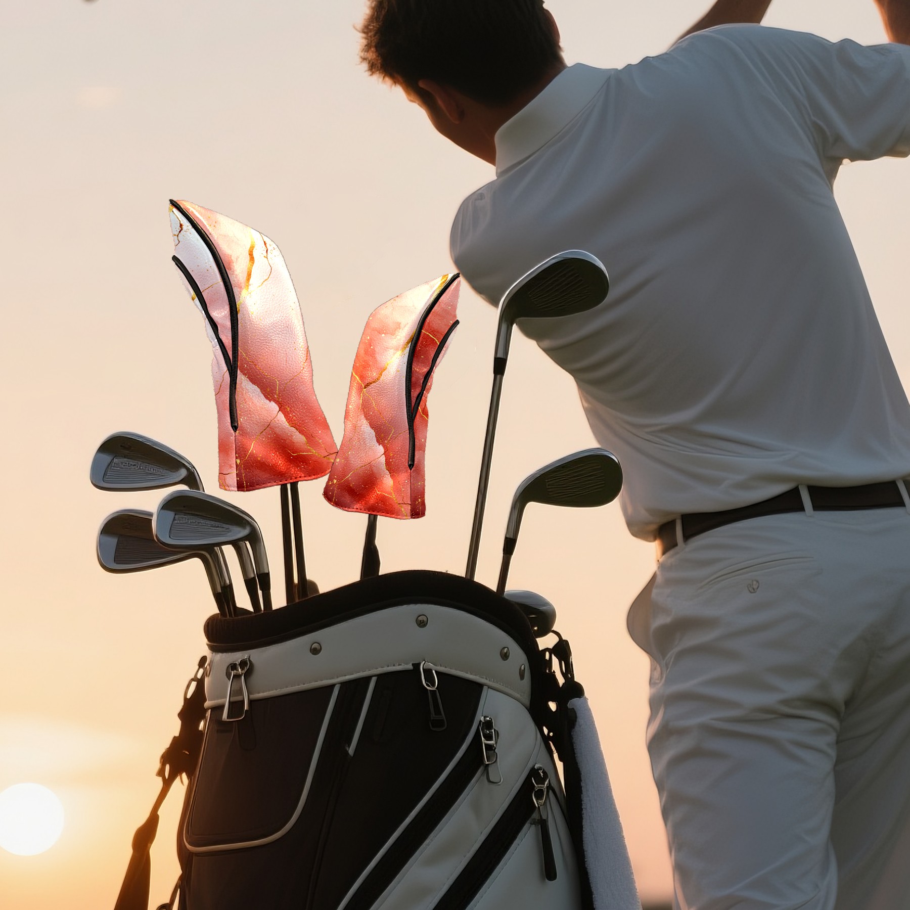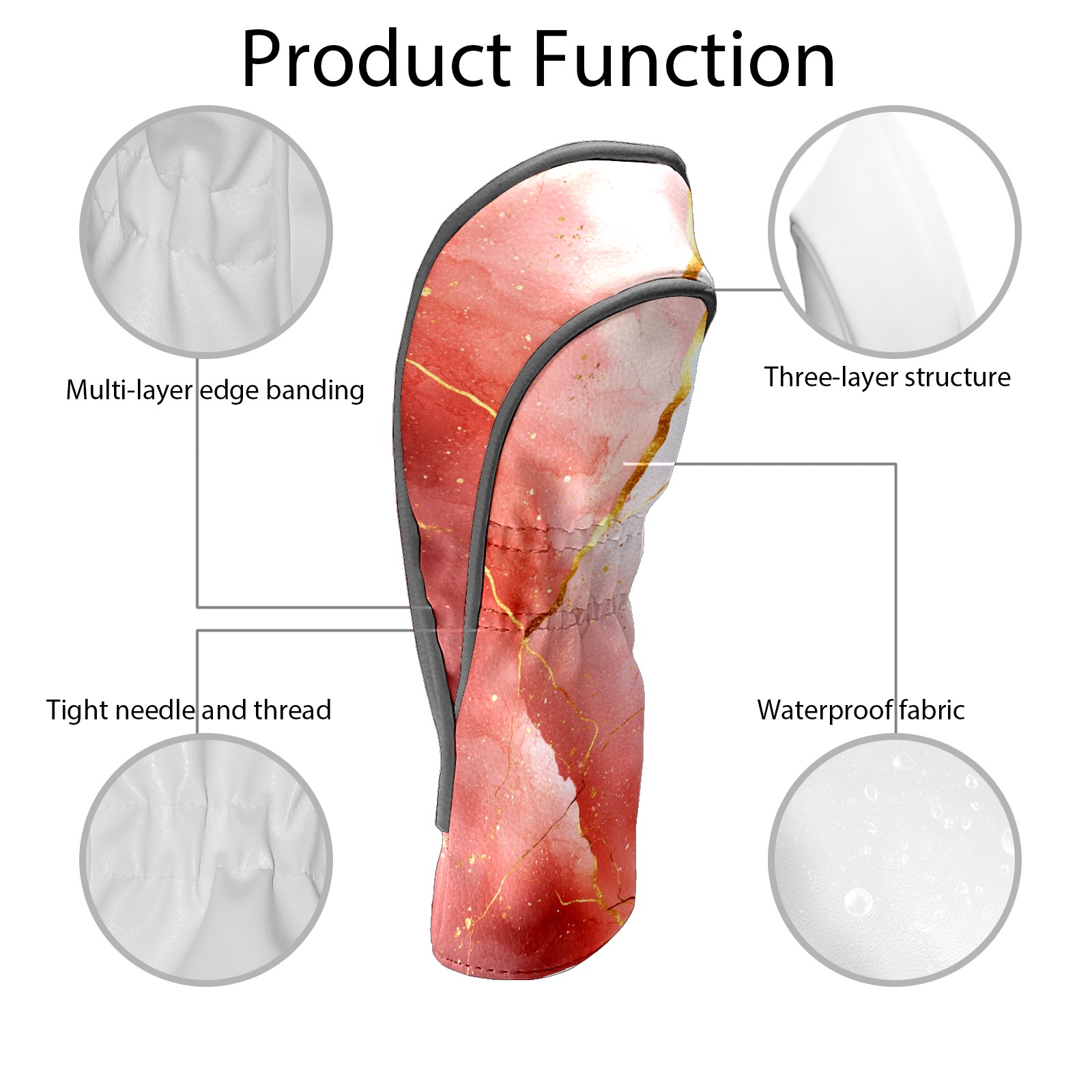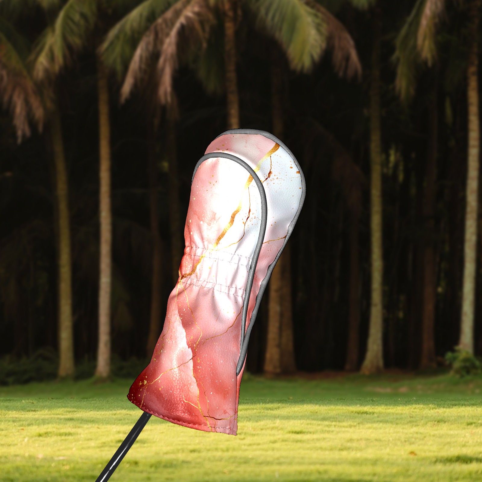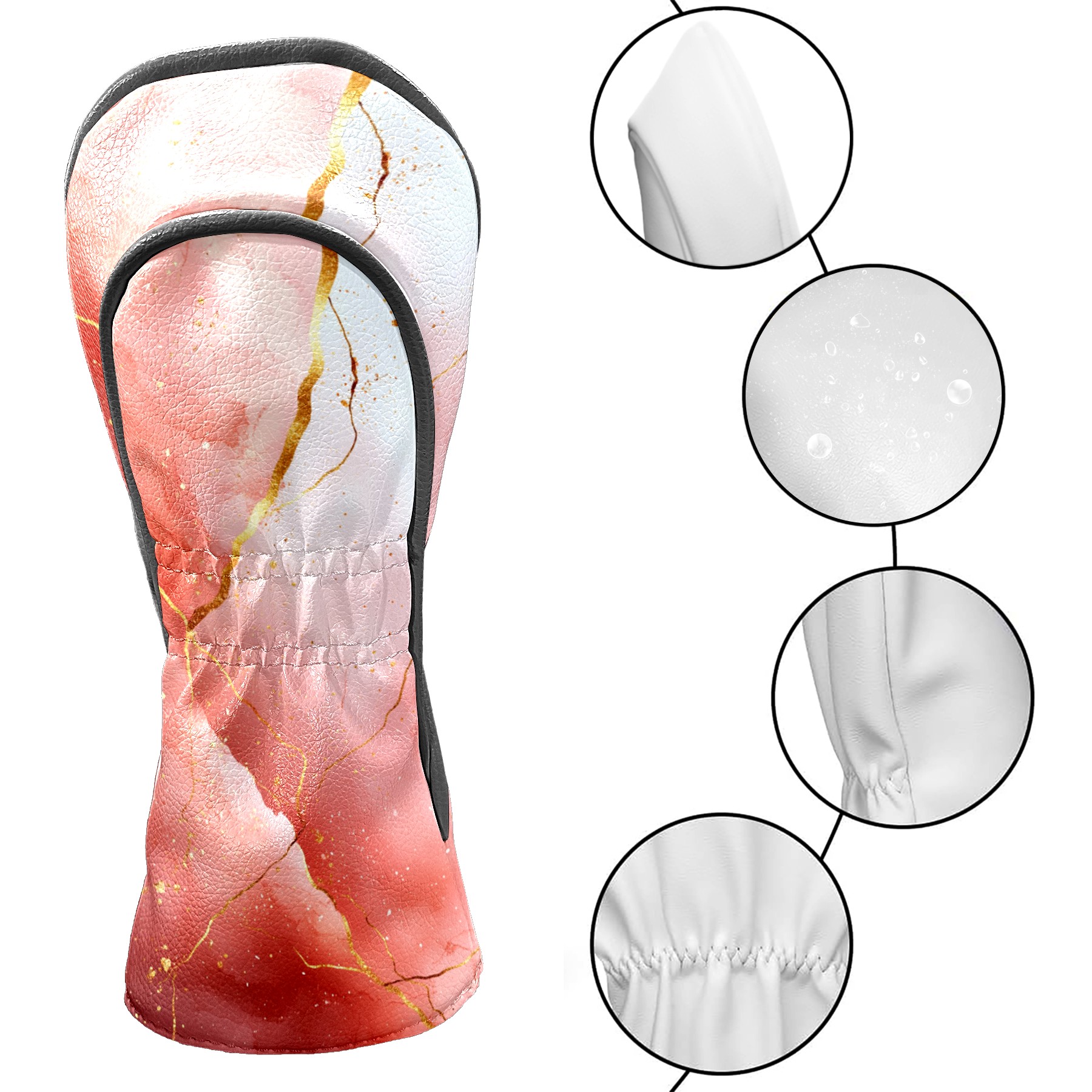 Golf Club Head Cover, High Quality PU Leather Driver and Wood Club Head Cover with Anti-Scratch Lining, Universal Gift for Men and Women Pink Marble