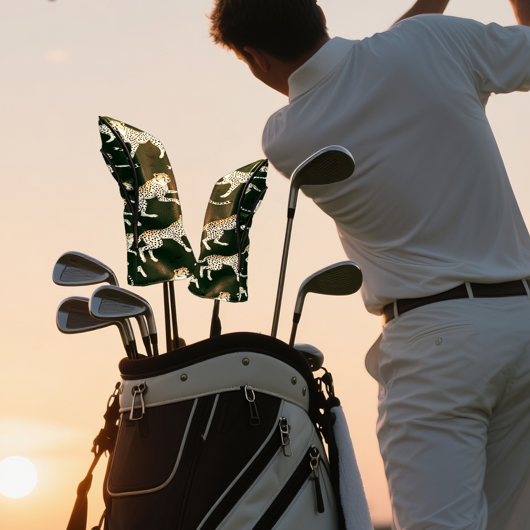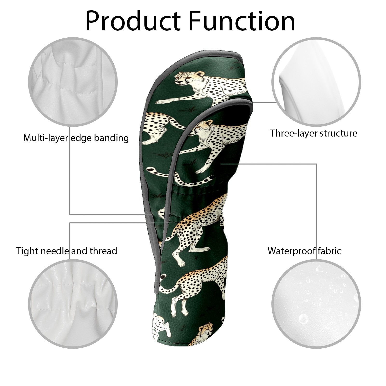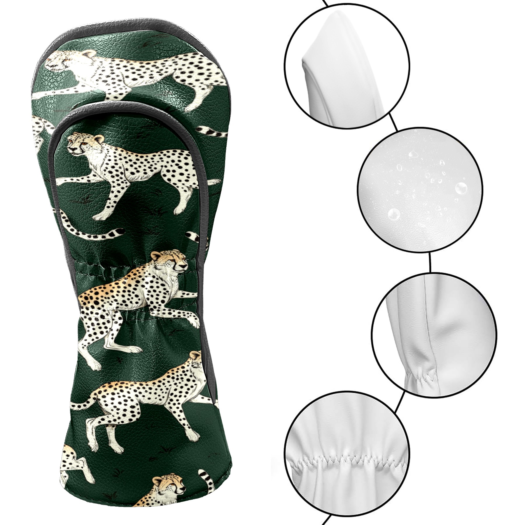 Golf Club Head Cover, High Quality PU Leather Driver and Wood Club Head Cover with Anti-Scratch Lining, Universal Gift for Men and Women White Leopard
