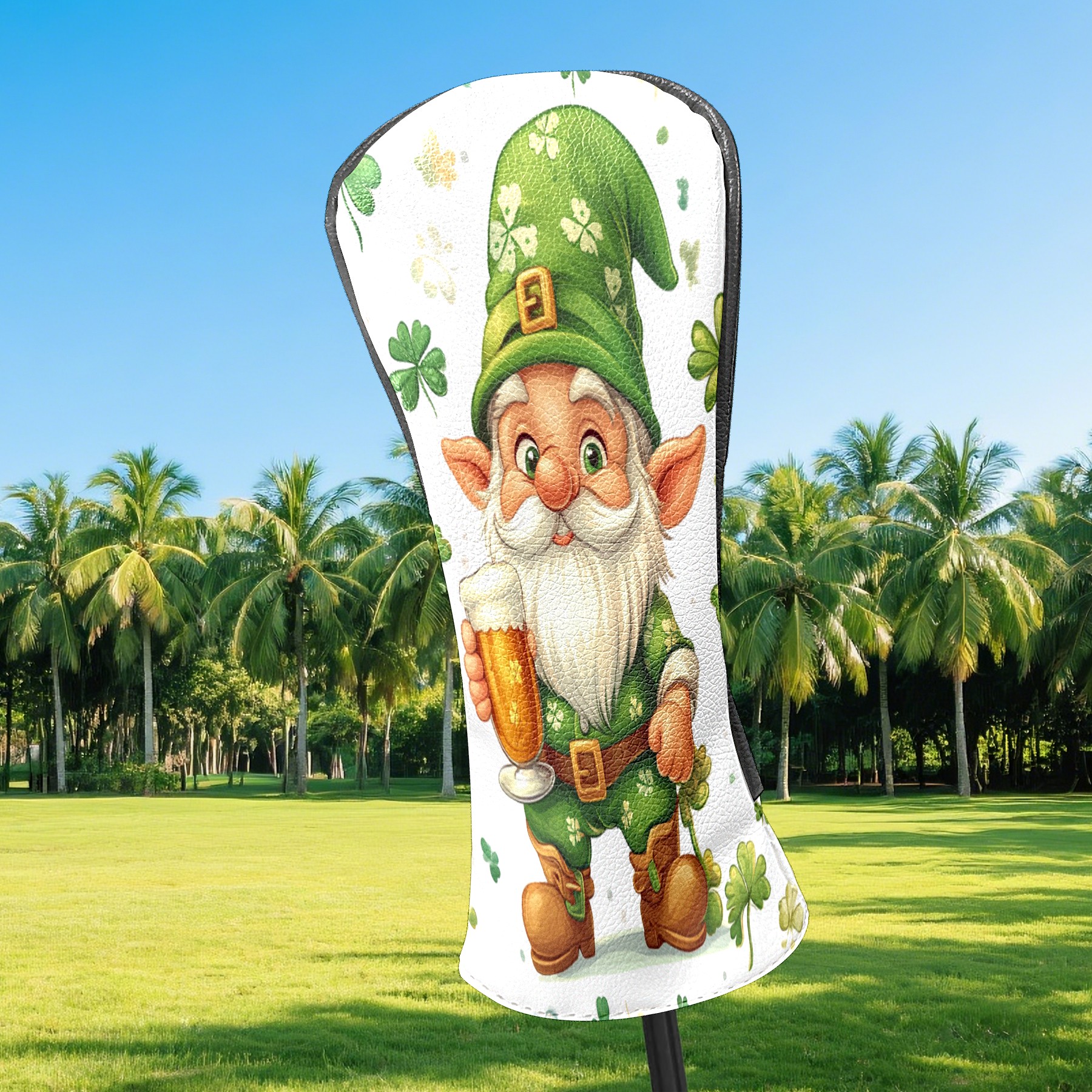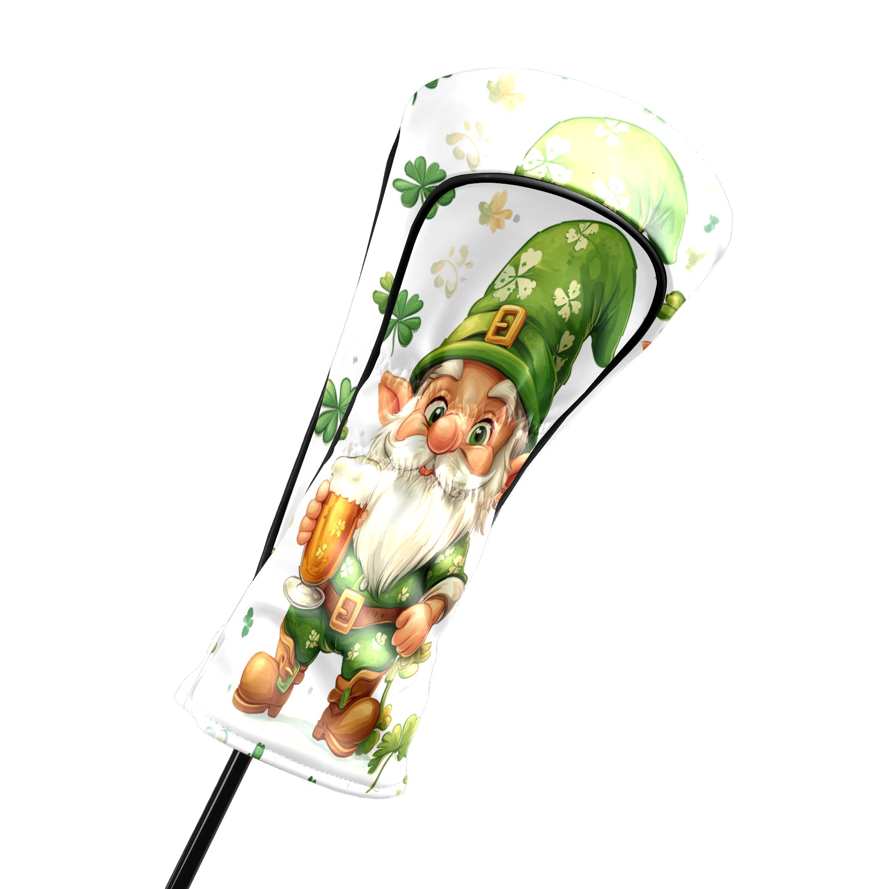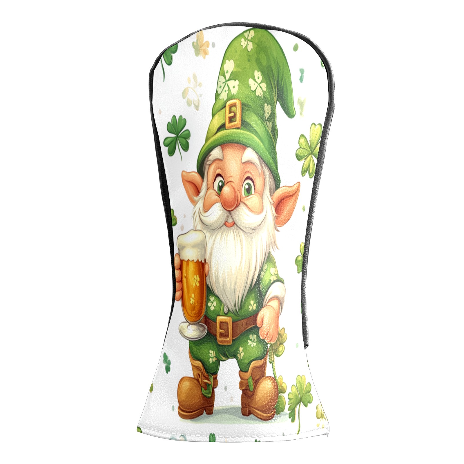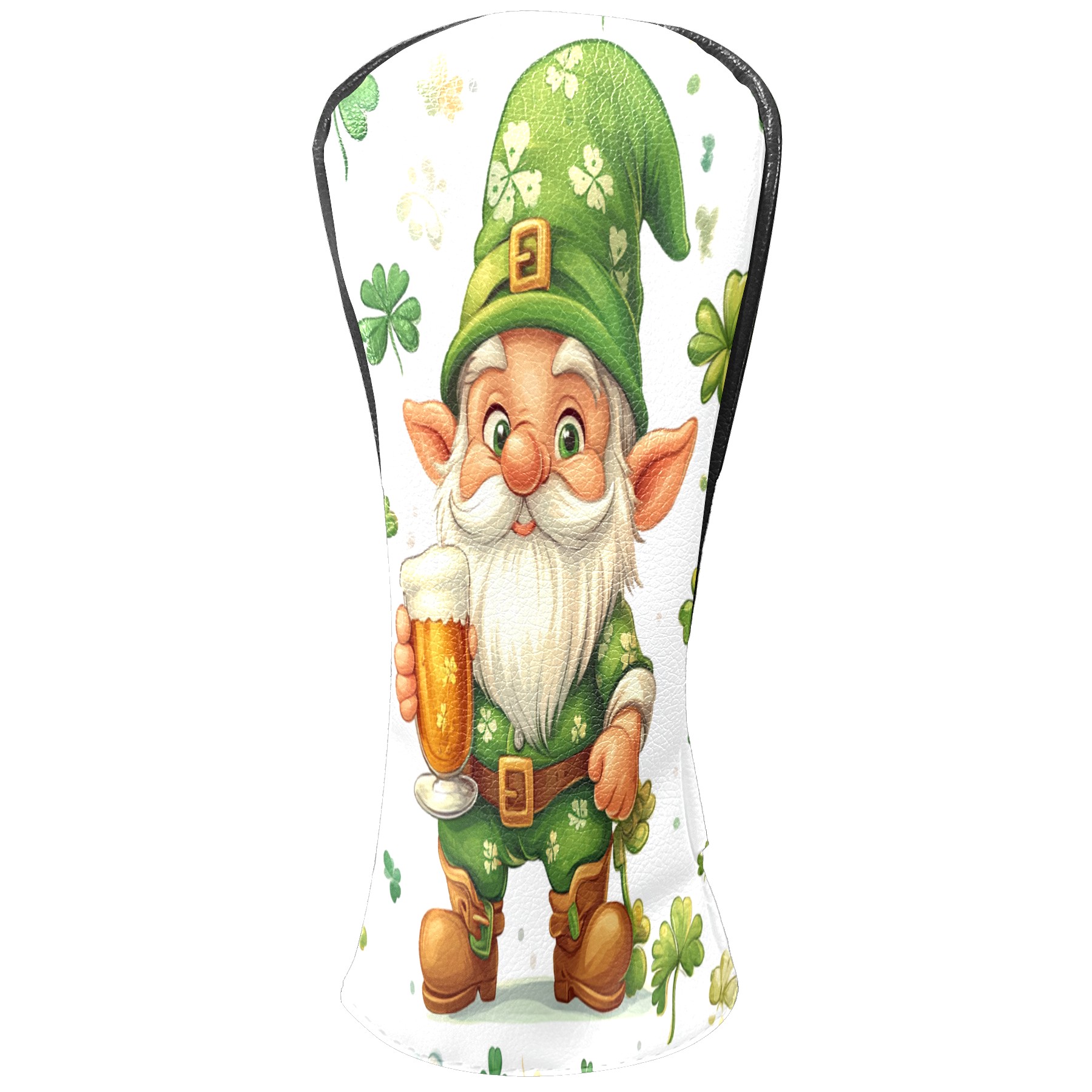 Golf Club Head Cover, High Quality PU Leather Driver and Wood Club Head Cover with Anti-Scratch Lining, Universal Gift for Men and Women St Patrick's Day Gnome Shamrock