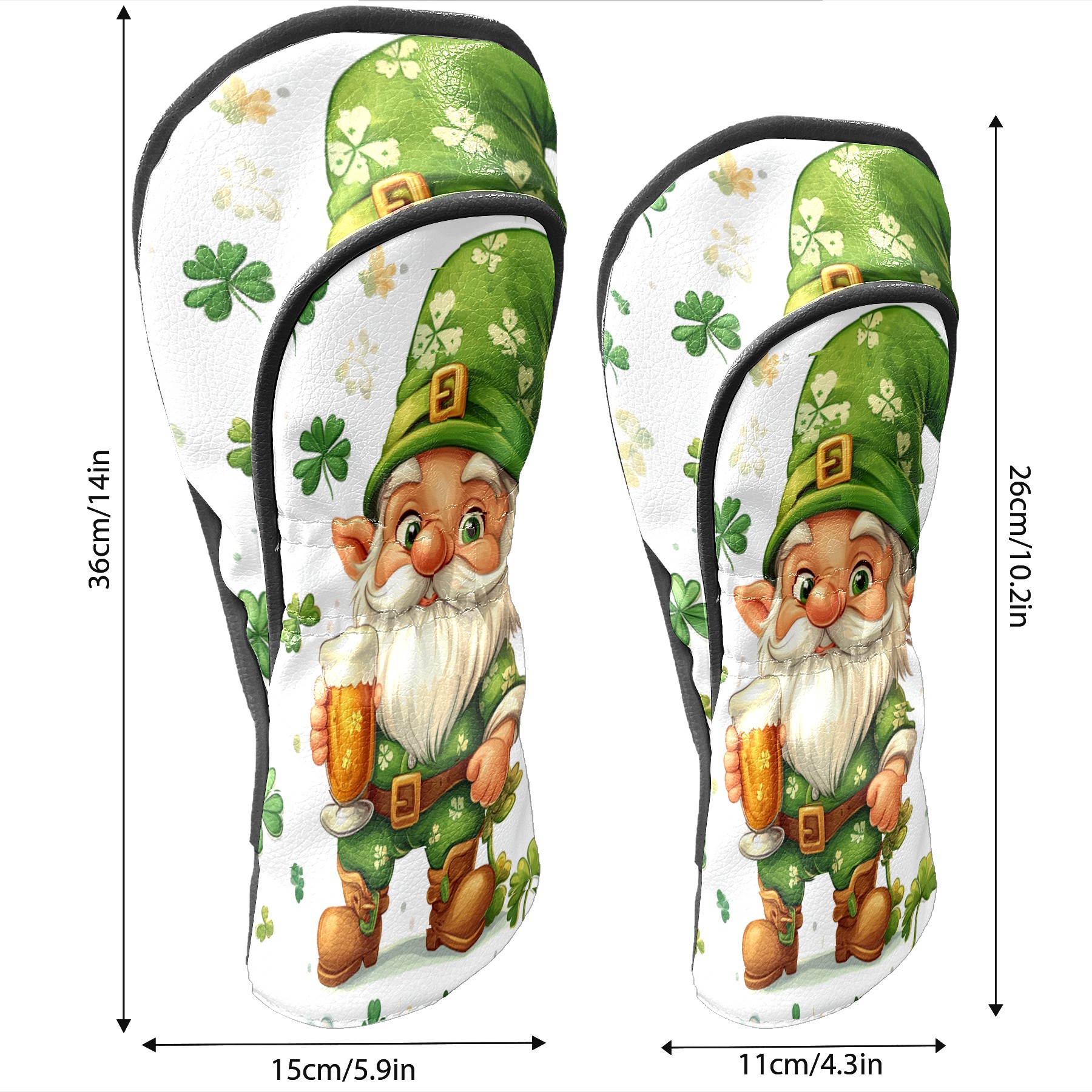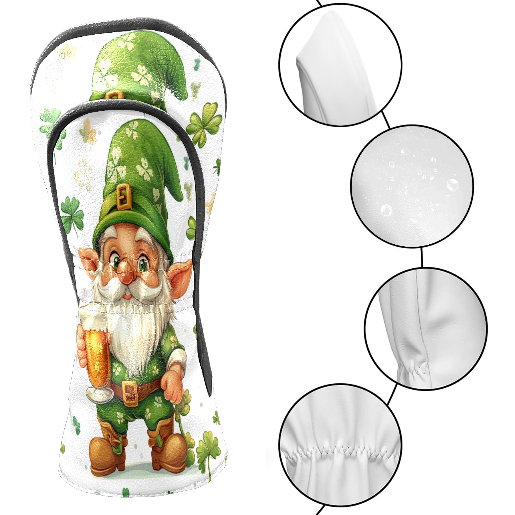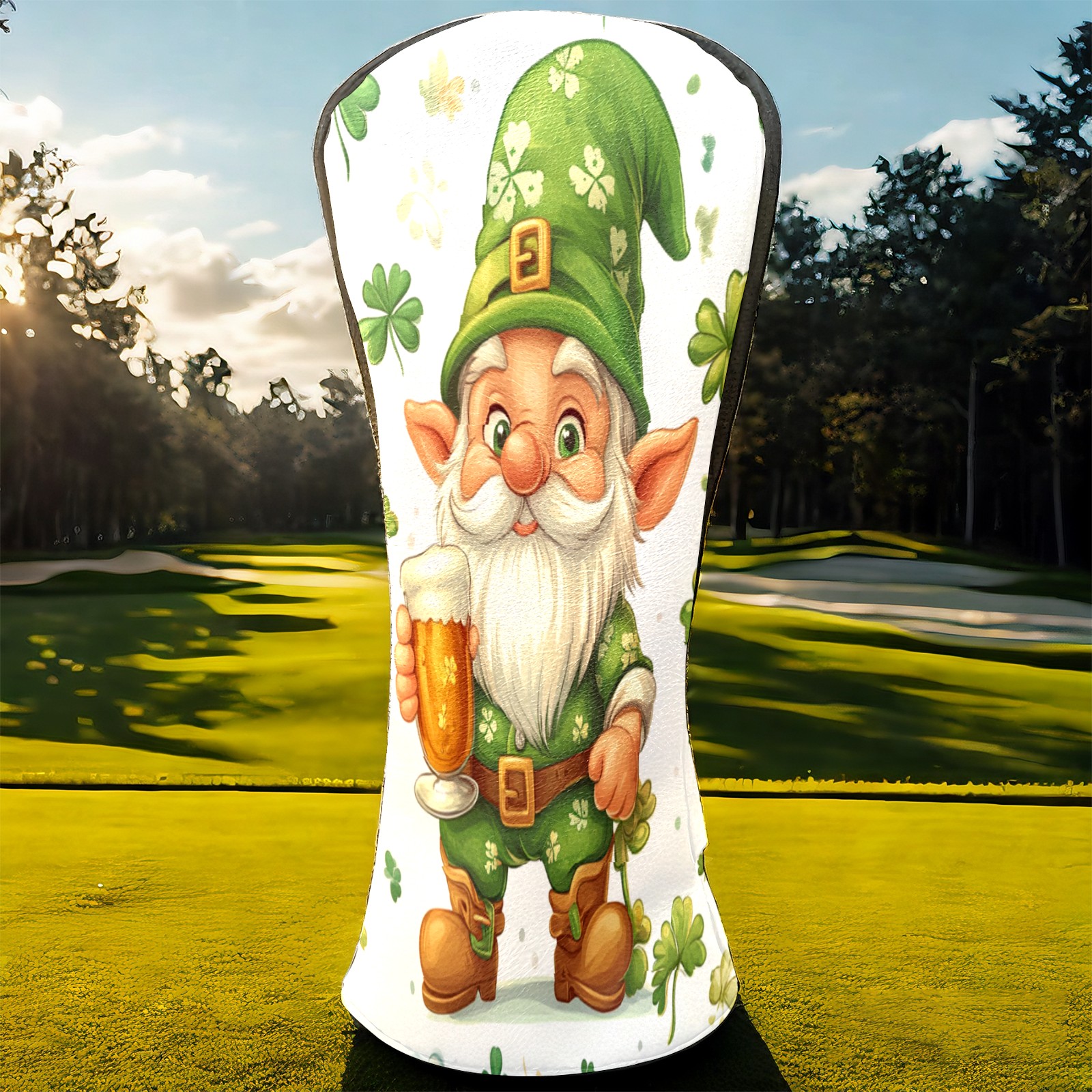 Golf Club Head Cover, High Quality PU Leather Driver and Wood Club Head Cover with Anti-Scratch Lining, Universal Gift for Men and Women St Patrick's Day Gnome Shamrock