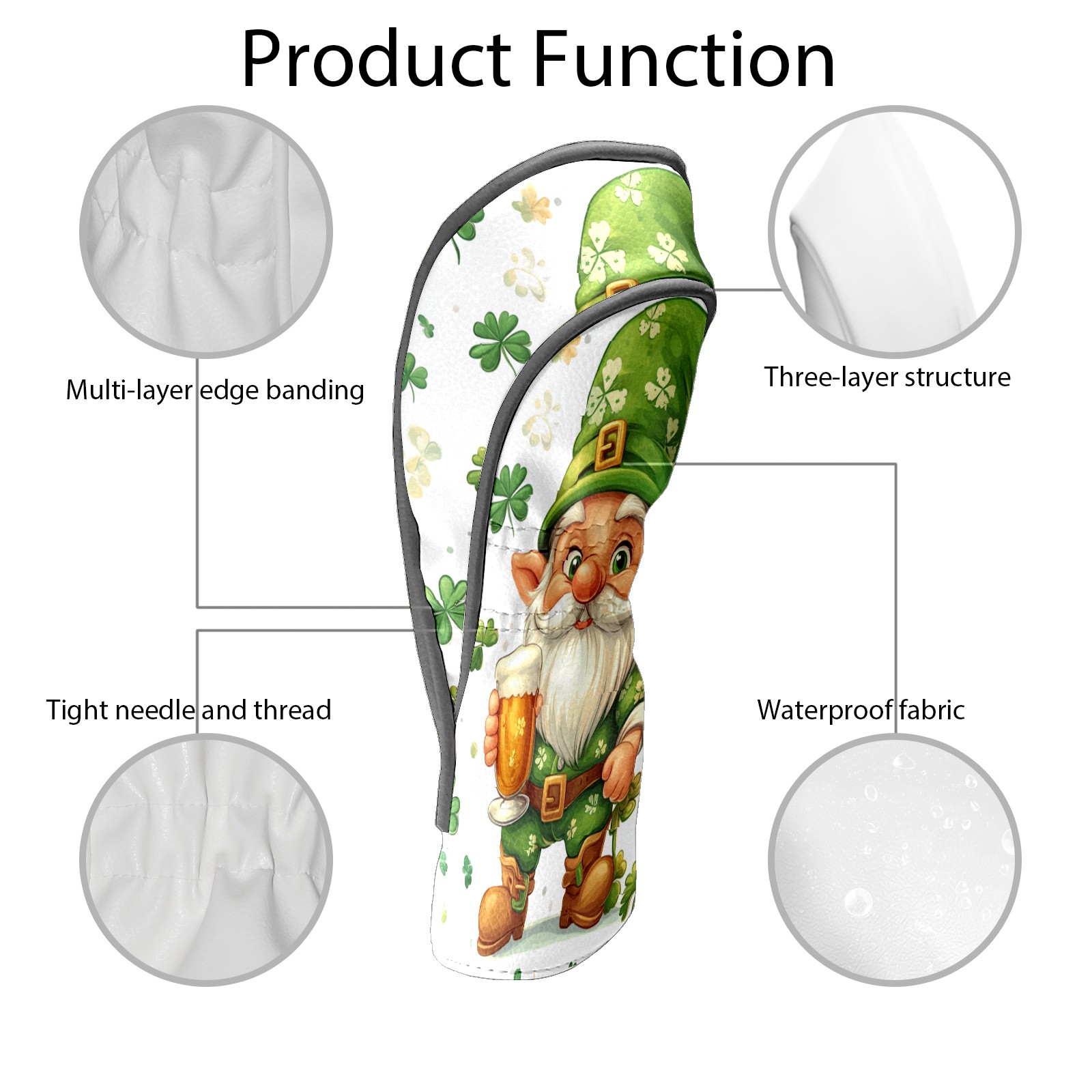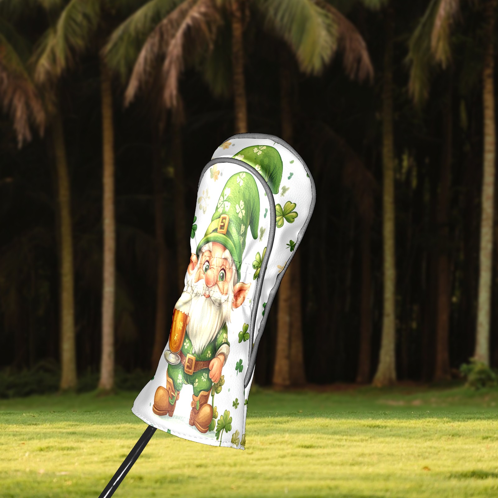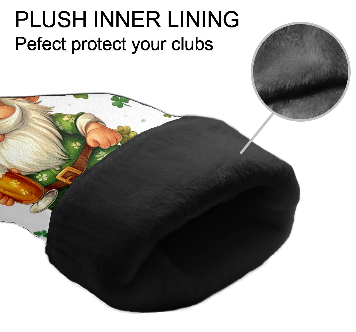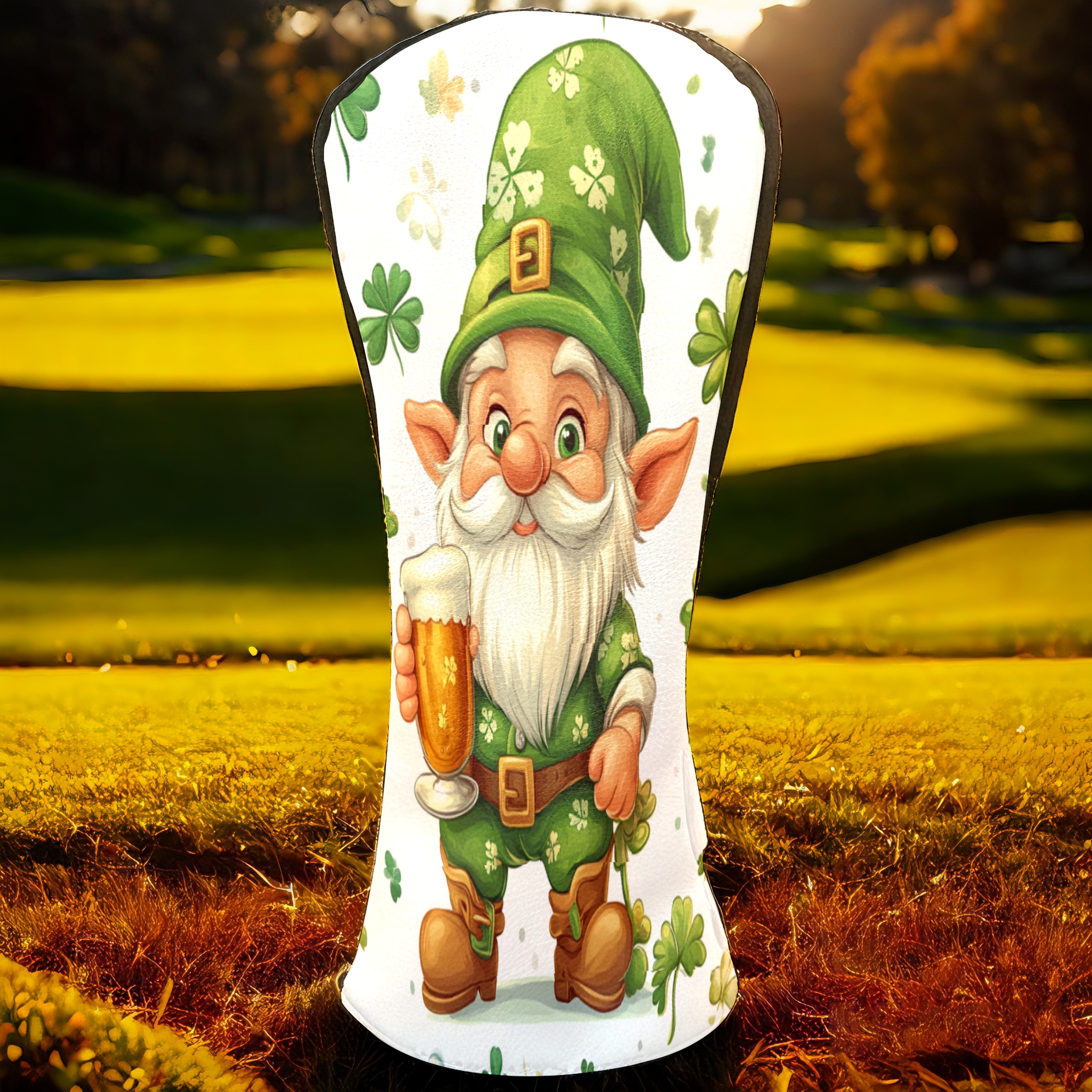 Golf Club Head Cover, High Quality PU Leather Driver and Wood Club Head Cover with Anti-Scratch Lining, Universal Gift for Men and Women St Patrick's Day Gnome Shamrock