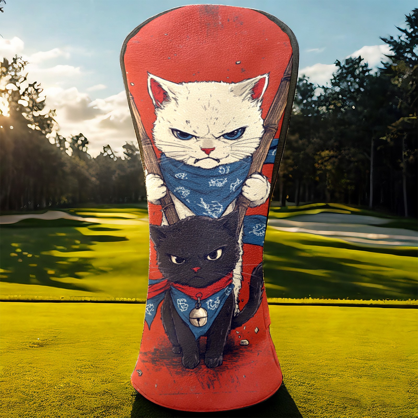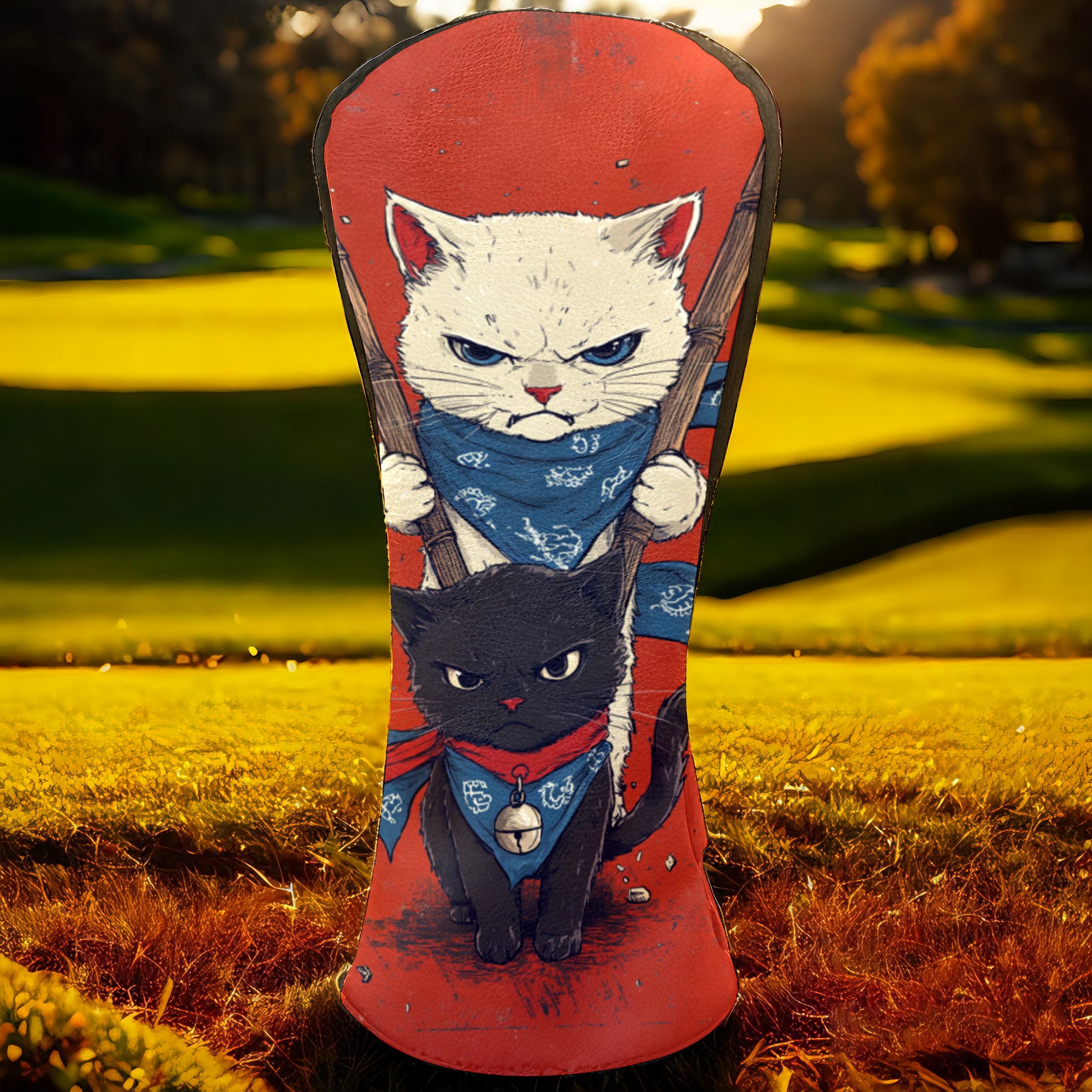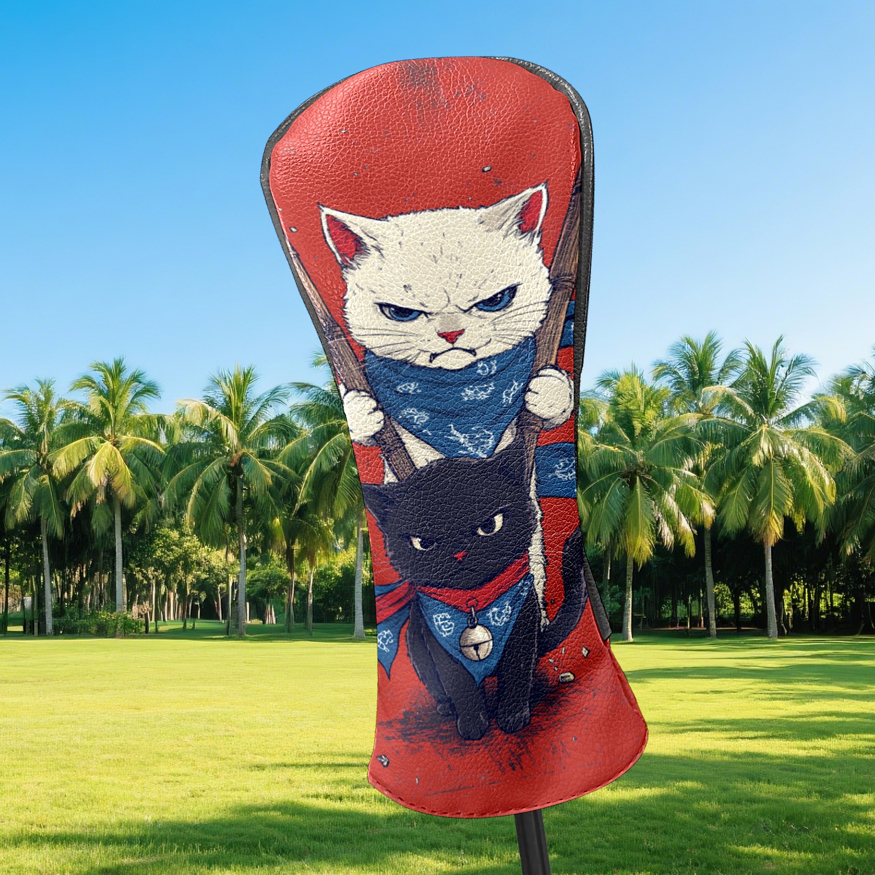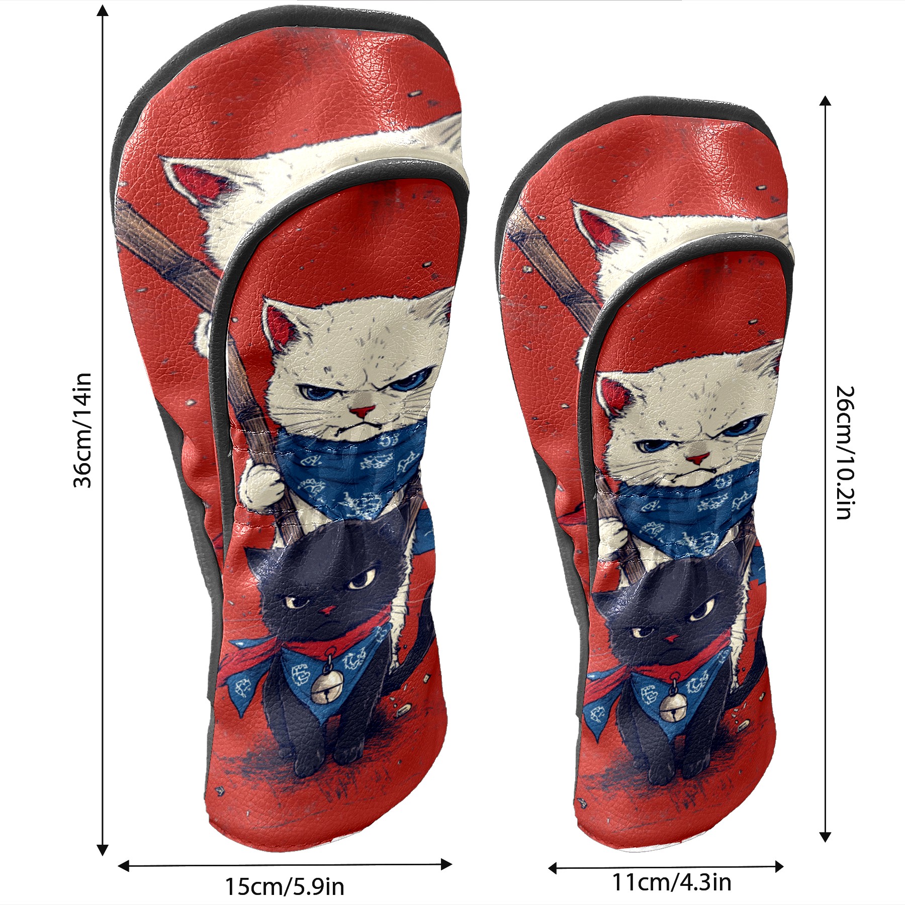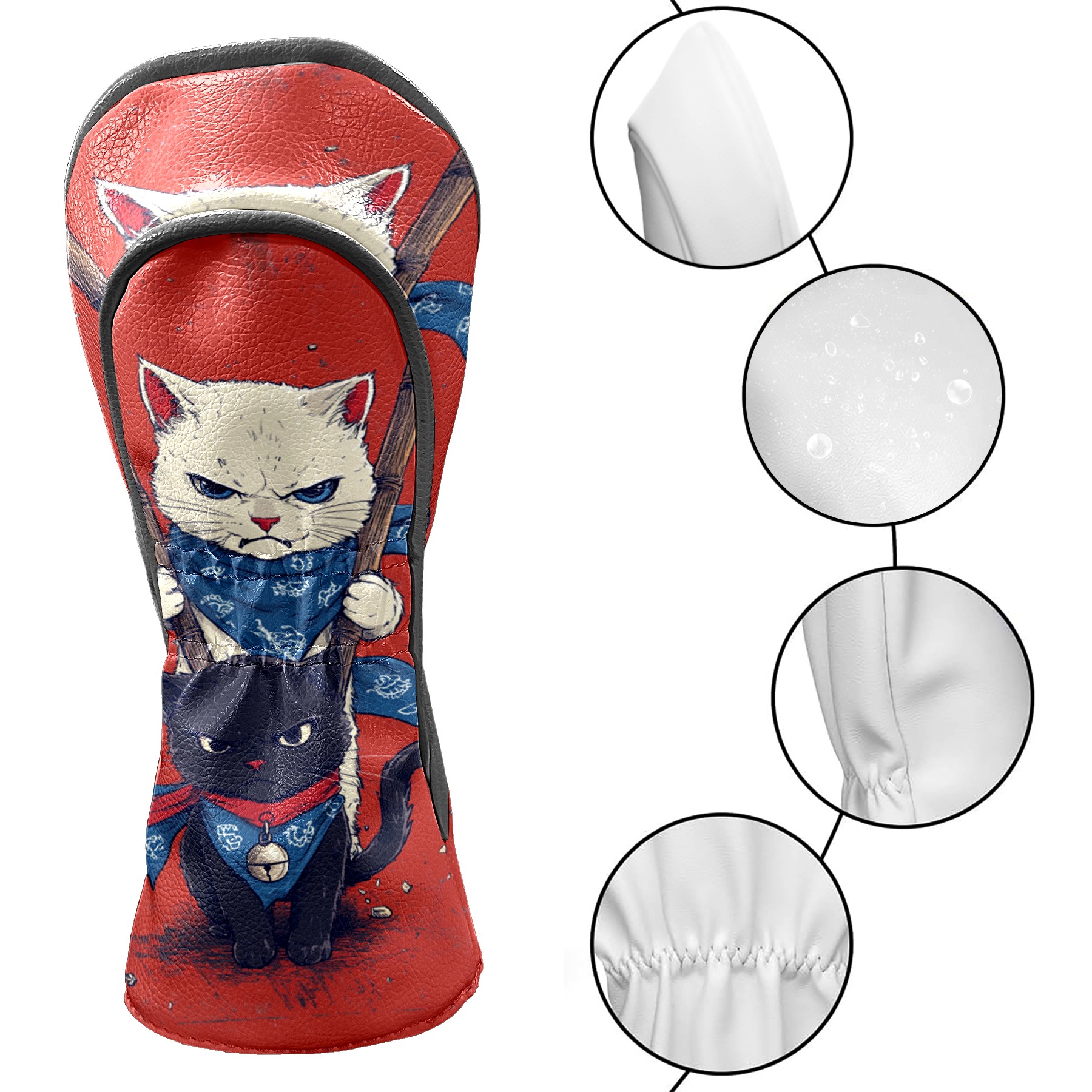 Golf Club Head Cover, High Quality PU Leather Driver and Wood Club Head Cover with Anti-Scratch Lining, Universal Gift for Men and Women Angry White Cat