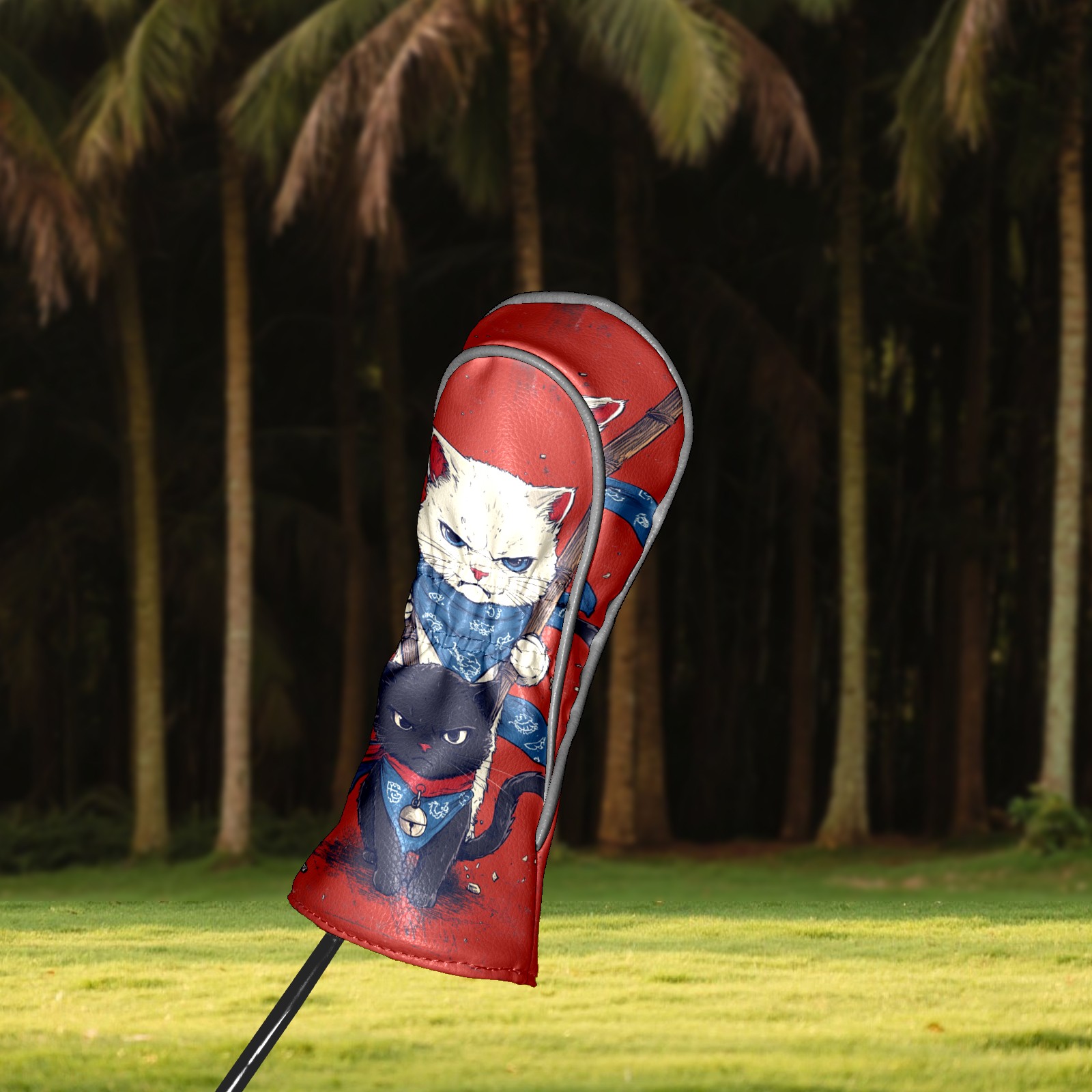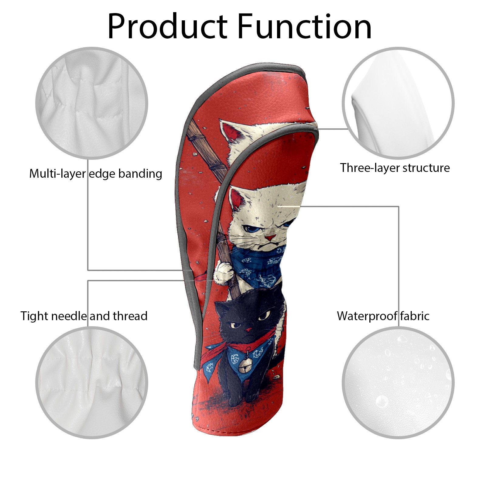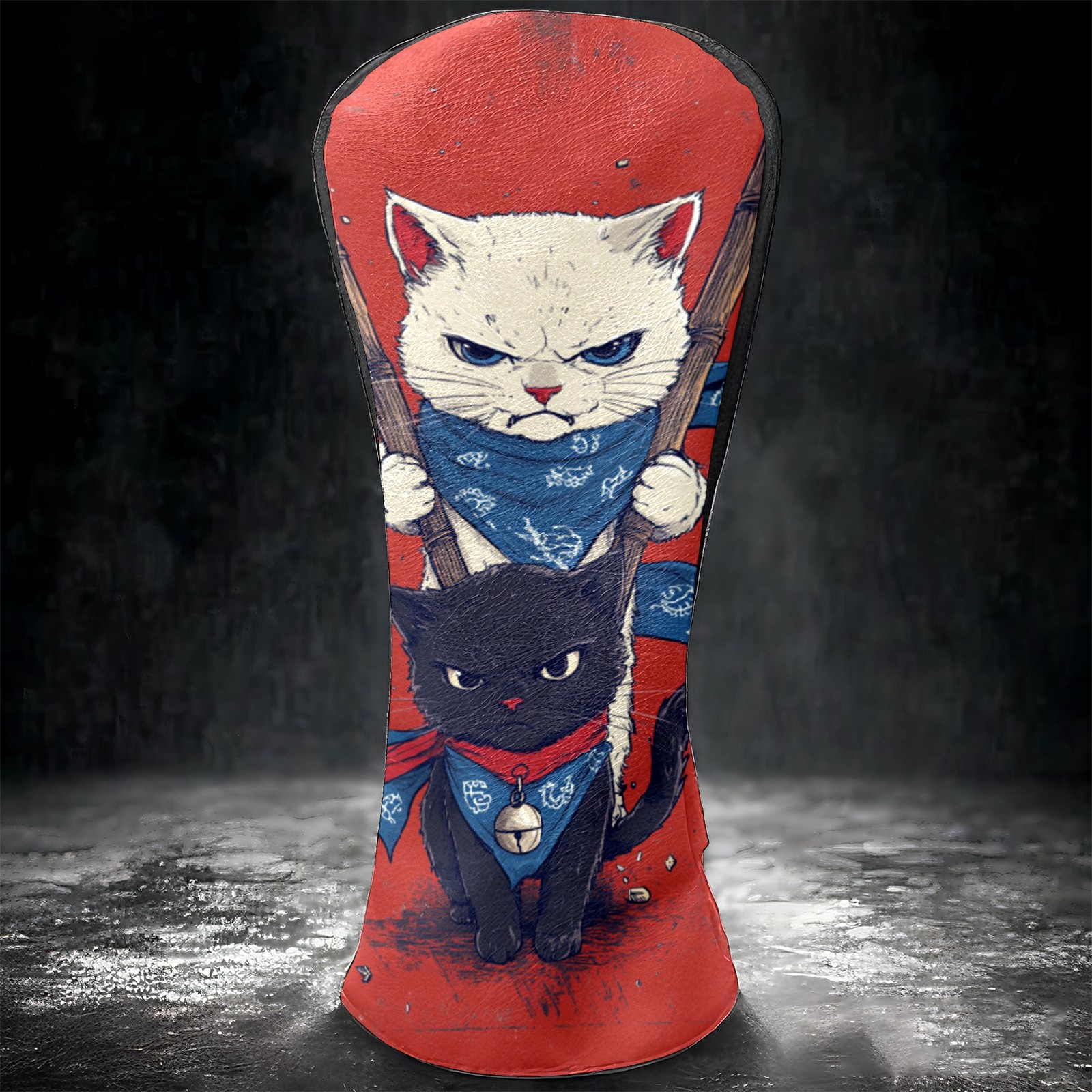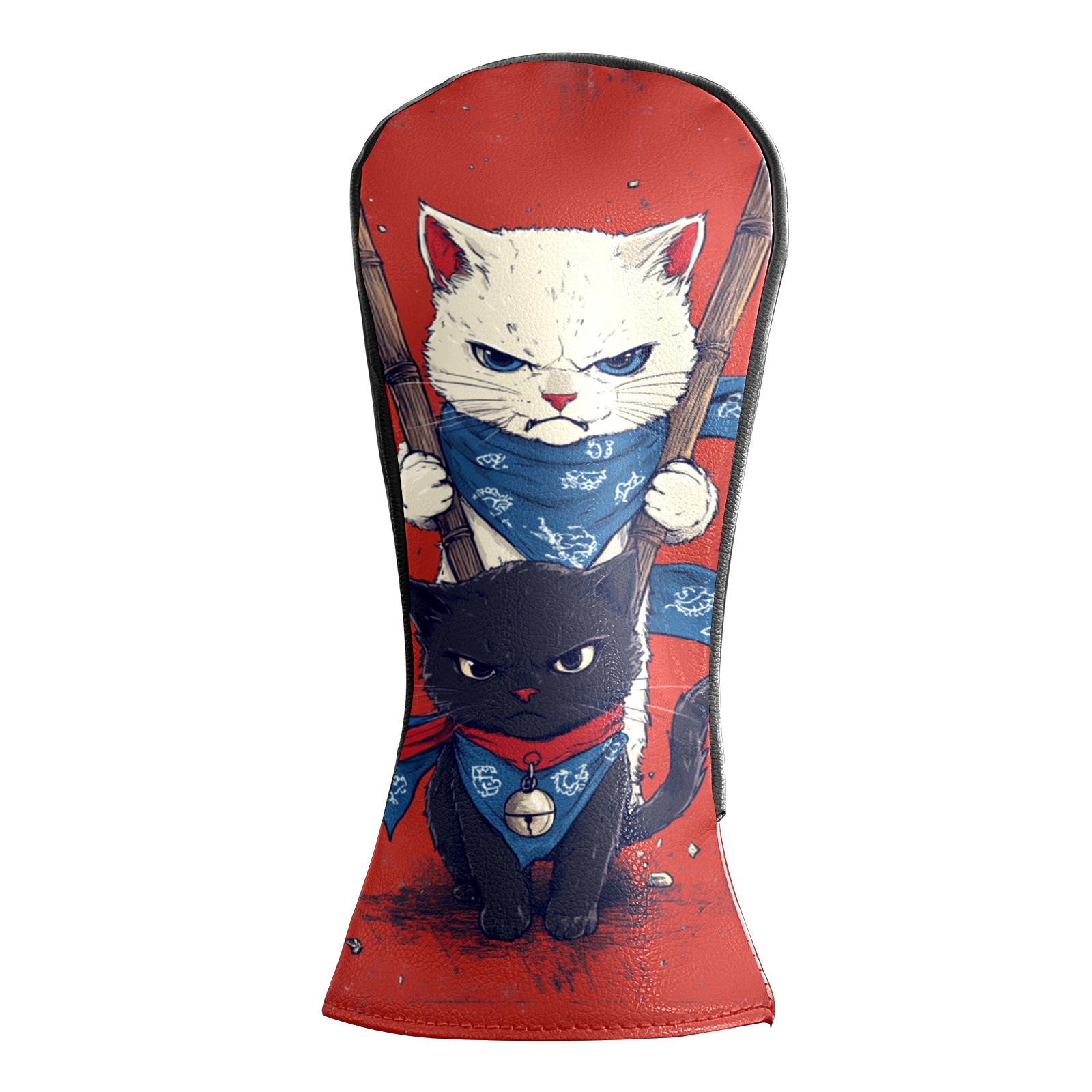 Golf Club Head Cover, High Quality PU Leather Driver and Wood Club Head Cover with Anti-Scratch Lining, Universal Gift for Men and Women Angry White Cat