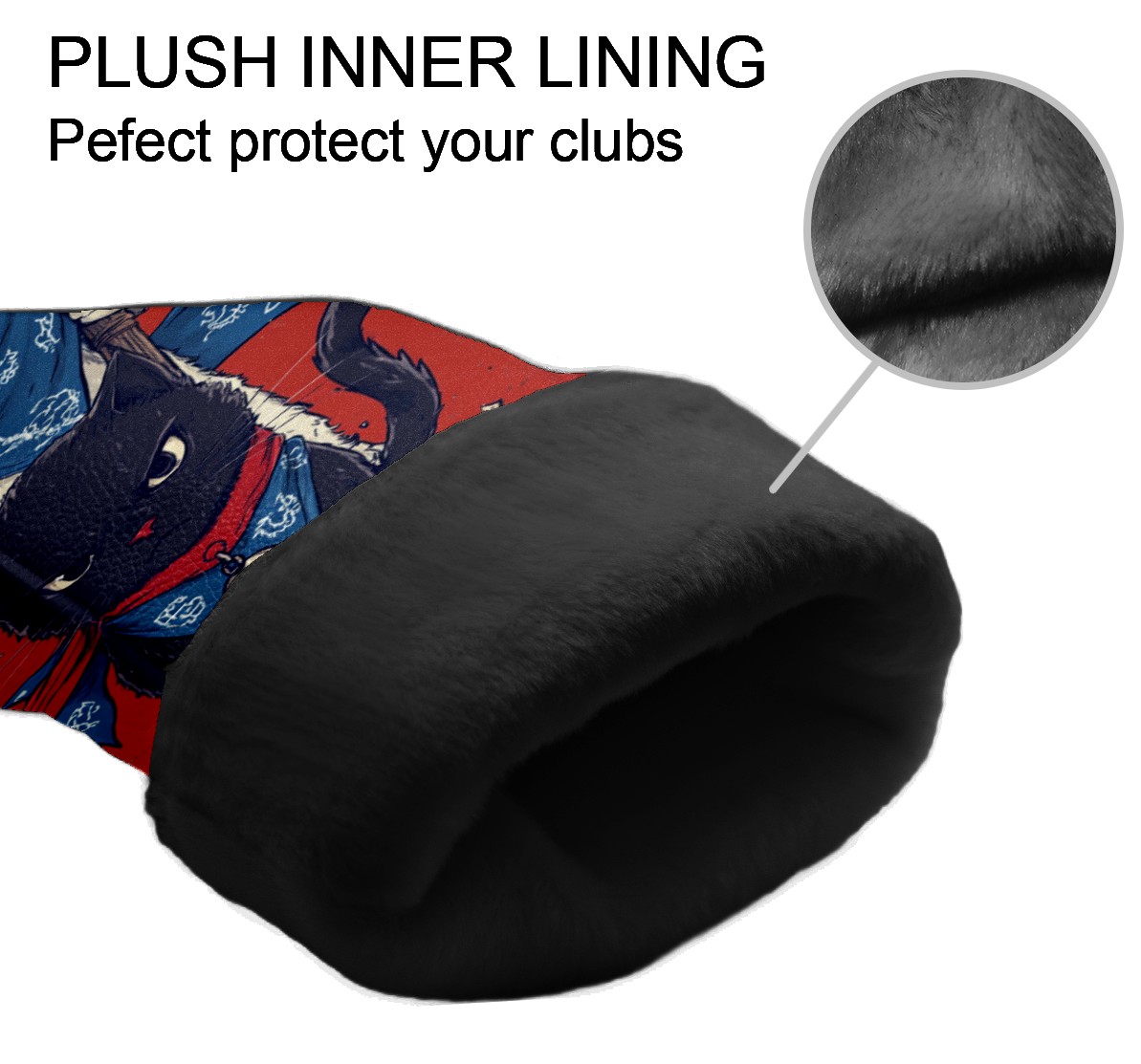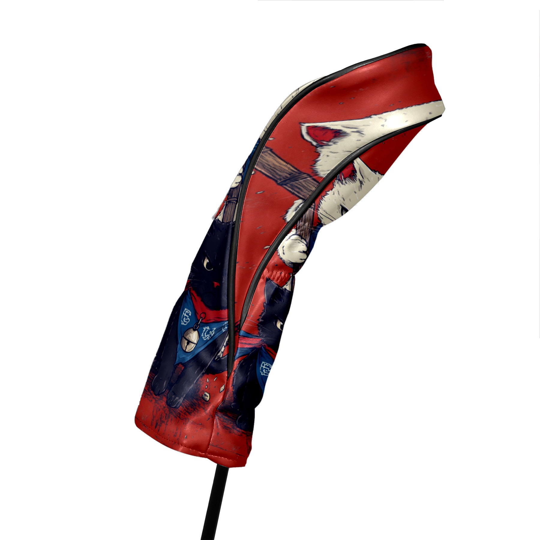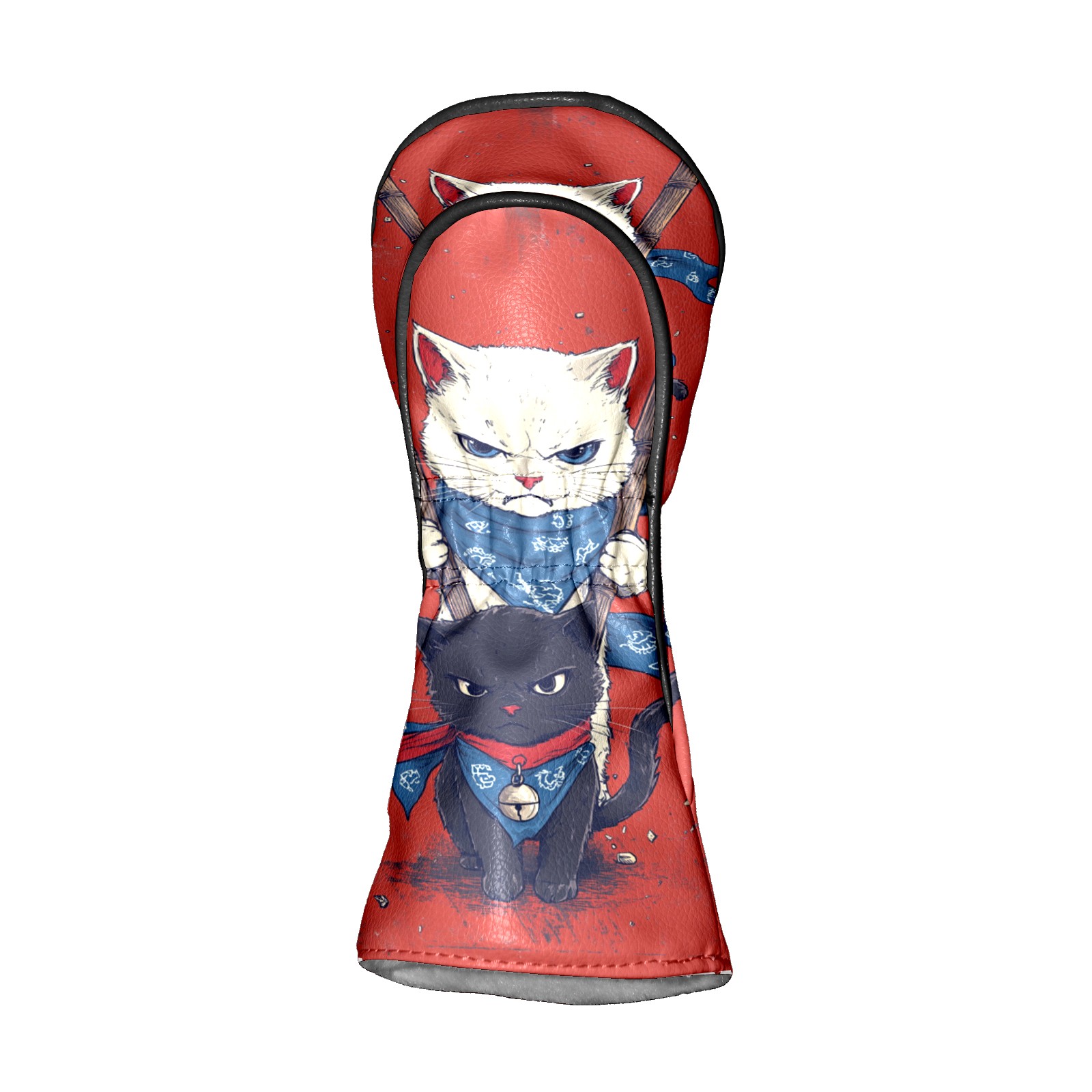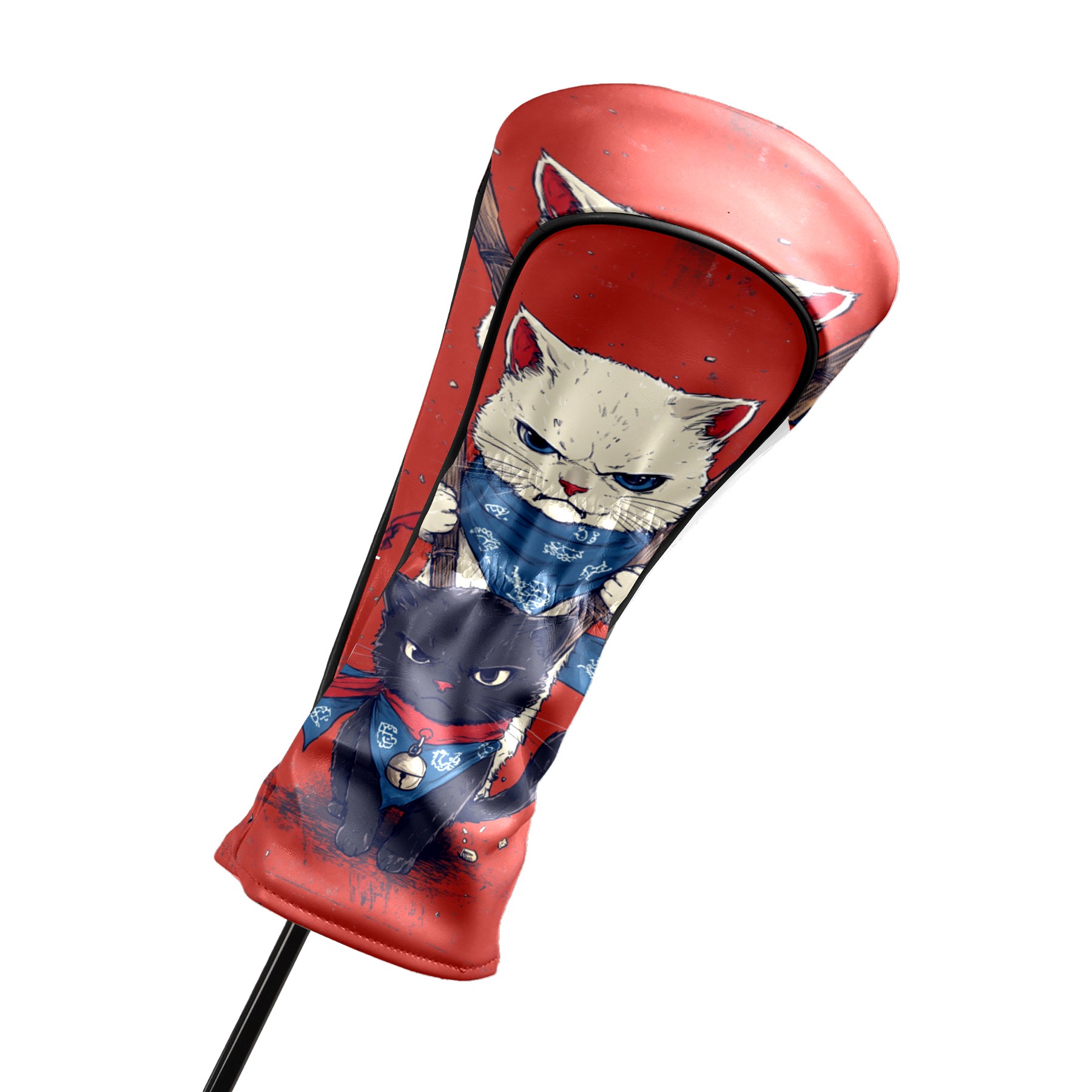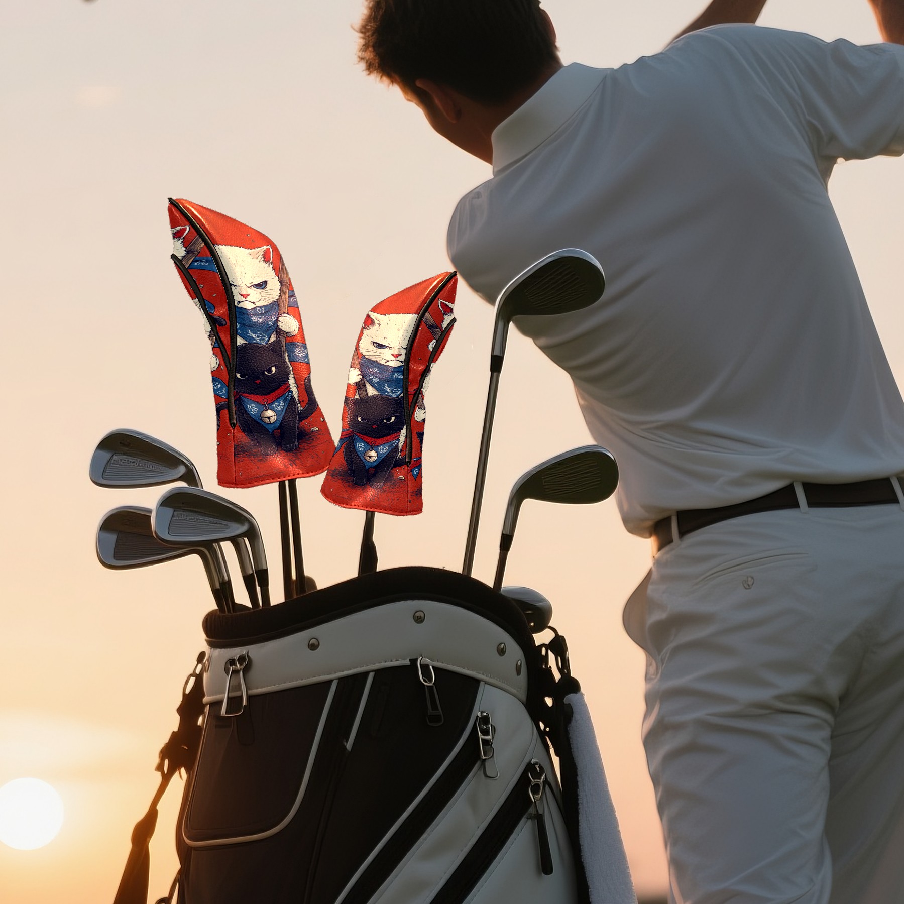 Golf Club Head Cover, High Quality PU Leather Driver and Wood Club Head Cover with Anti-Scratch Lining, Universal Gift for Men and Women Angry White Cat
