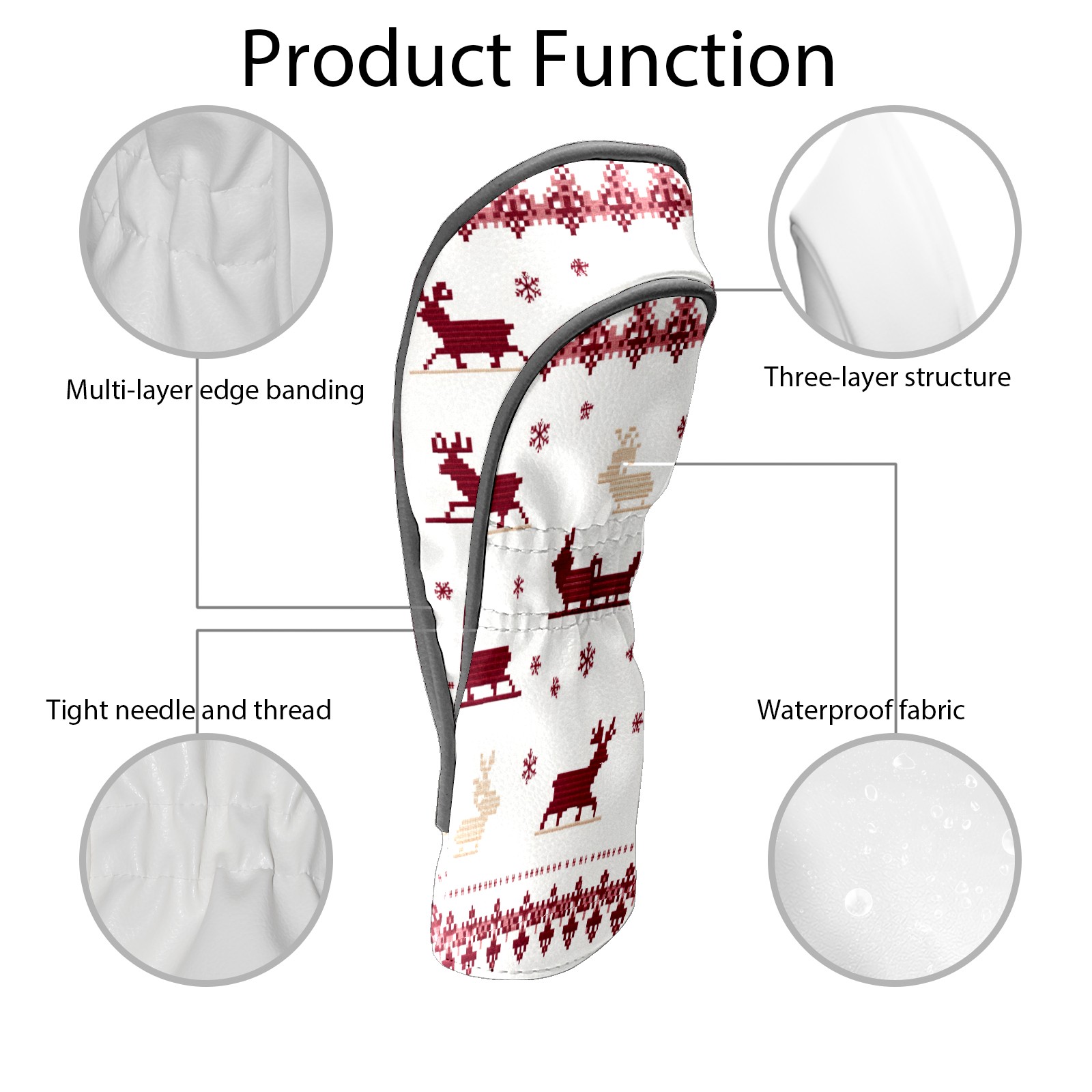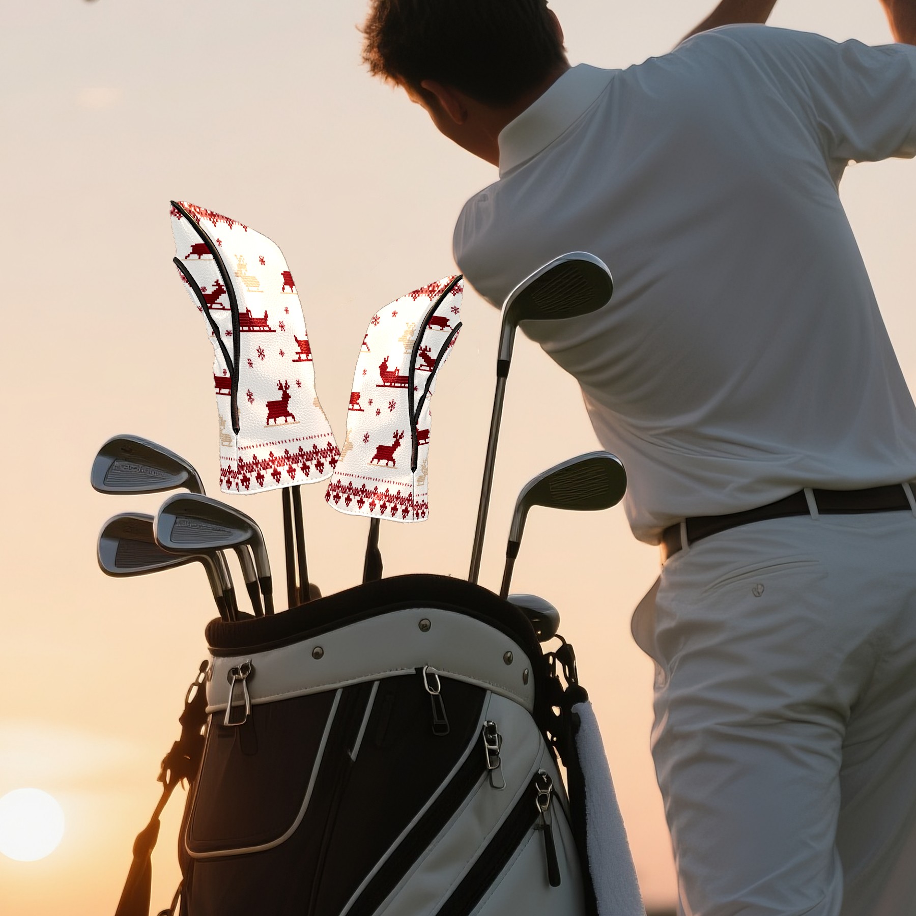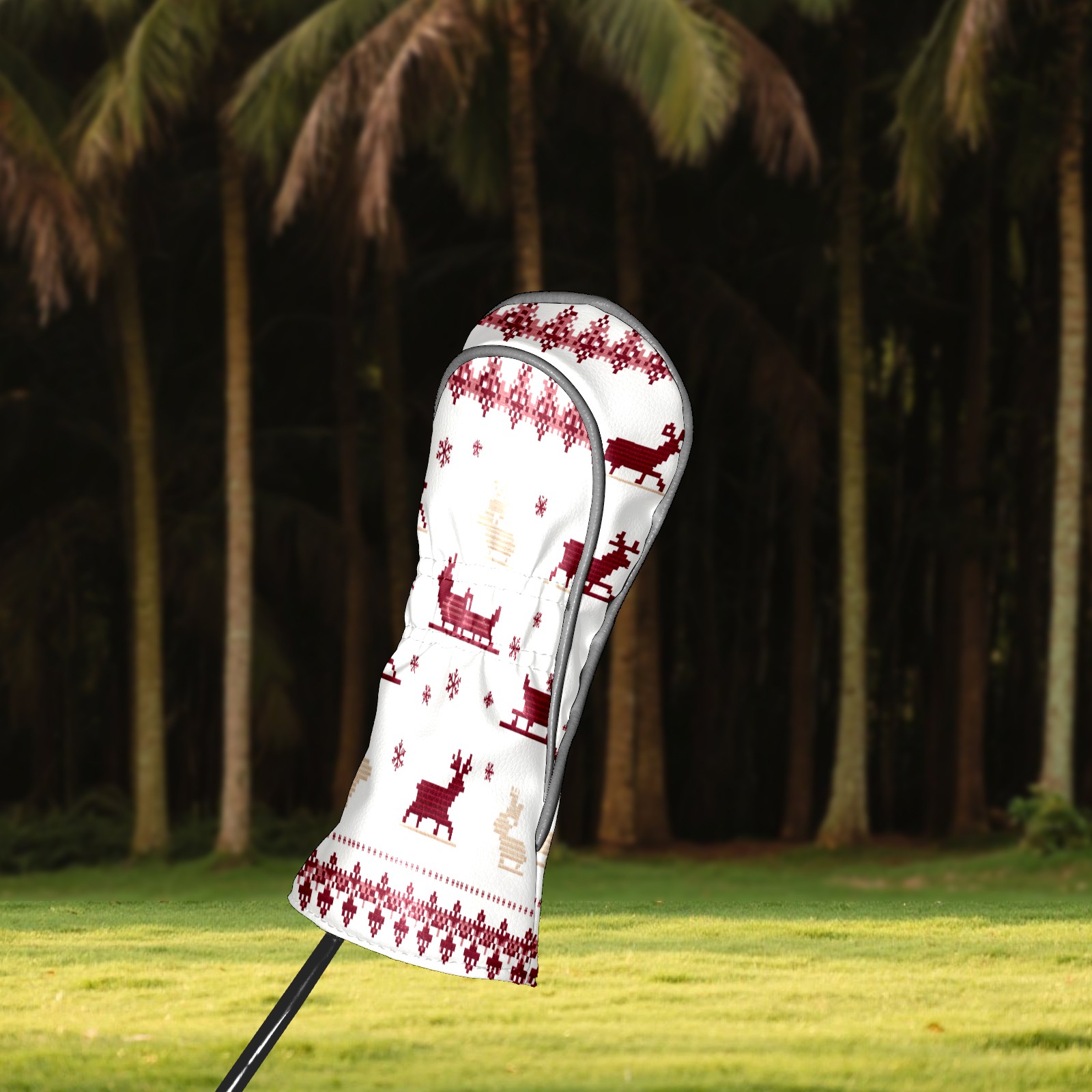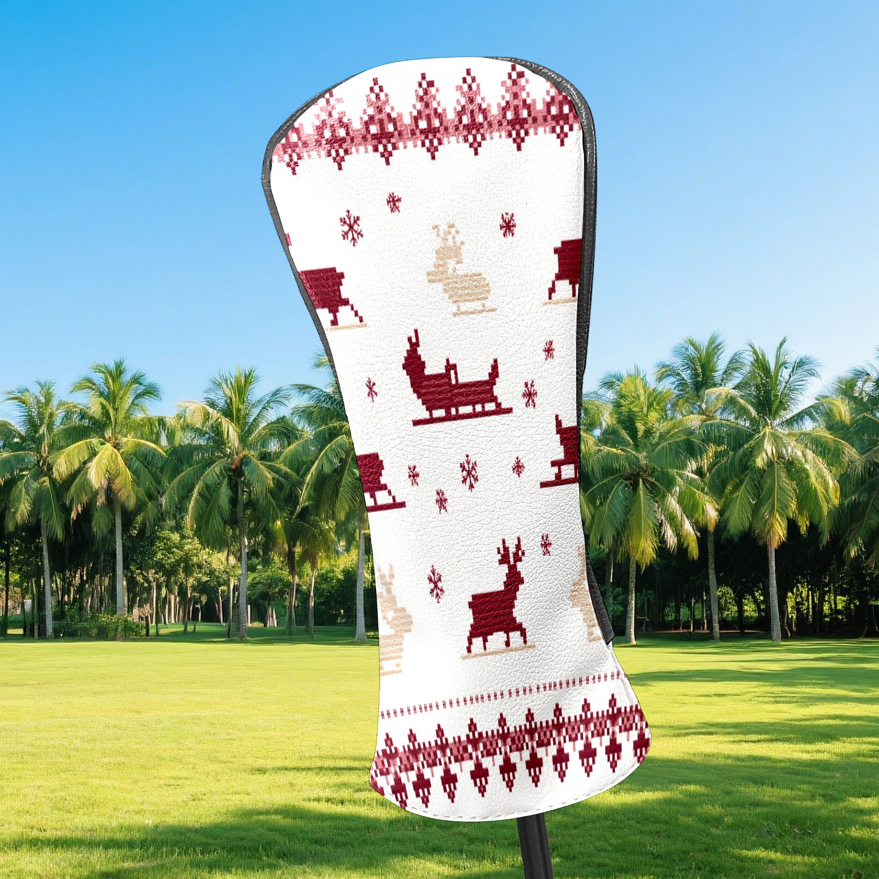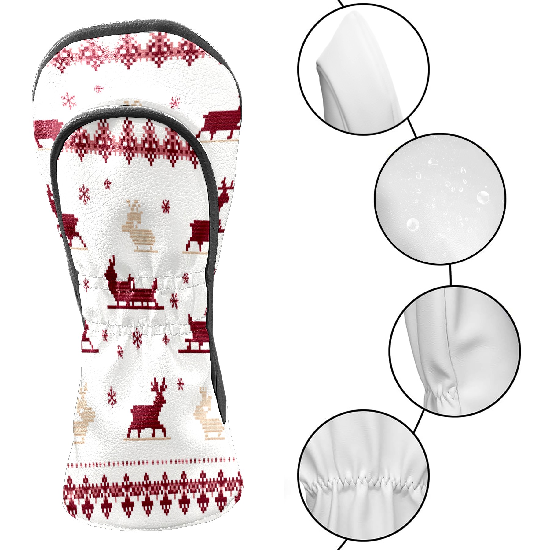 Golf Club Head Cover, High Quality PU Leather Driver and Wood Club Head Cover with Anti-Scratch Lining, Universal Gift for Men and Women Christmas Sweater Pattern