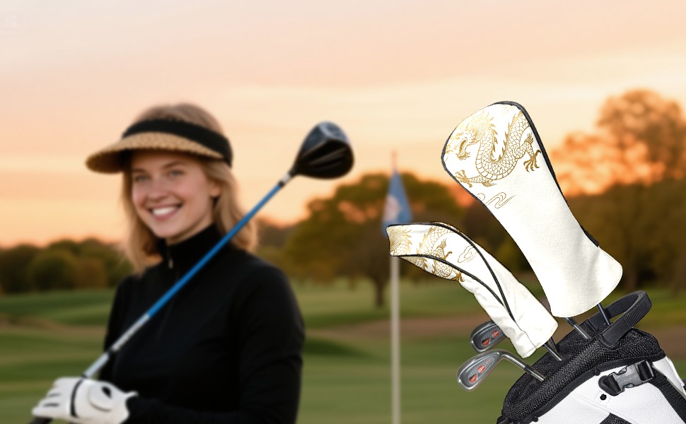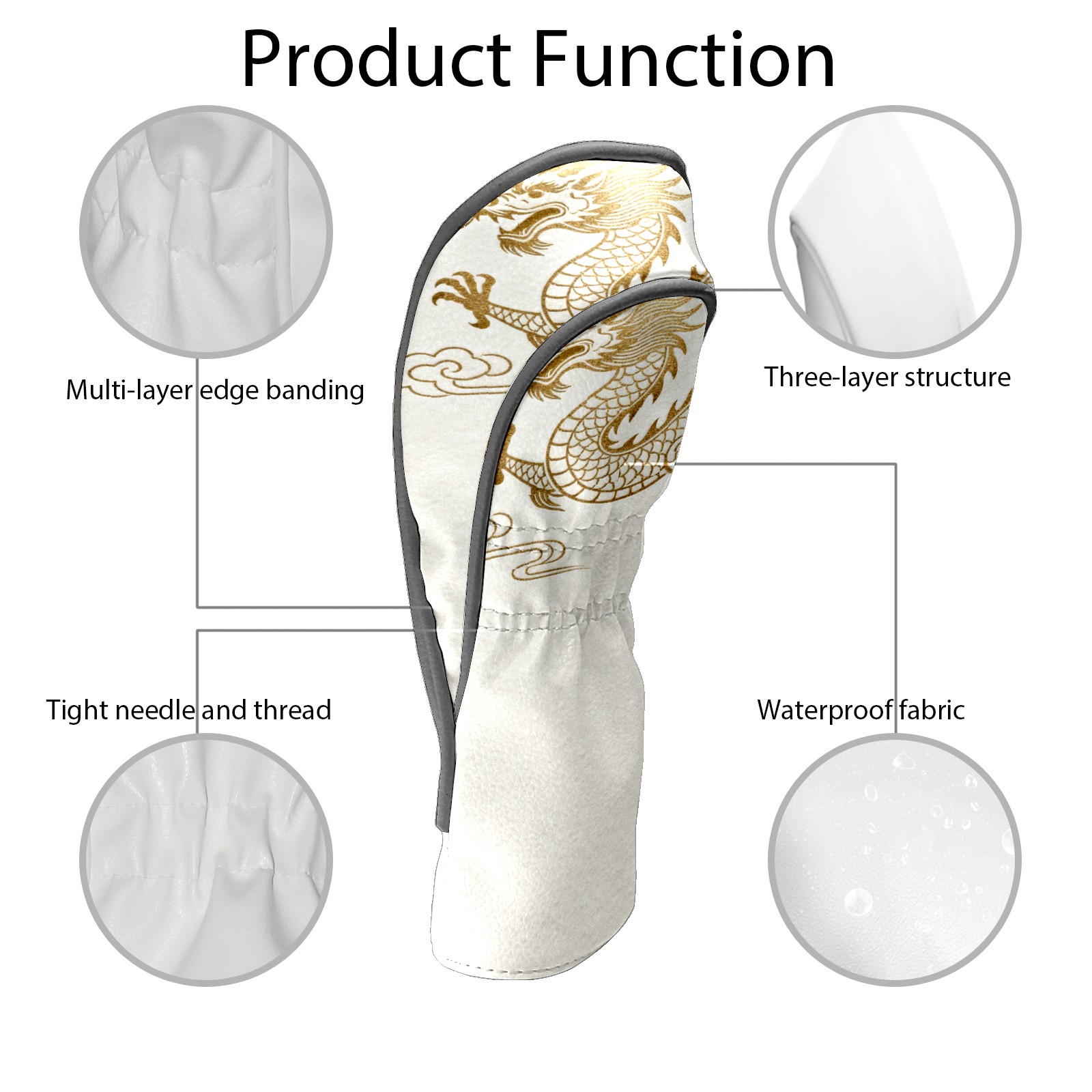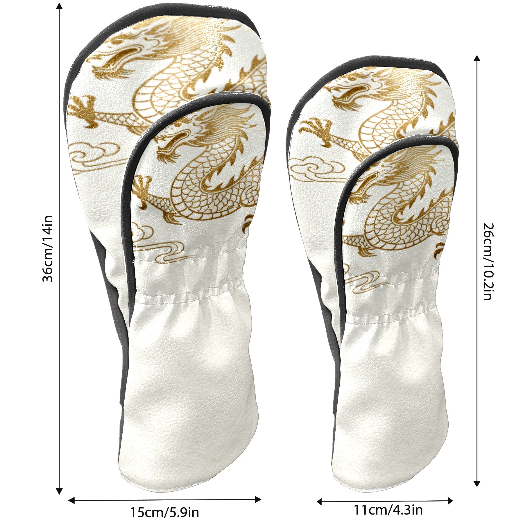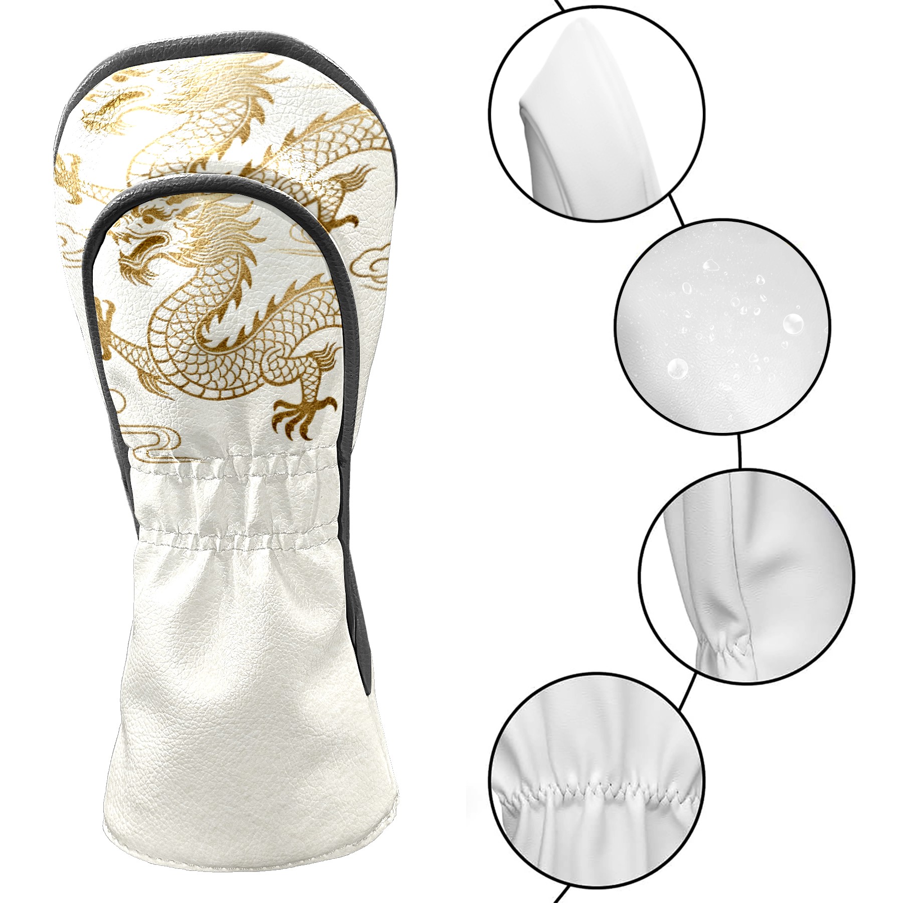 Golf Club Head Cover, High Quality PU Leather Driver and Wood Club Head Cover with Anti-Scratch Lining, Universal Gift for Men and Women Dragon