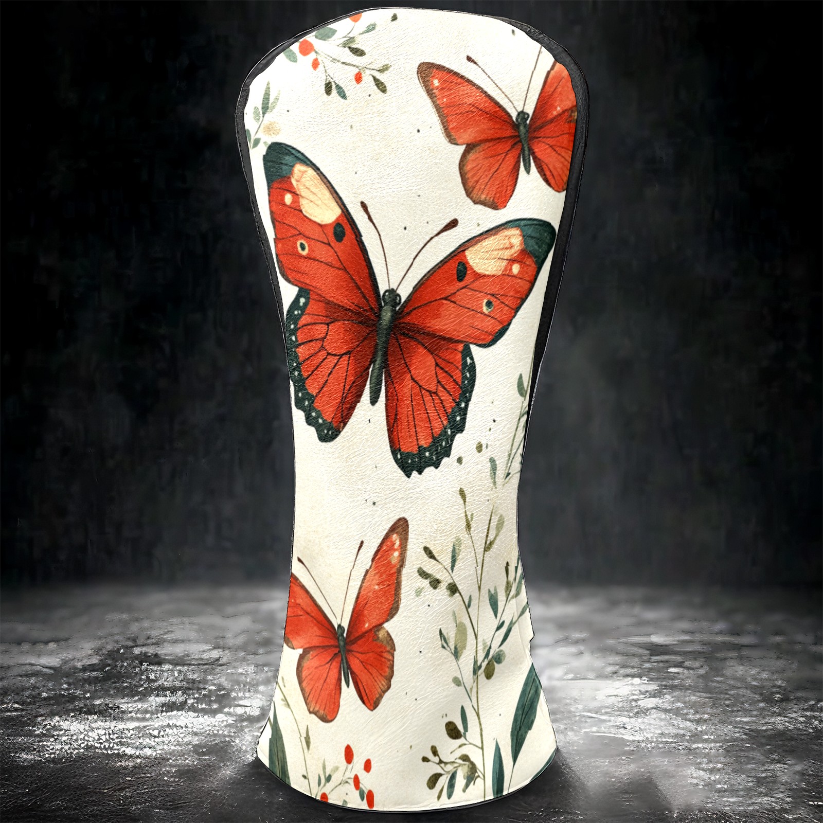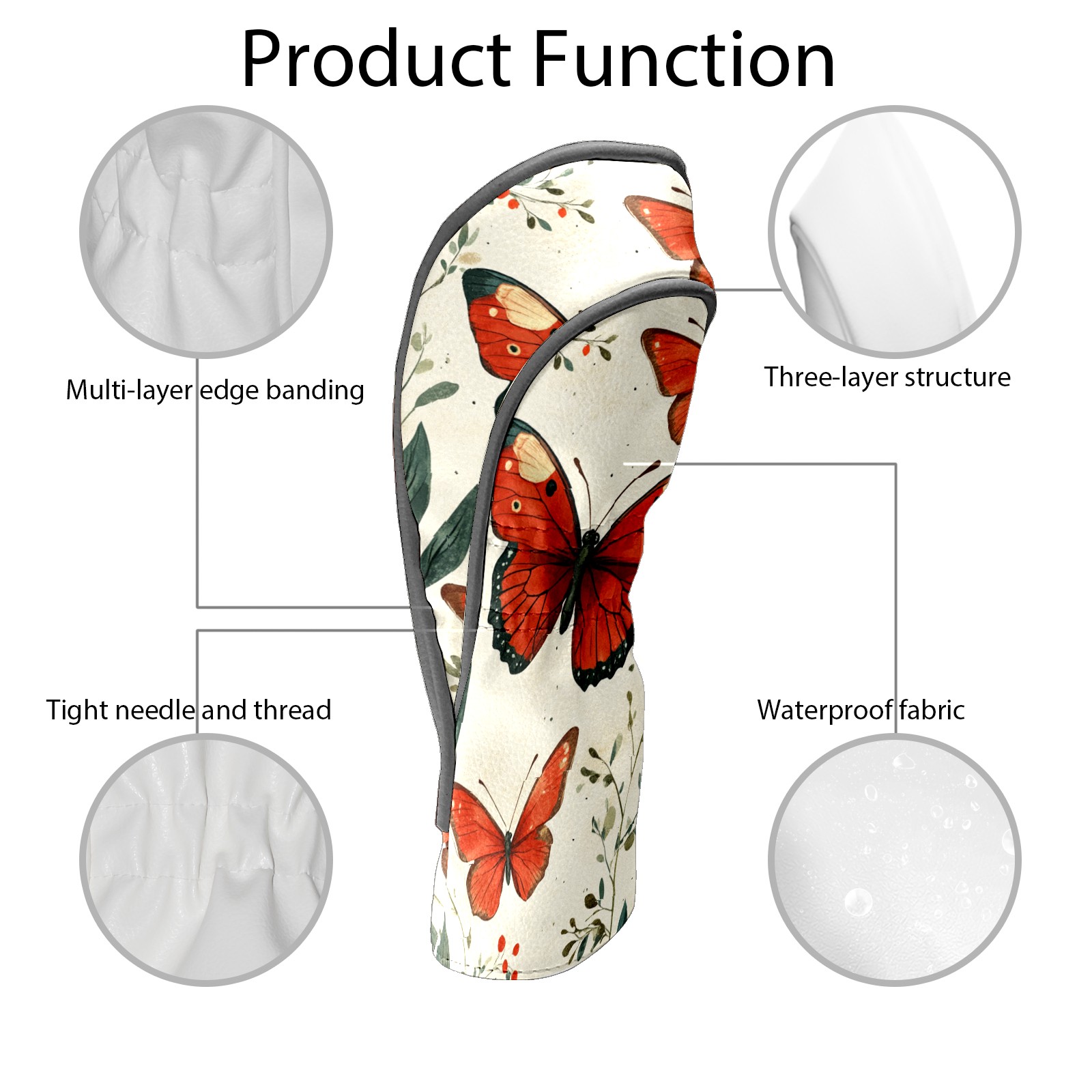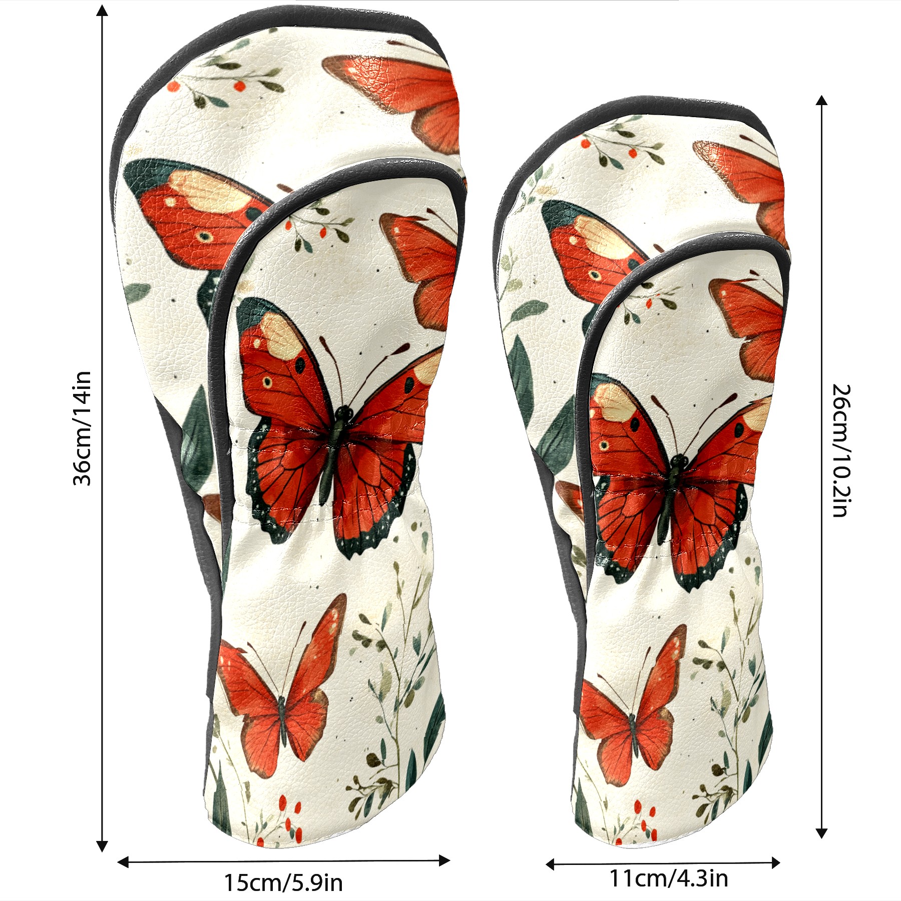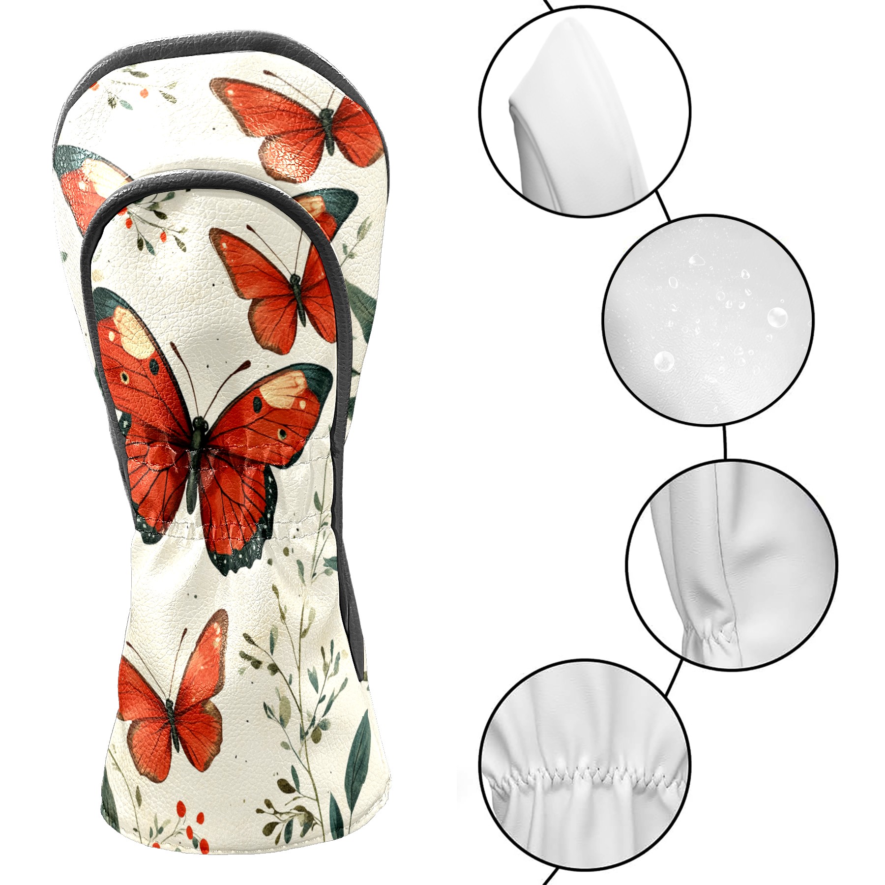 Golf Club Head Cover, High Quality PU Leather Driver and Wood Club Head Cover with Anti-Scratch Lining, Universal Gift for Men and Women Red Butterfly Green Flower
