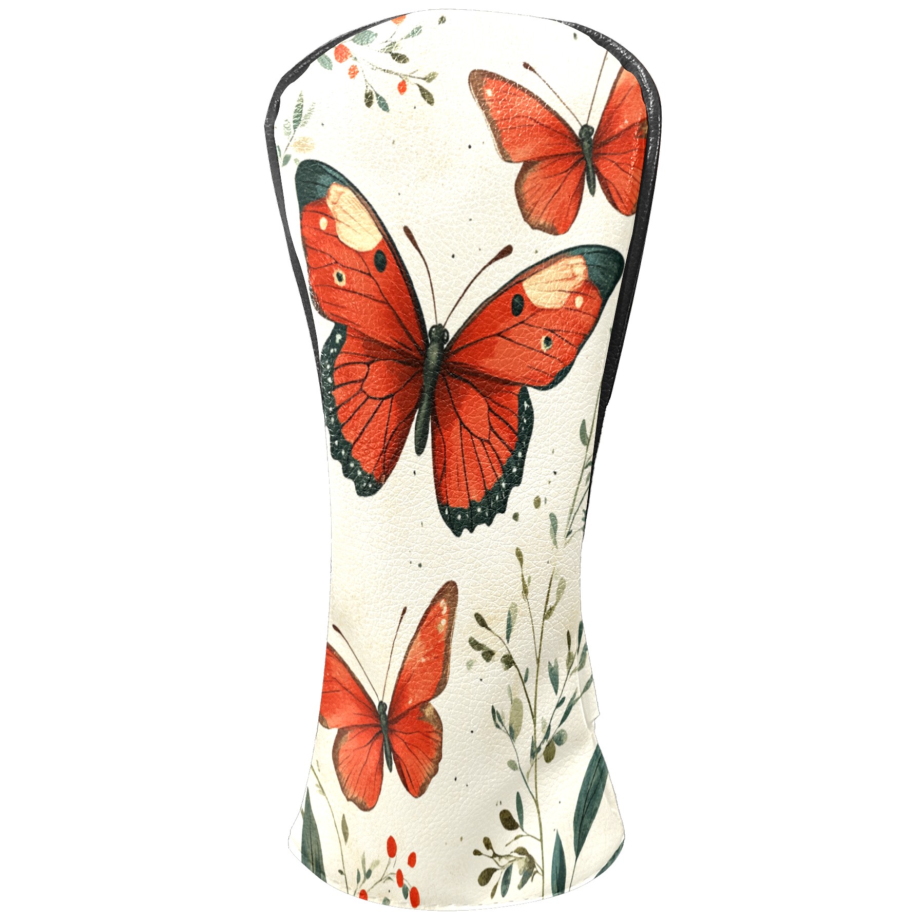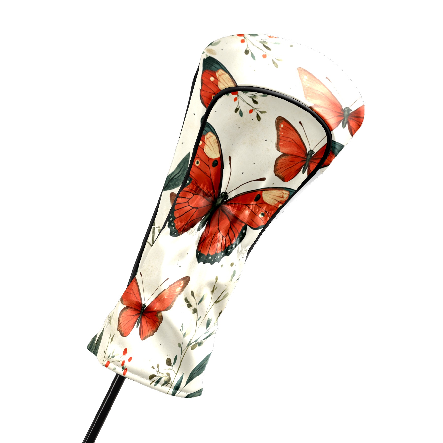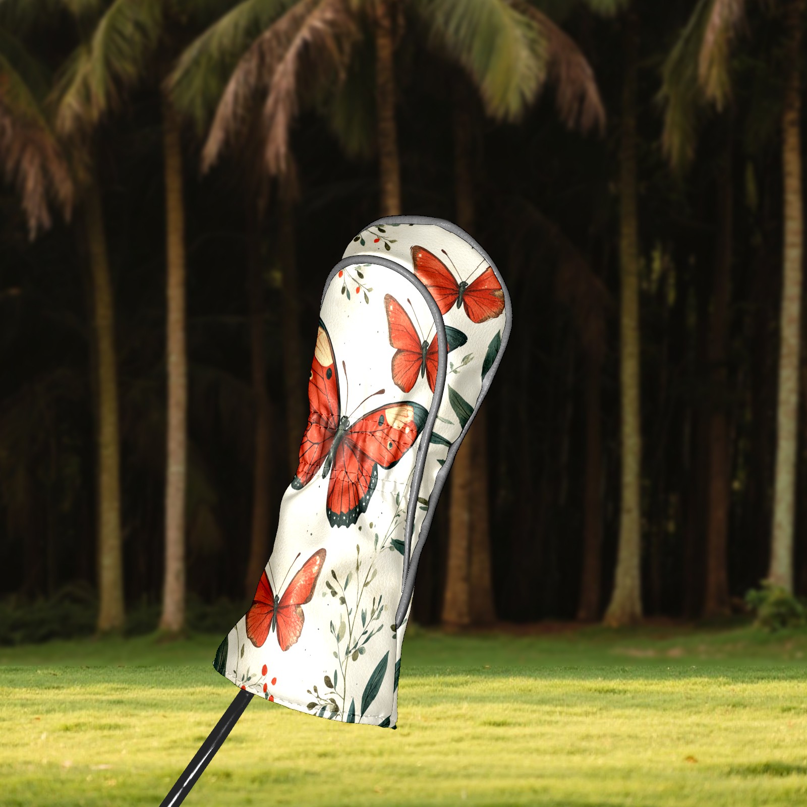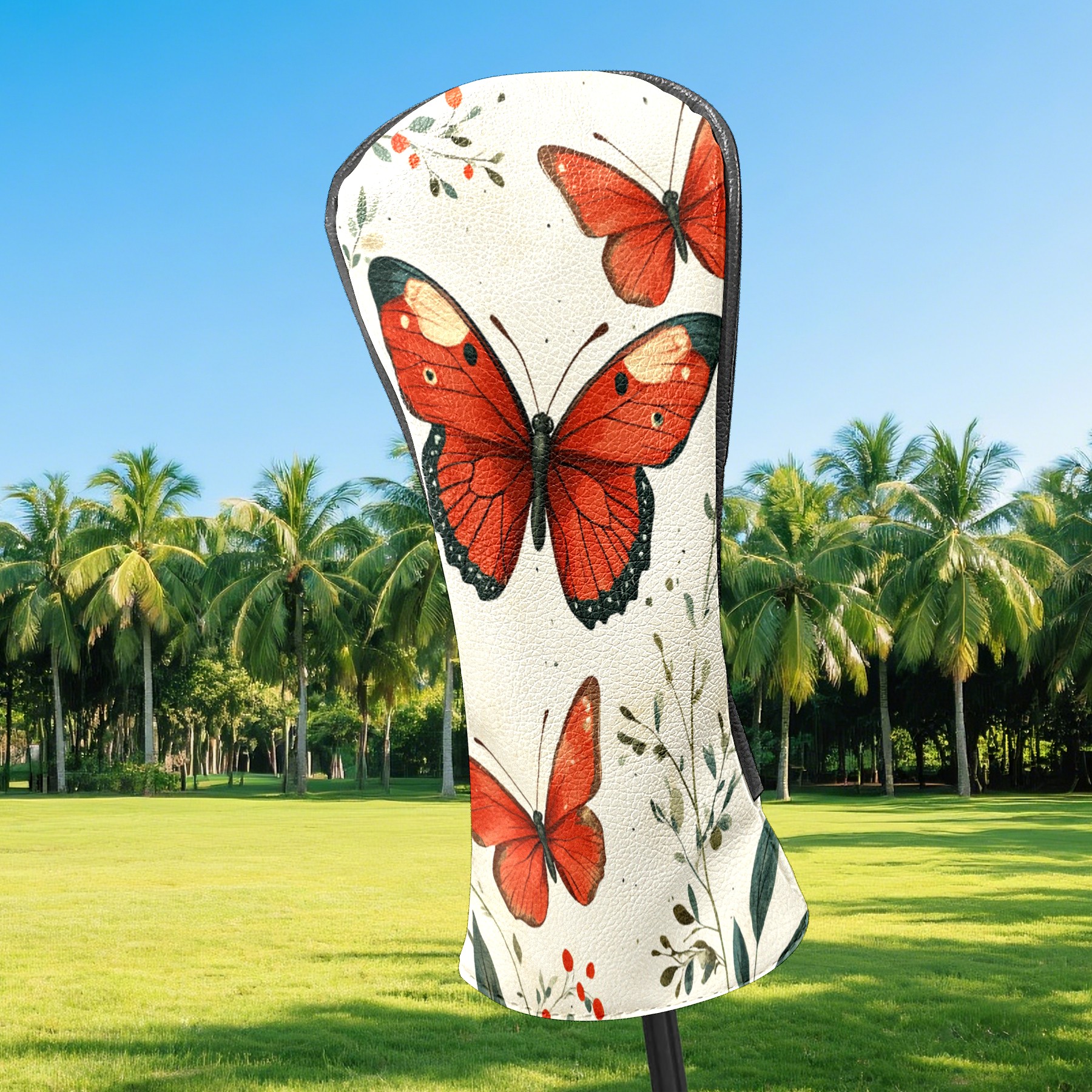Golf Club Head Cover, High Quality PU Leather Driver and Wood Club Head Cover with Anti-Scratch Lining, Universal Gift for Men and Women Red Butterfly Green Flower