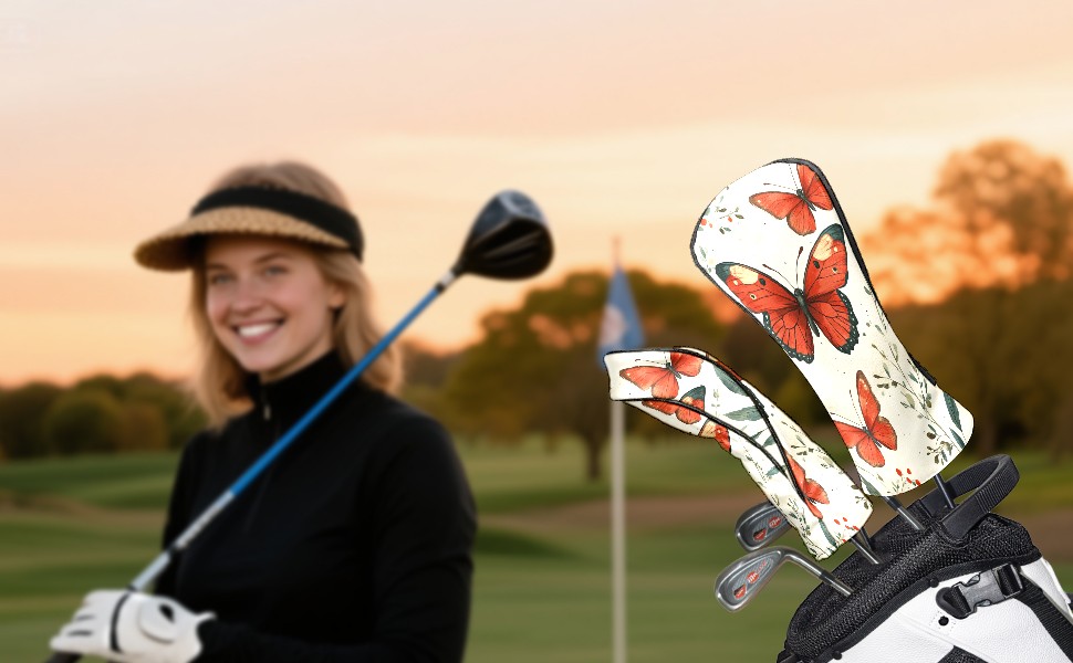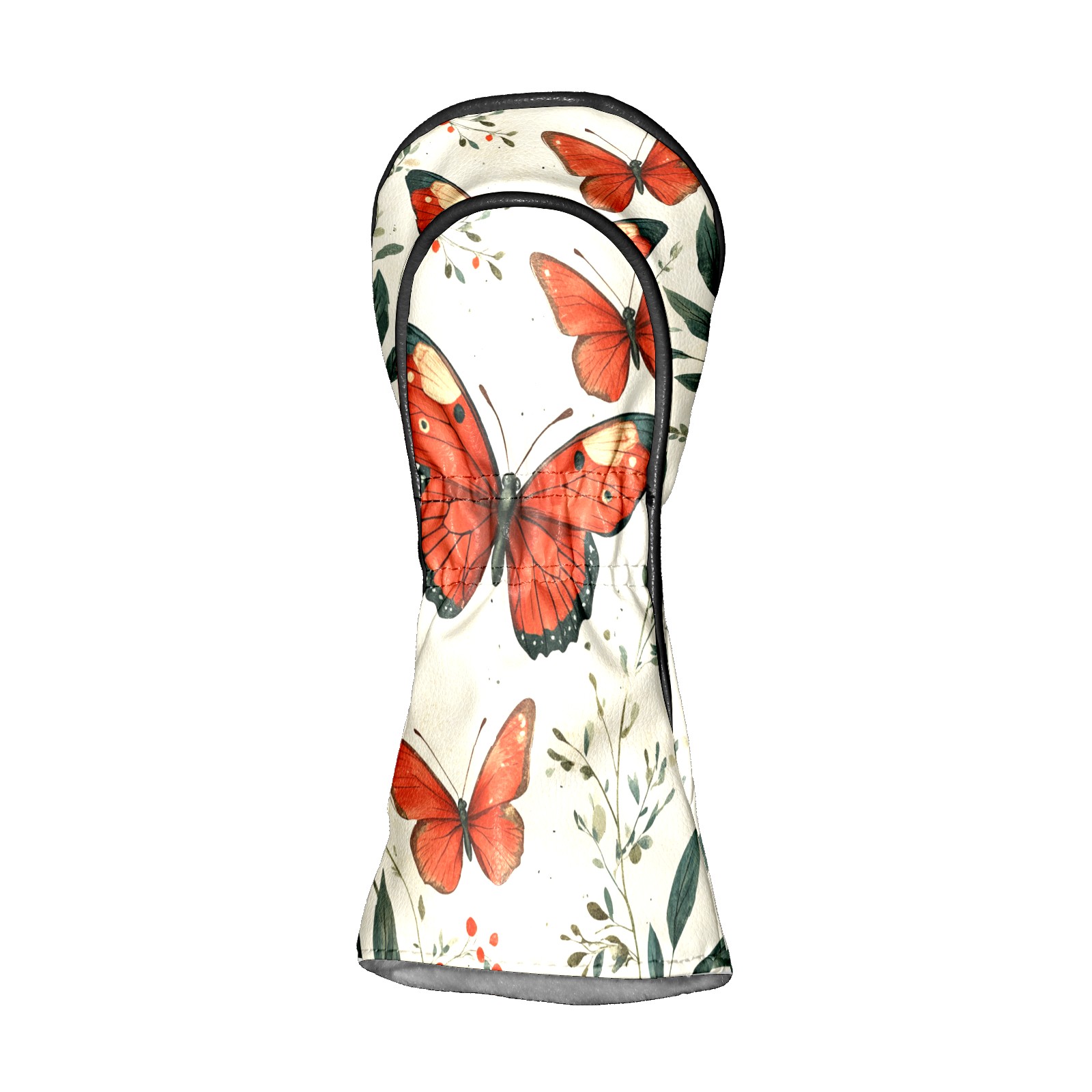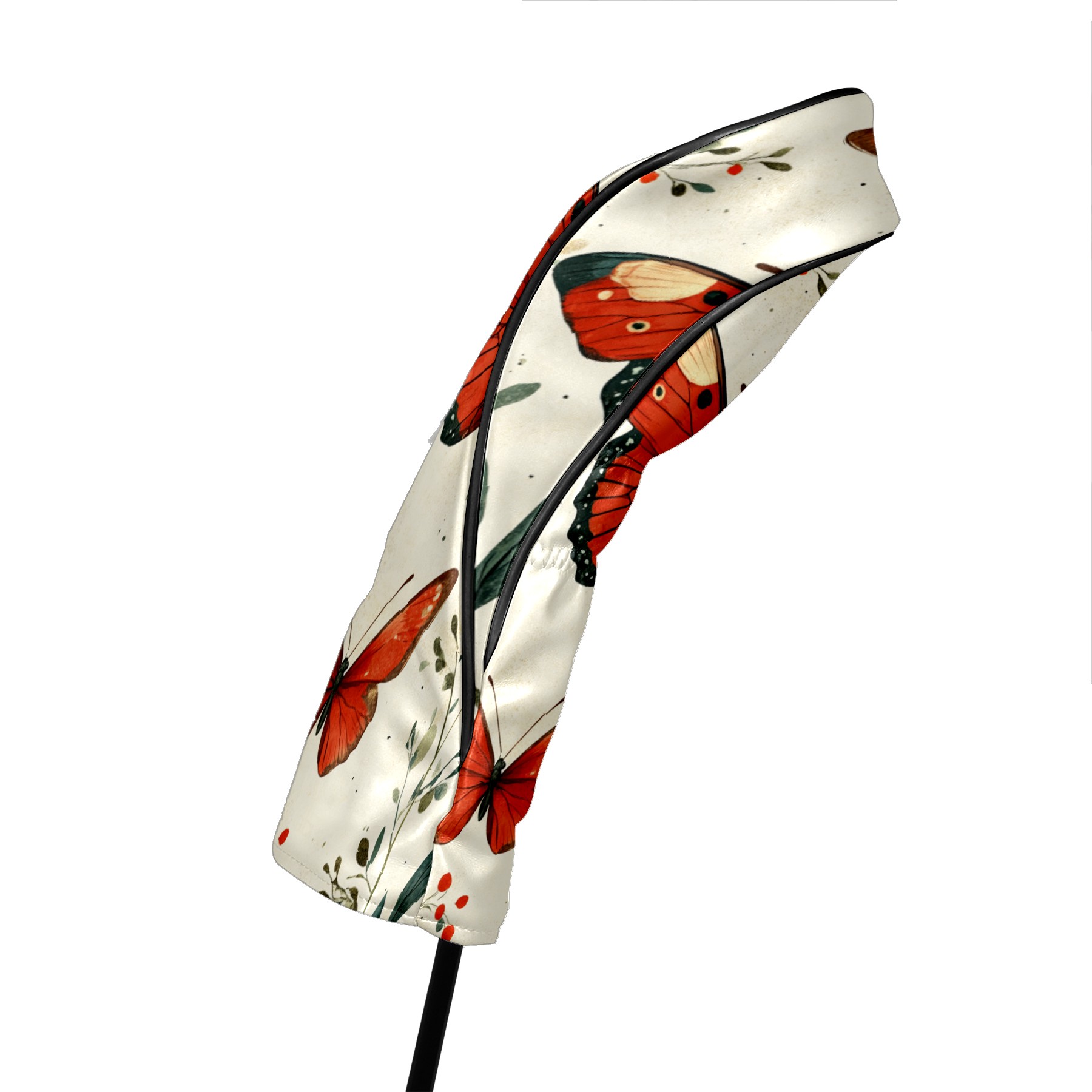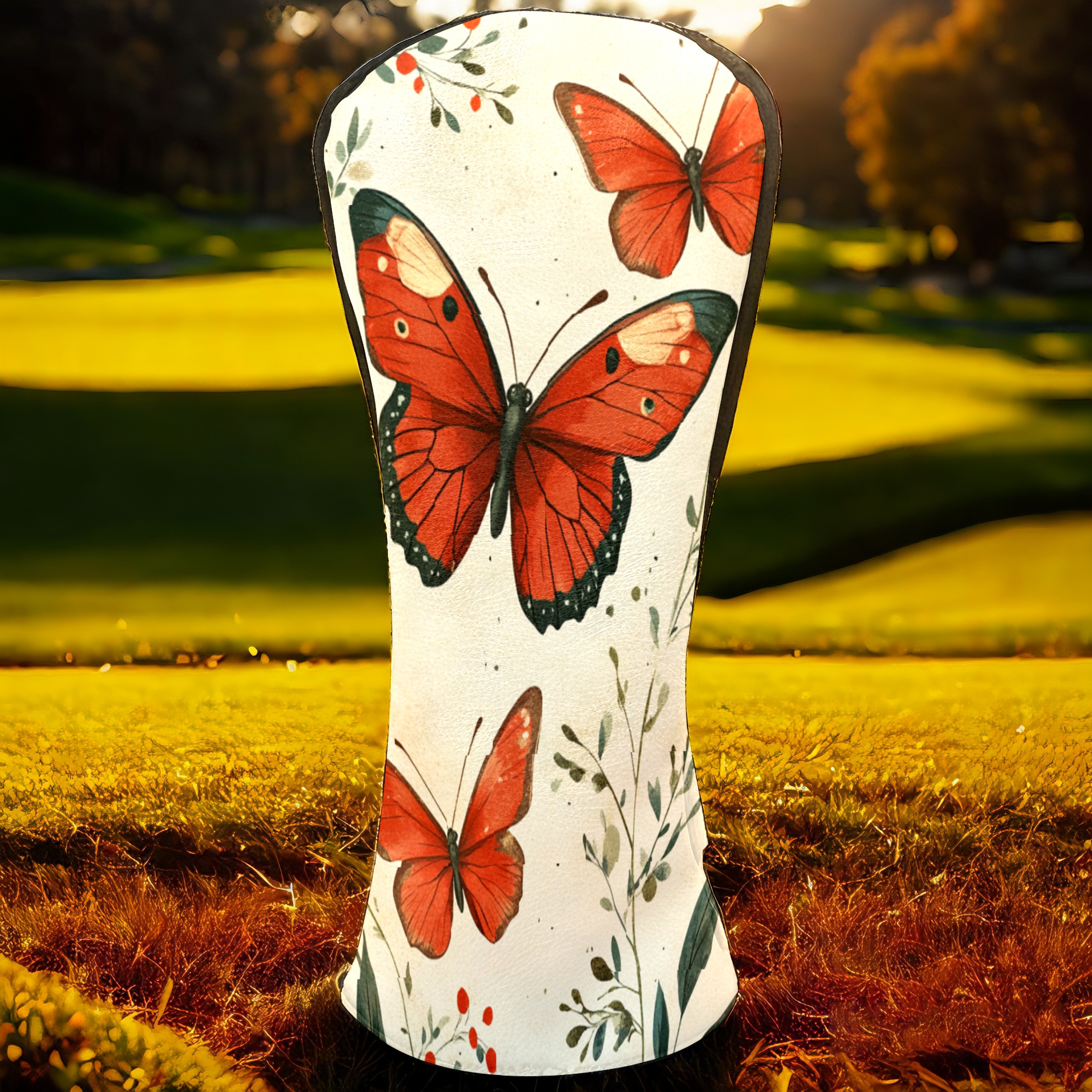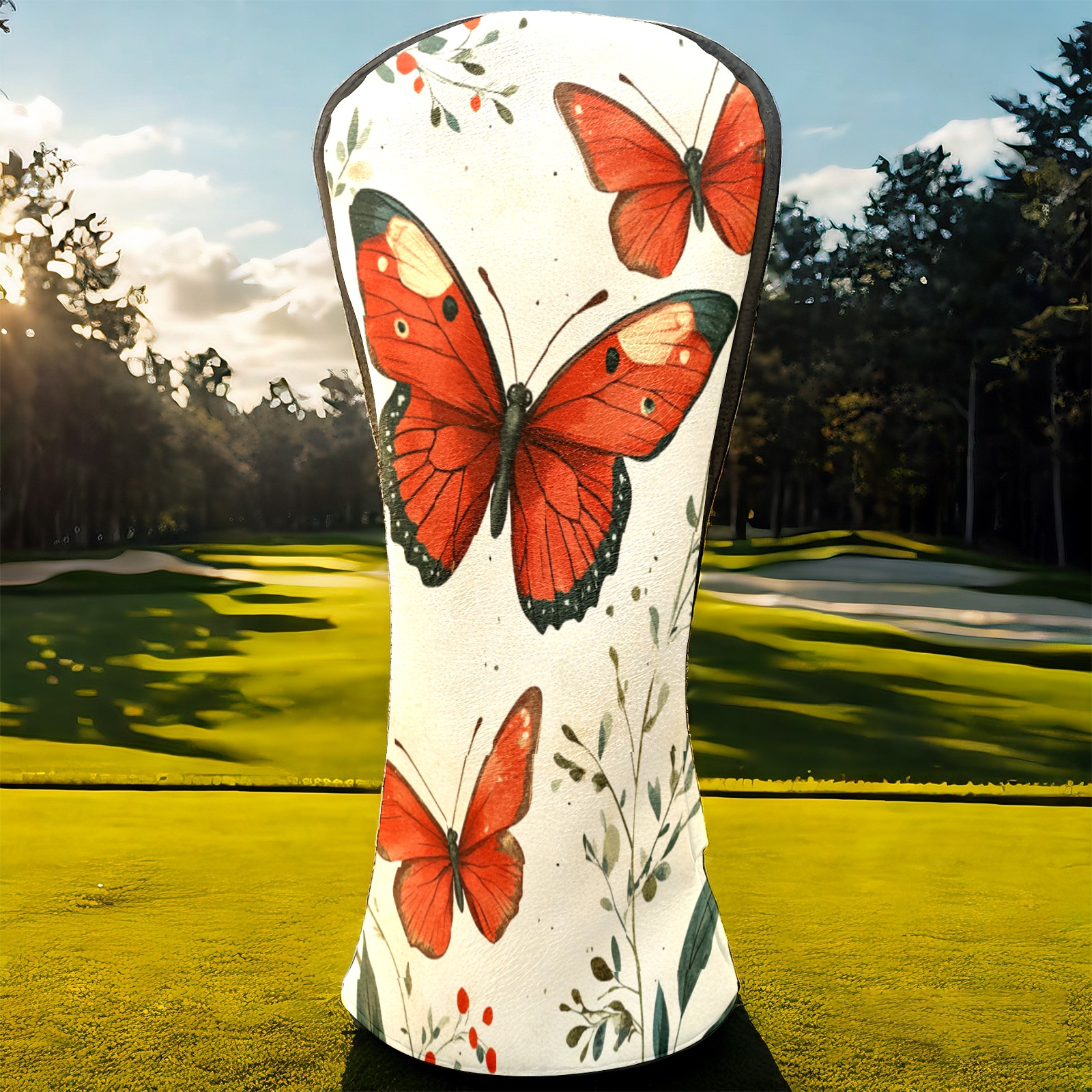 Golf Club Head Cover, High Quality PU Leather Driver and Wood Club Head Cover with Anti-Scratch Lining, Universal Gift for Men and Women Red Butterfly Green Flower