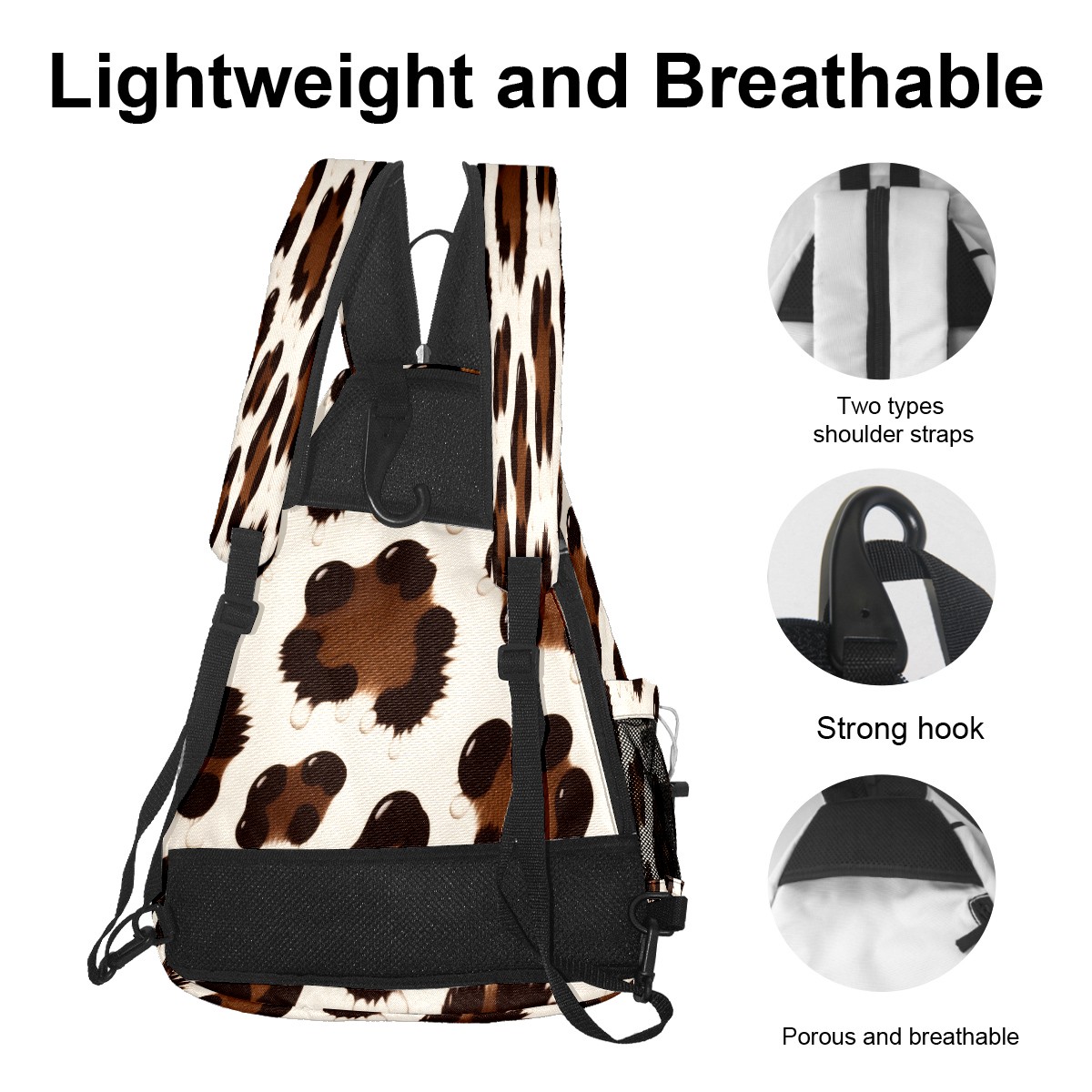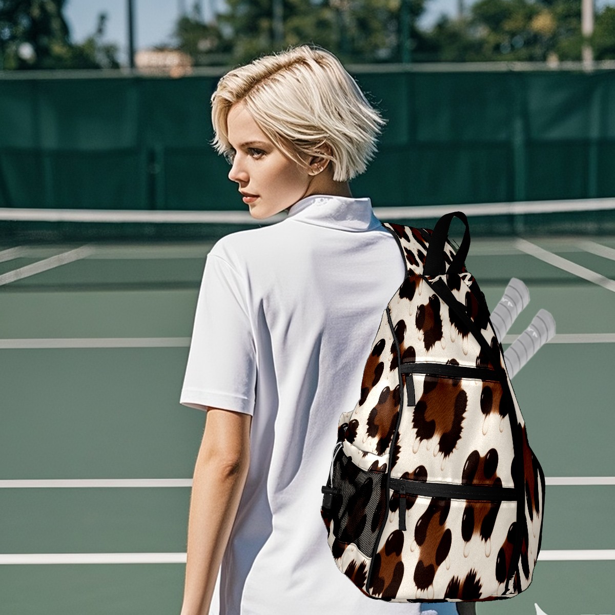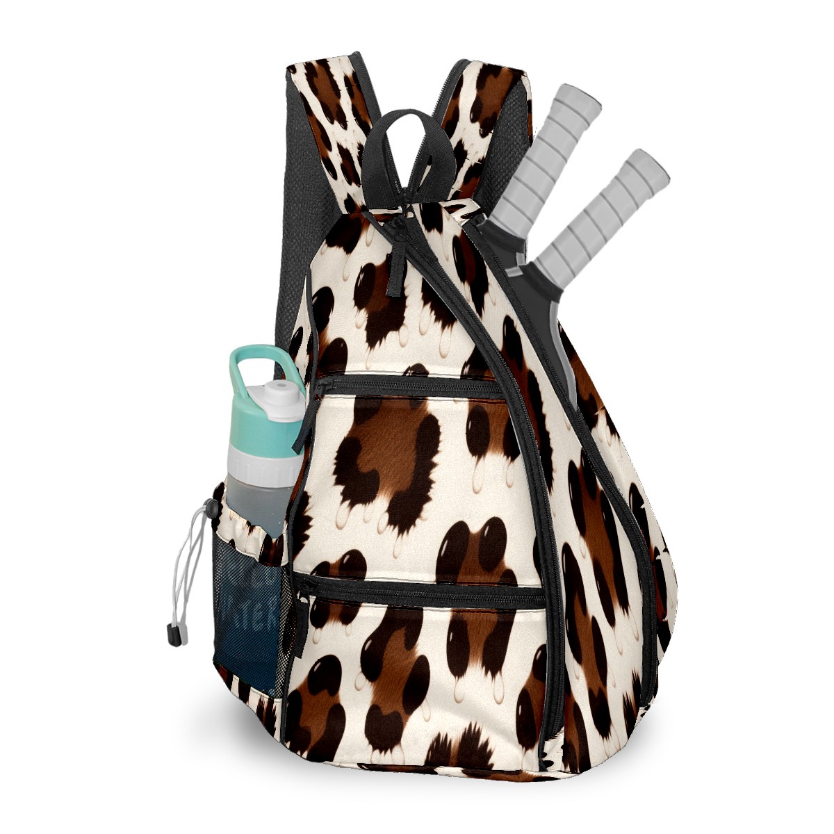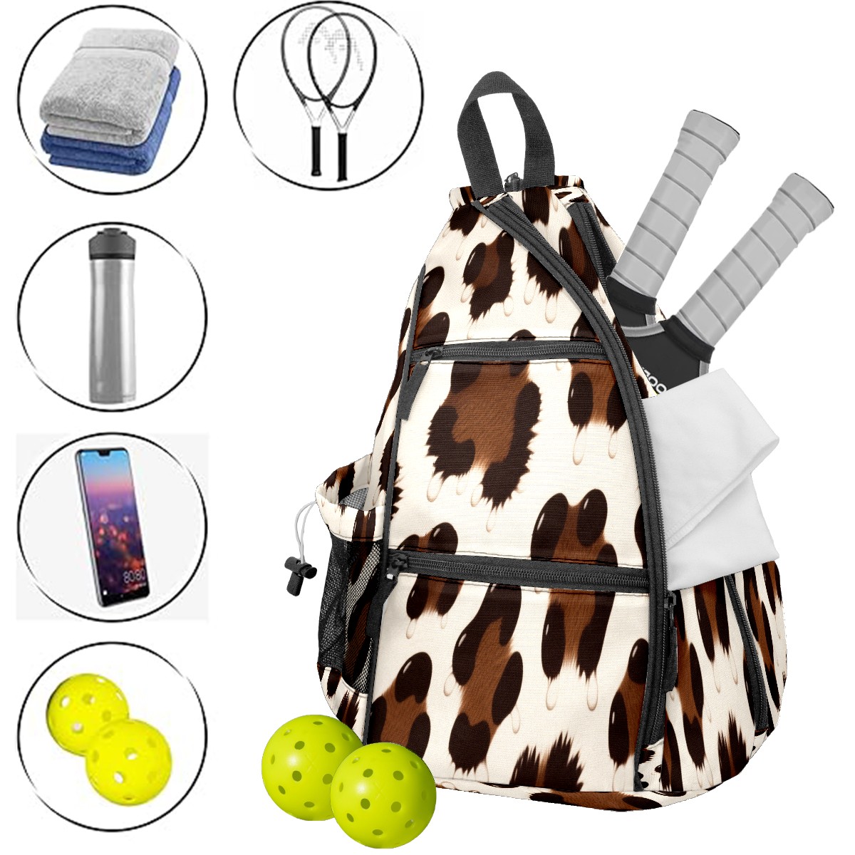 Pickleball Shoulder Bag for Men and Women - Fence Hook - Crossbody Backpack with Water Bottle Holder Brown Leopard Print