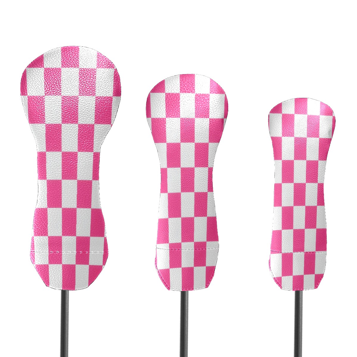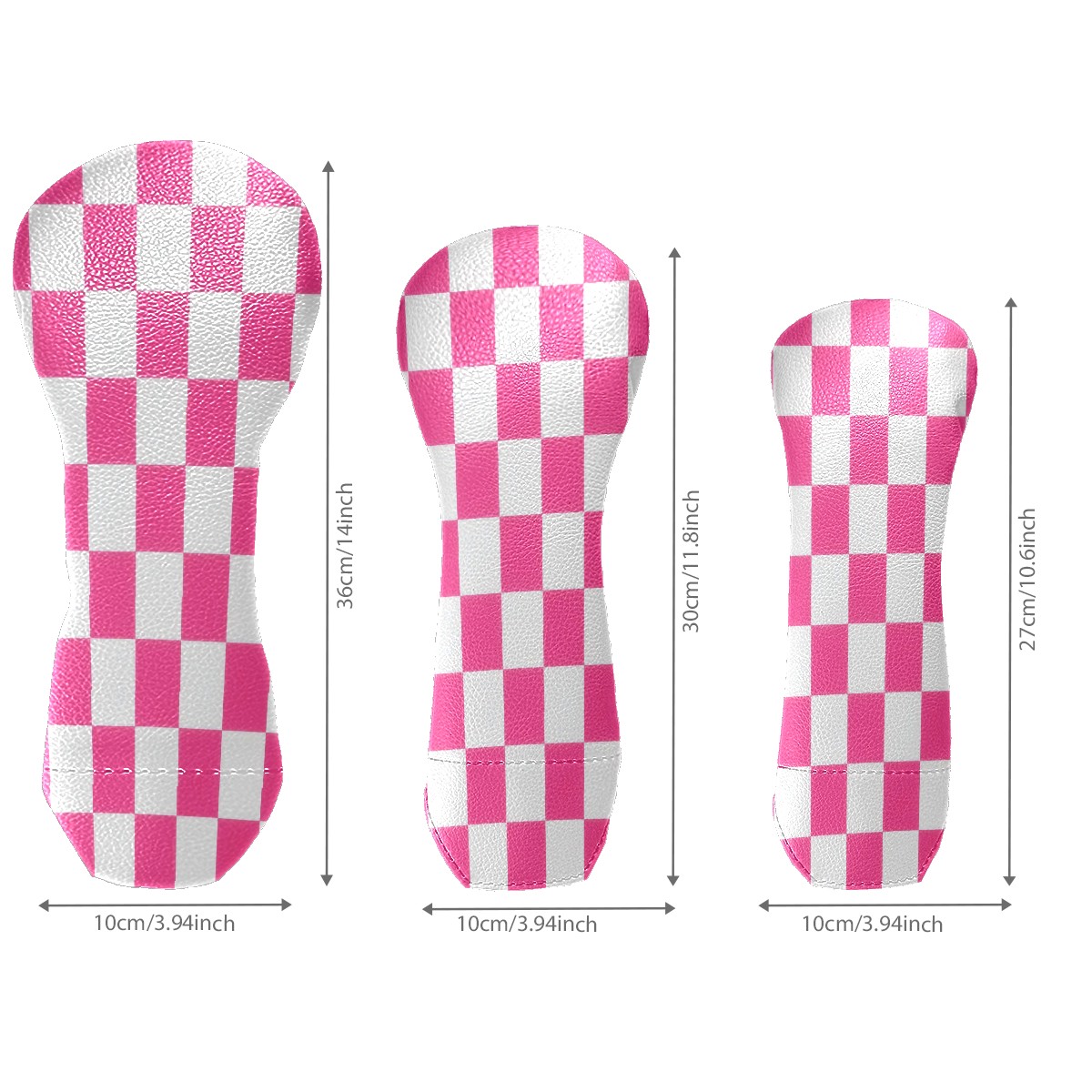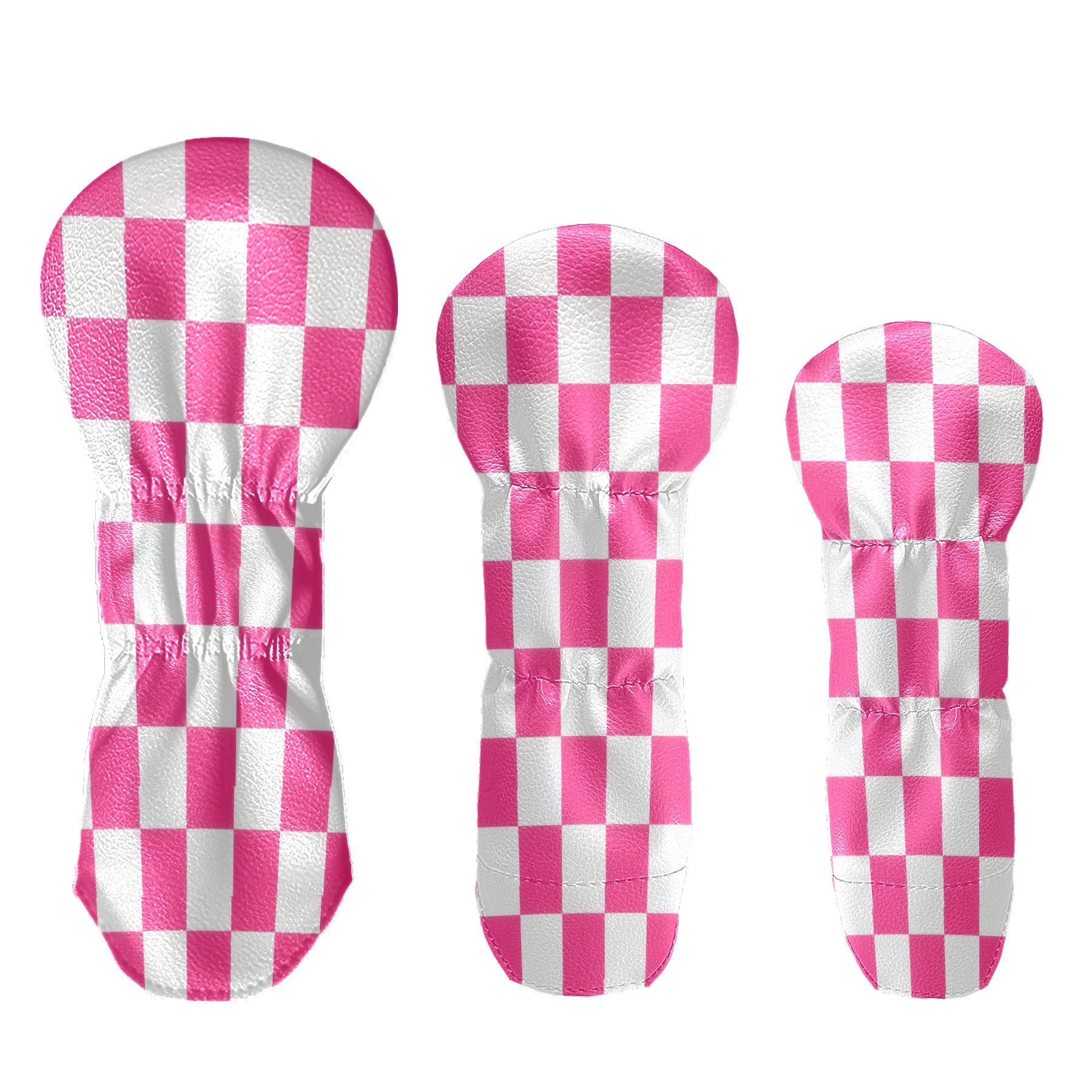 Golf Club Covers Driver Fairway Hybrid Headcover Premium Leather Golf Head Covers for Woods and Driver Hybrid, Golf Headcovers Set for Girls Women Men (Pink Checker (1))