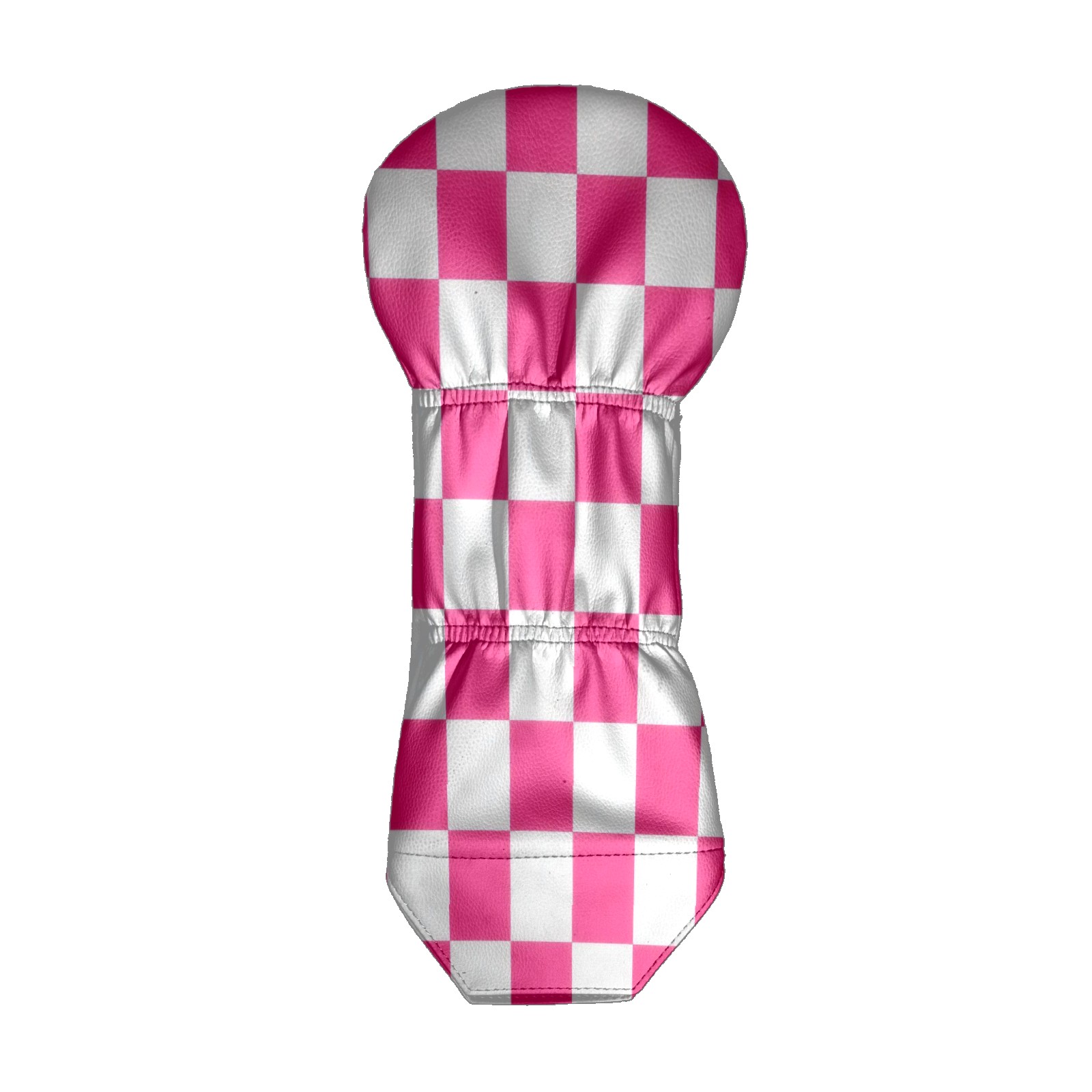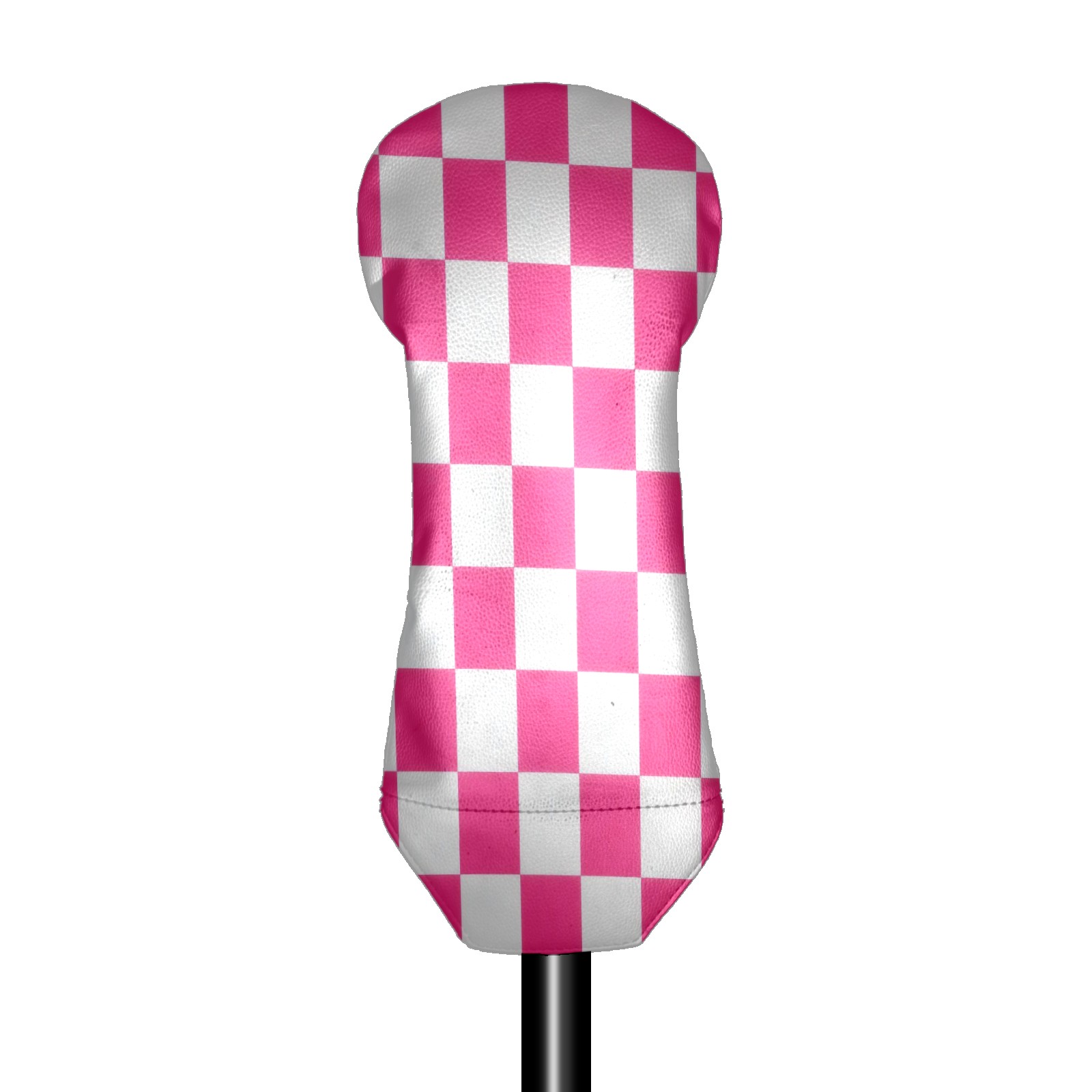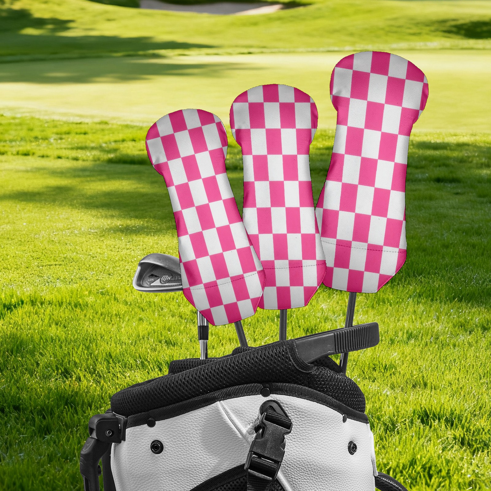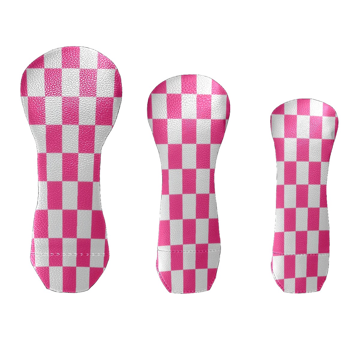 Golf Club Covers Driver Fairway Hybrid Headcover Premium Leather Golf Head Covers for Woods and Driver Hybrid, Golf Headcovers Set for Girls Women Men (Pink Checker (1))