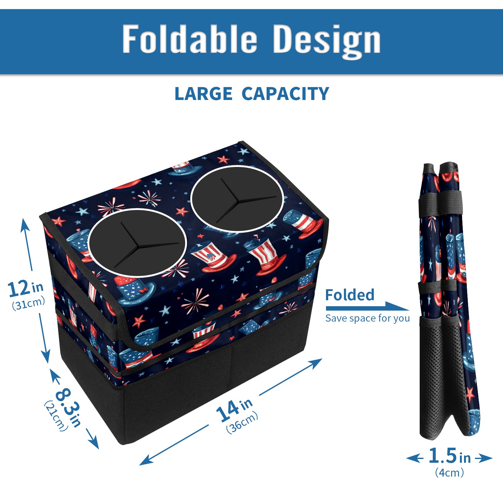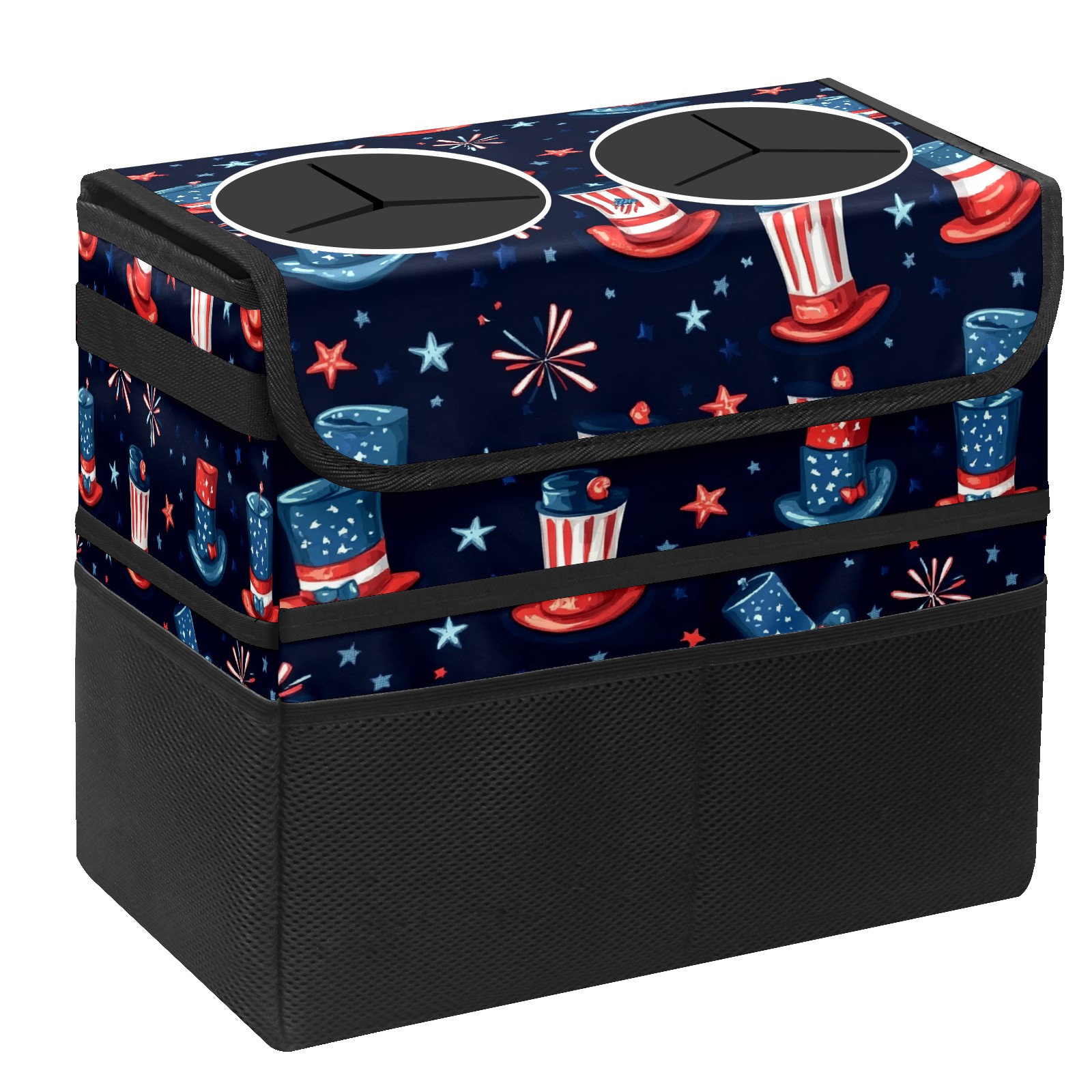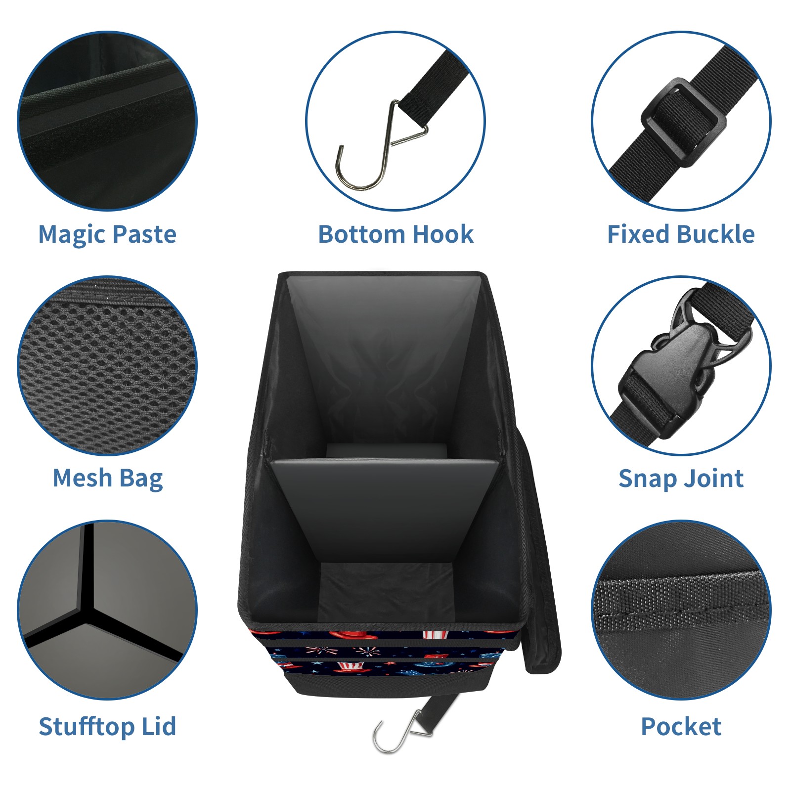 Car Trash Can with Lid, Portable Hanging Automotive Garbage Bin for Vehicles, Leakproof Waste Bag Container for SUV Truck Van Interior Auto Travel Road Trips(American Flag Top Hats)