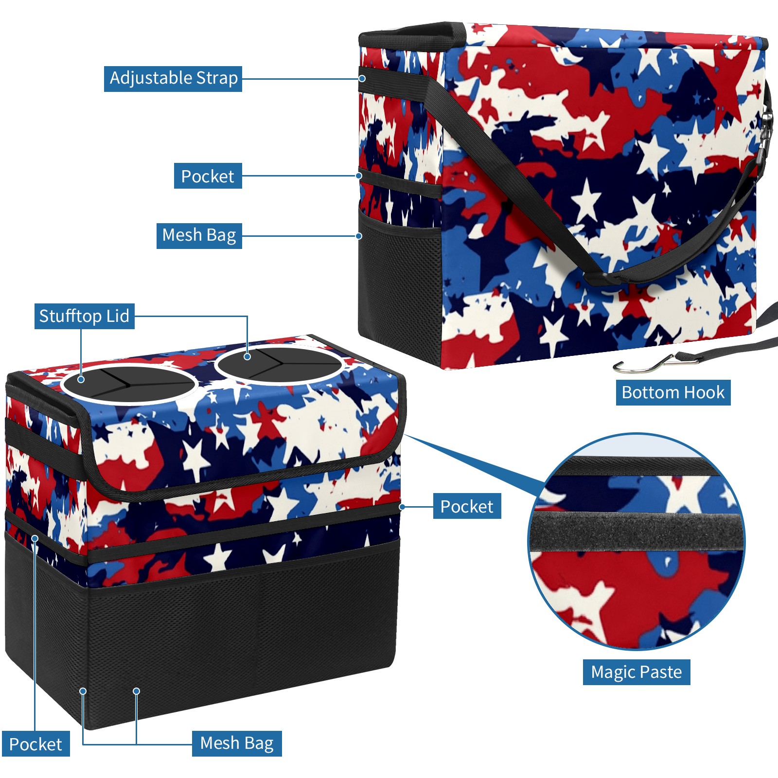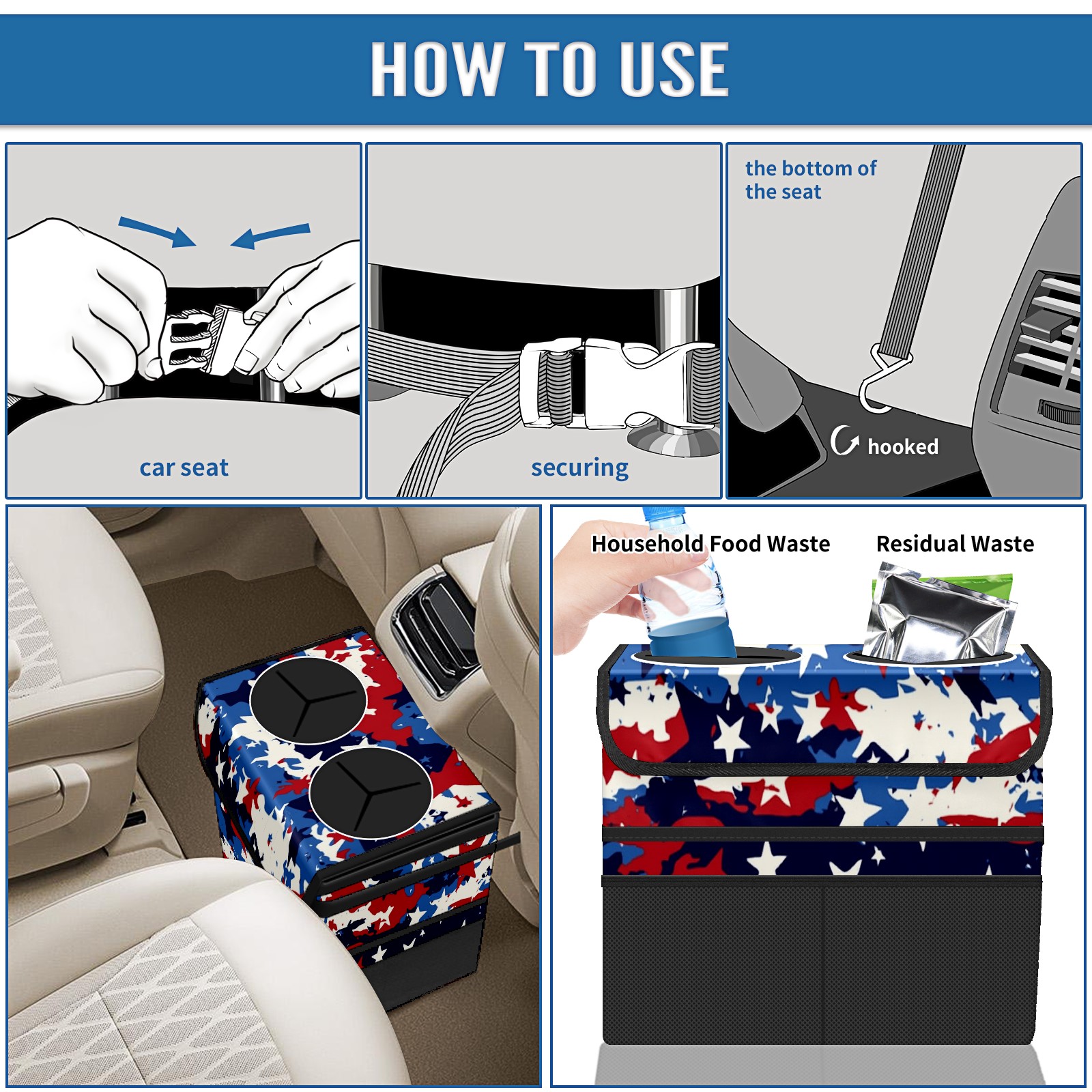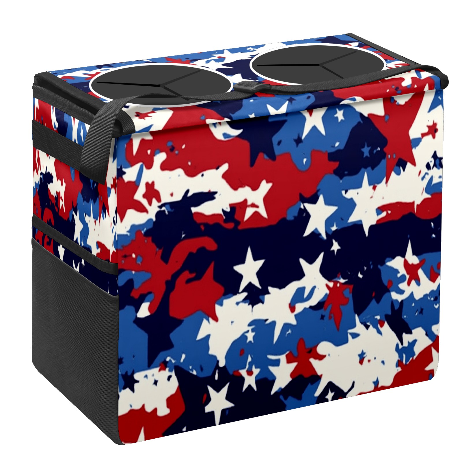 Car Trash Can with Lid, Portable Hanging Automotive Garbage Bin for Vehicles, Leakproof Waste Bag Container for SUV Truck Van Interior Auto Travel Road Trips(Red White And Blue Camouflage)