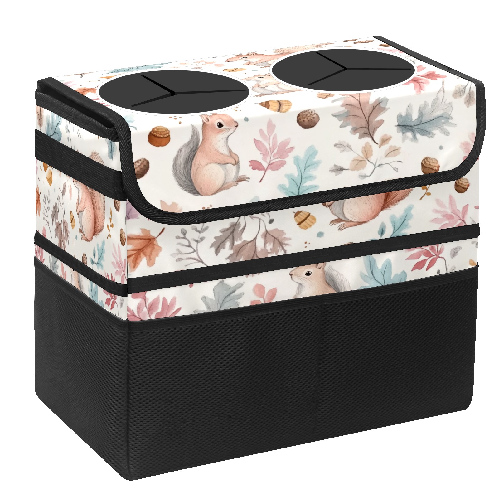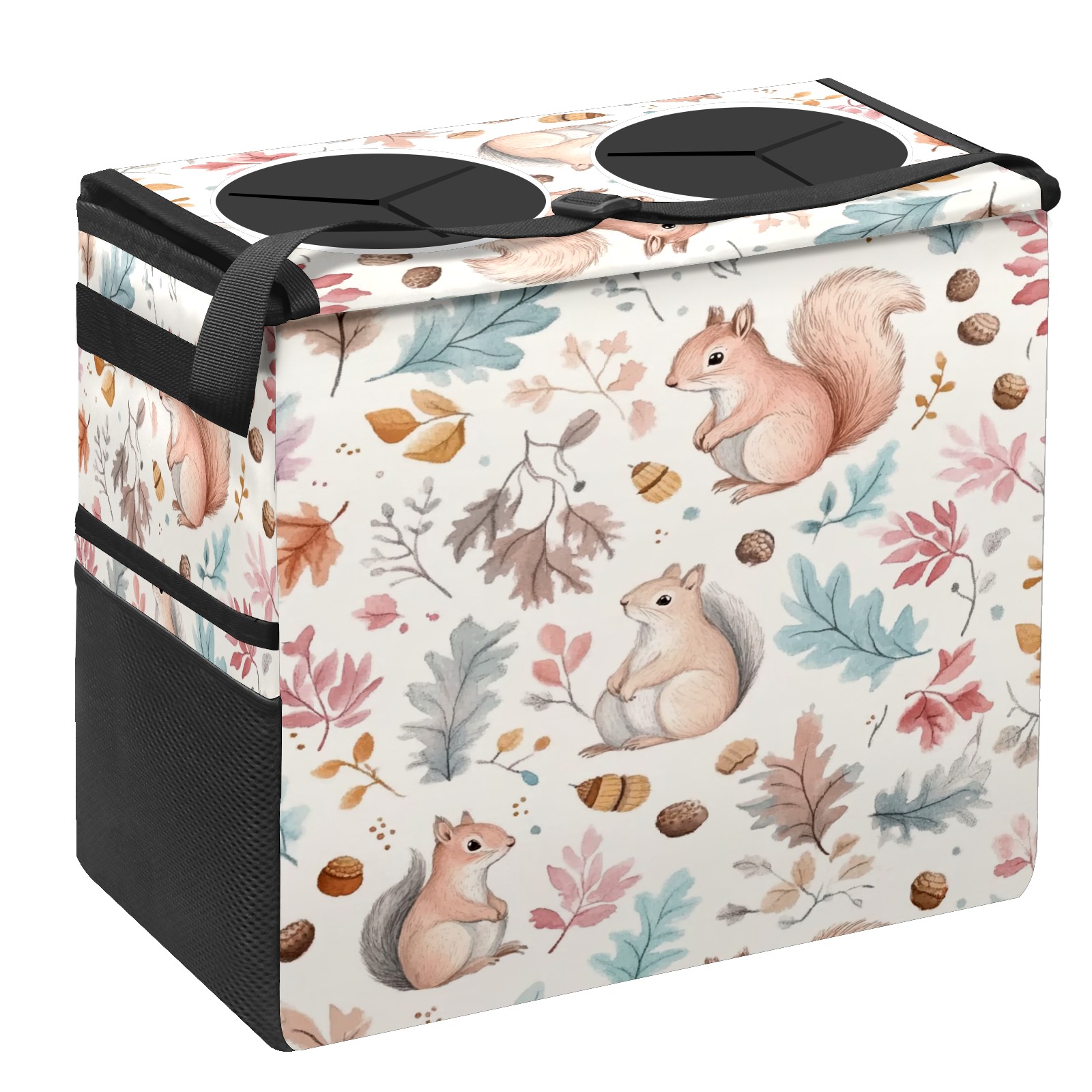 Car Trash Can with Lid, Portable Hanging Automotive Garbage Bin for Vehicles, Leakproof Waste Bag Container for SUV Truck Van Interior Auto Travel Road Trips(Watercolor Squirrels)