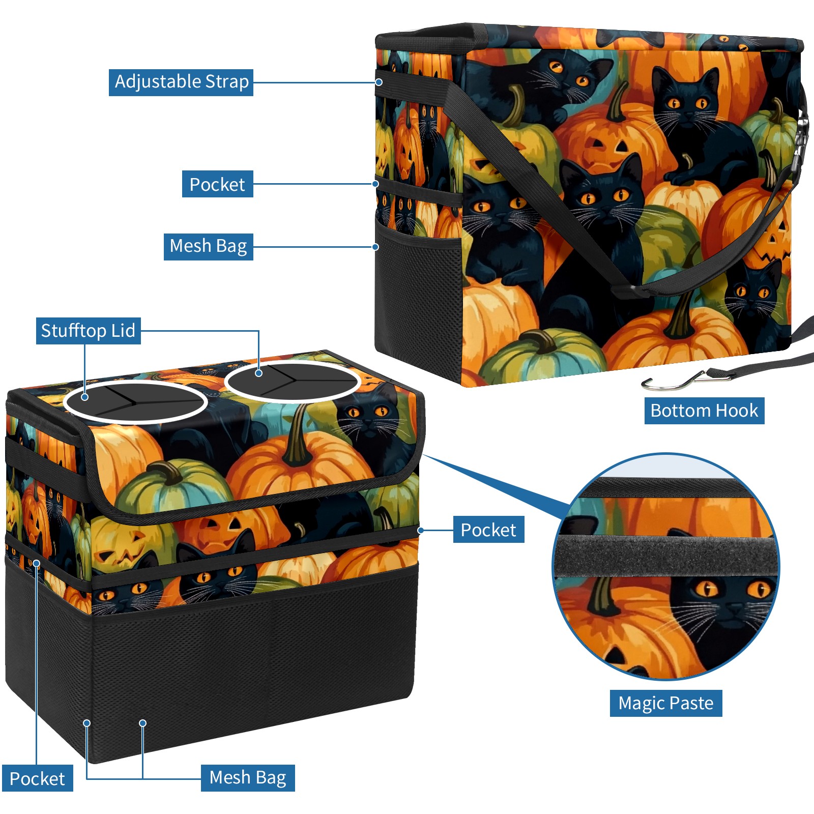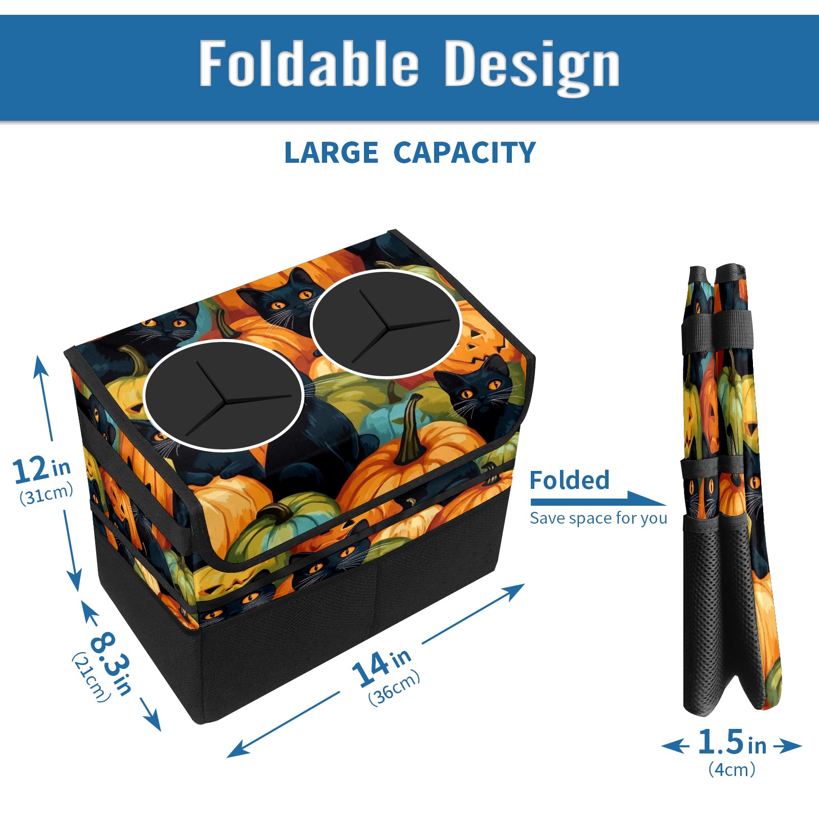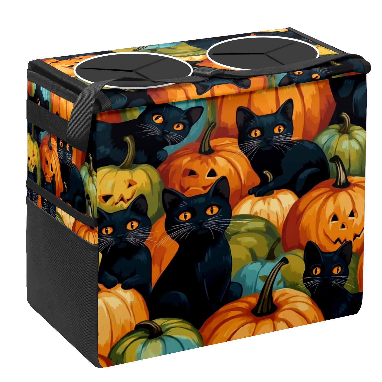Car Trash Can with Lid, Portable Hanging Automotive Garbage Bin for Vehicles, Leakproof Waste Bag Container for SUV Truck Van Interior Auto Travel Road Trips(Pumpkins And Cats)