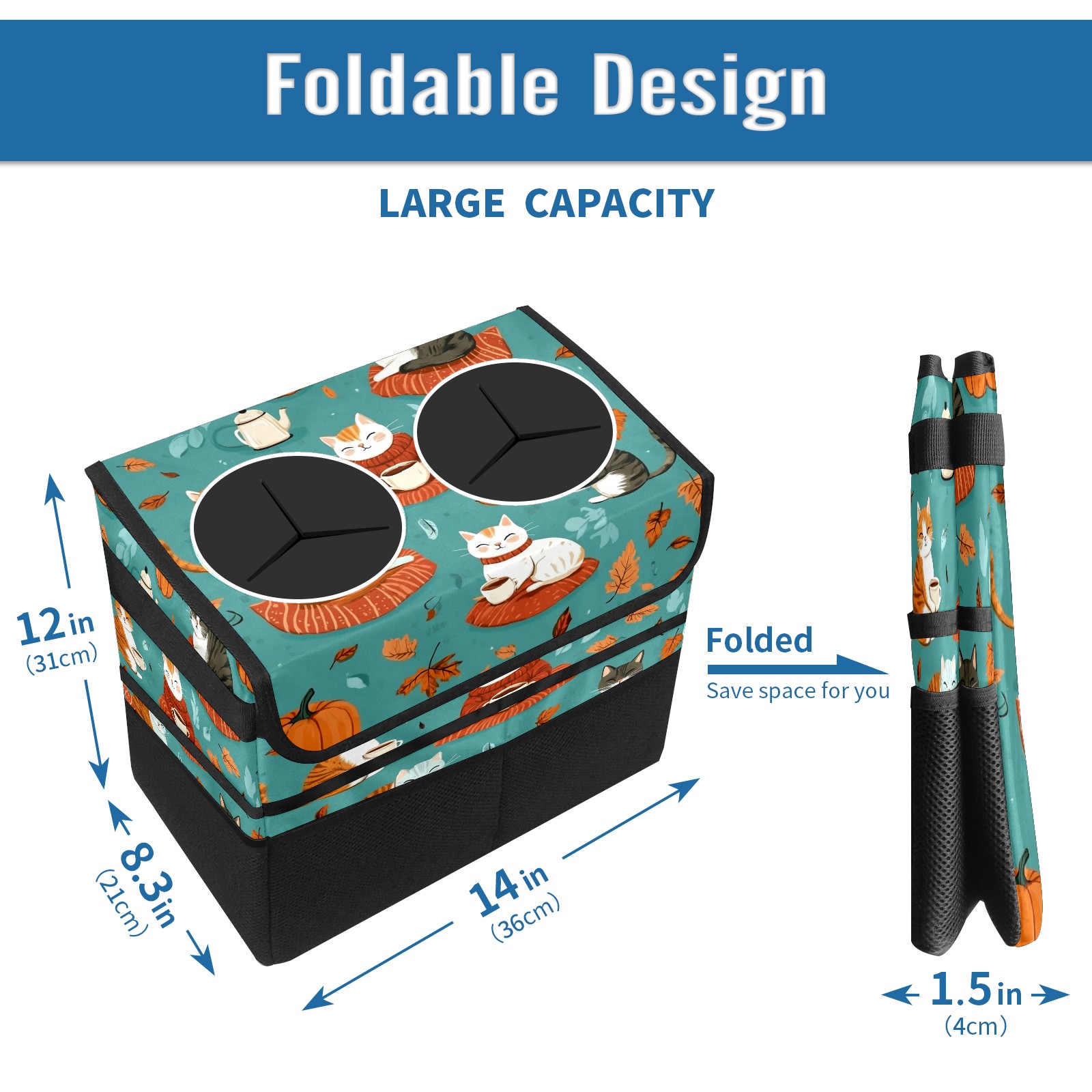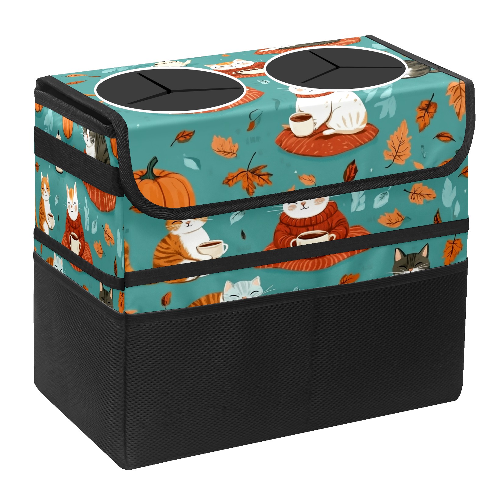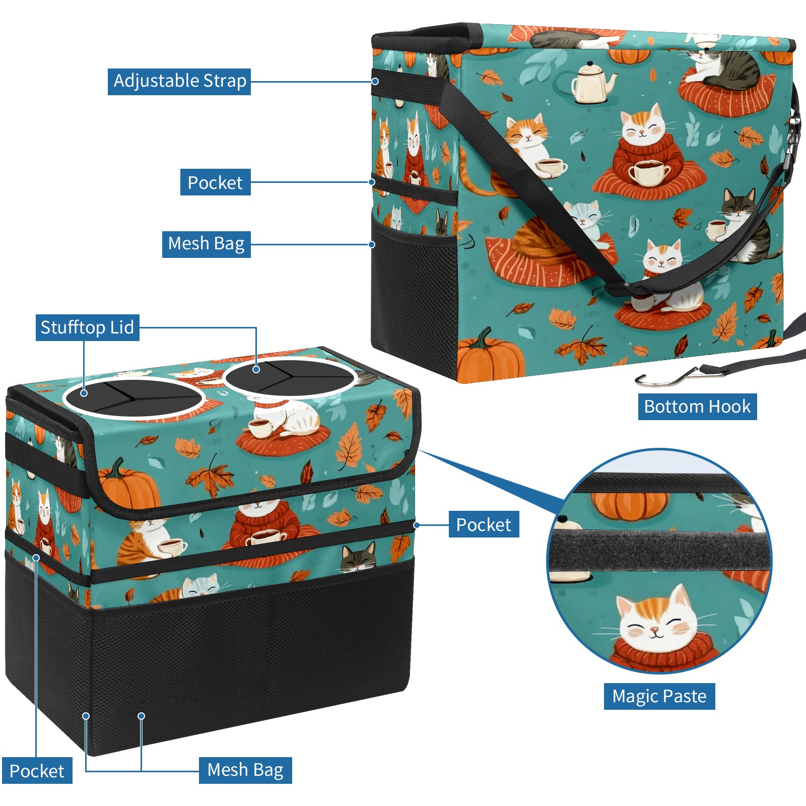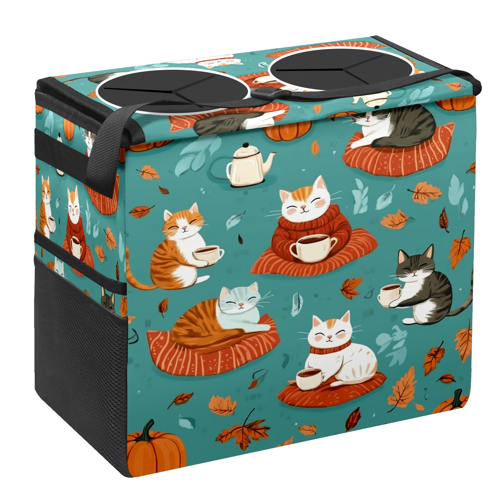 Car Trash Can with Lid, Portable Hanging Automotive Garbage Bin for Vehicles, Leakproof Waste Bag Container for SUV Truck Van Interior Auto Travel Road Trips(Playful Cats)