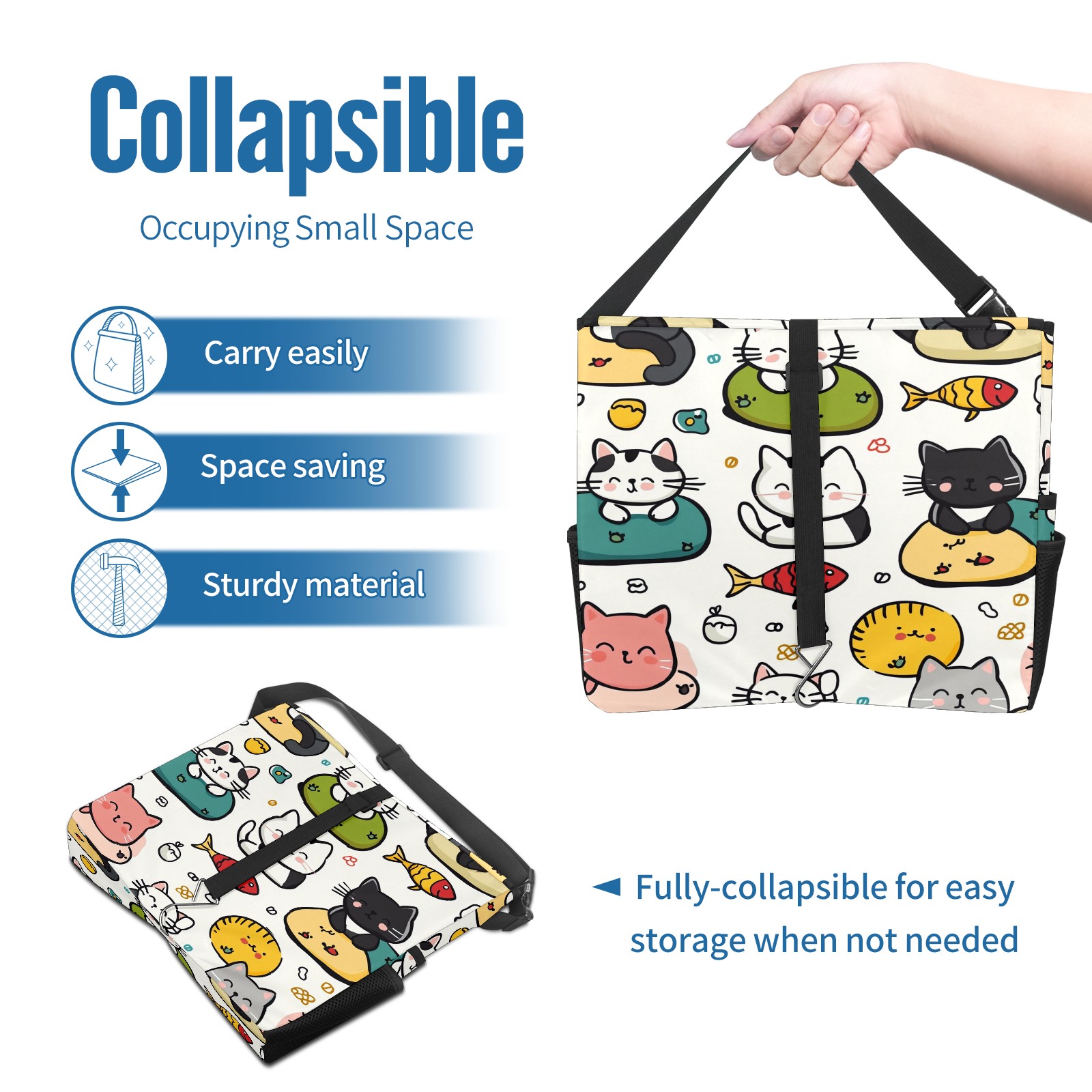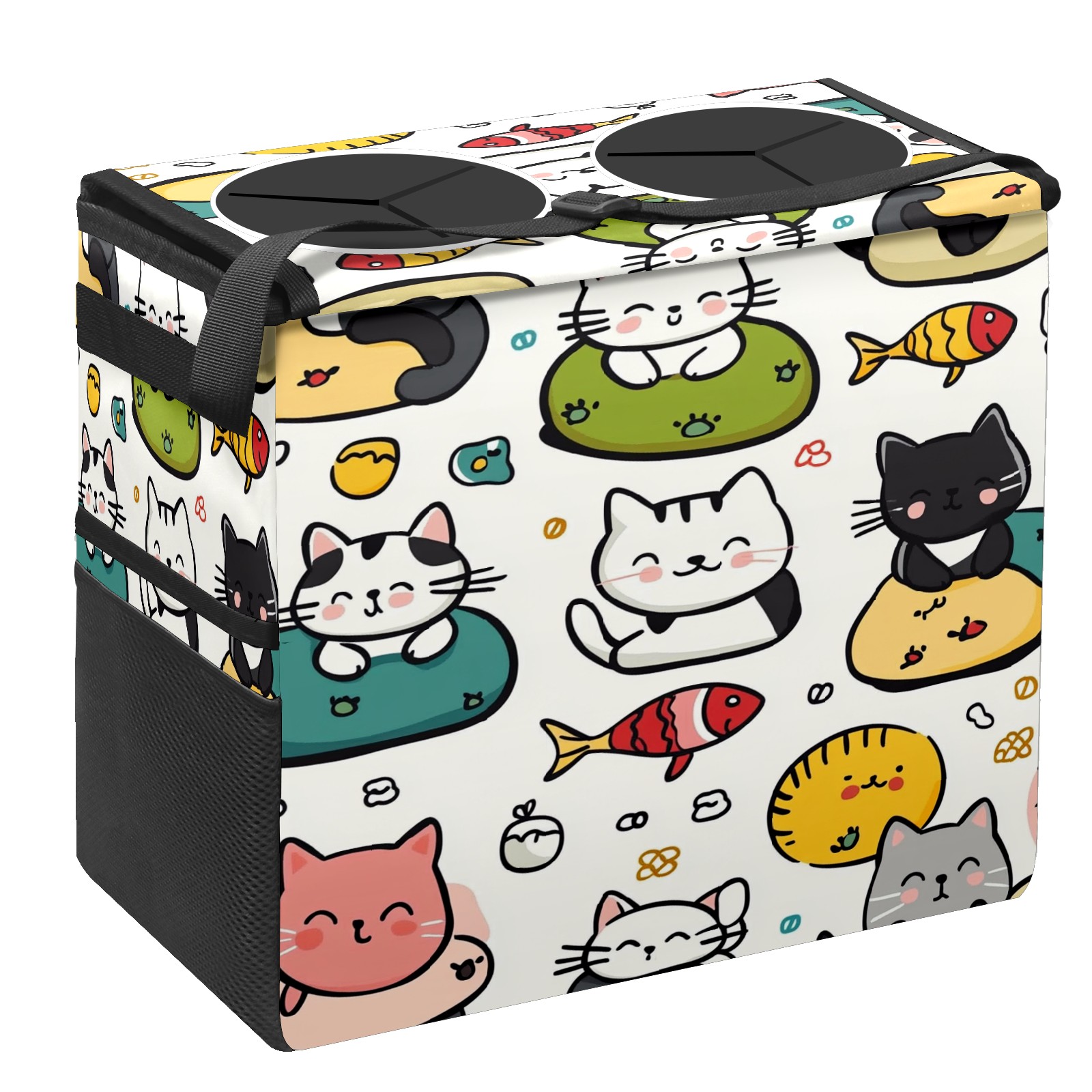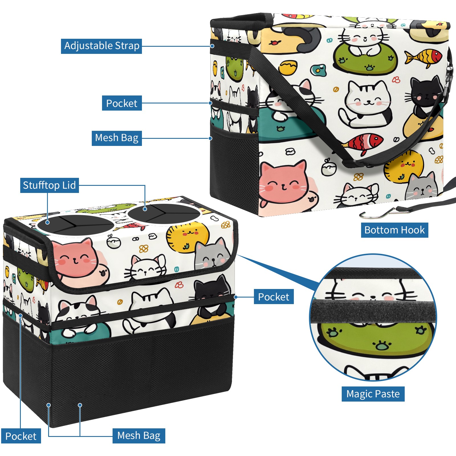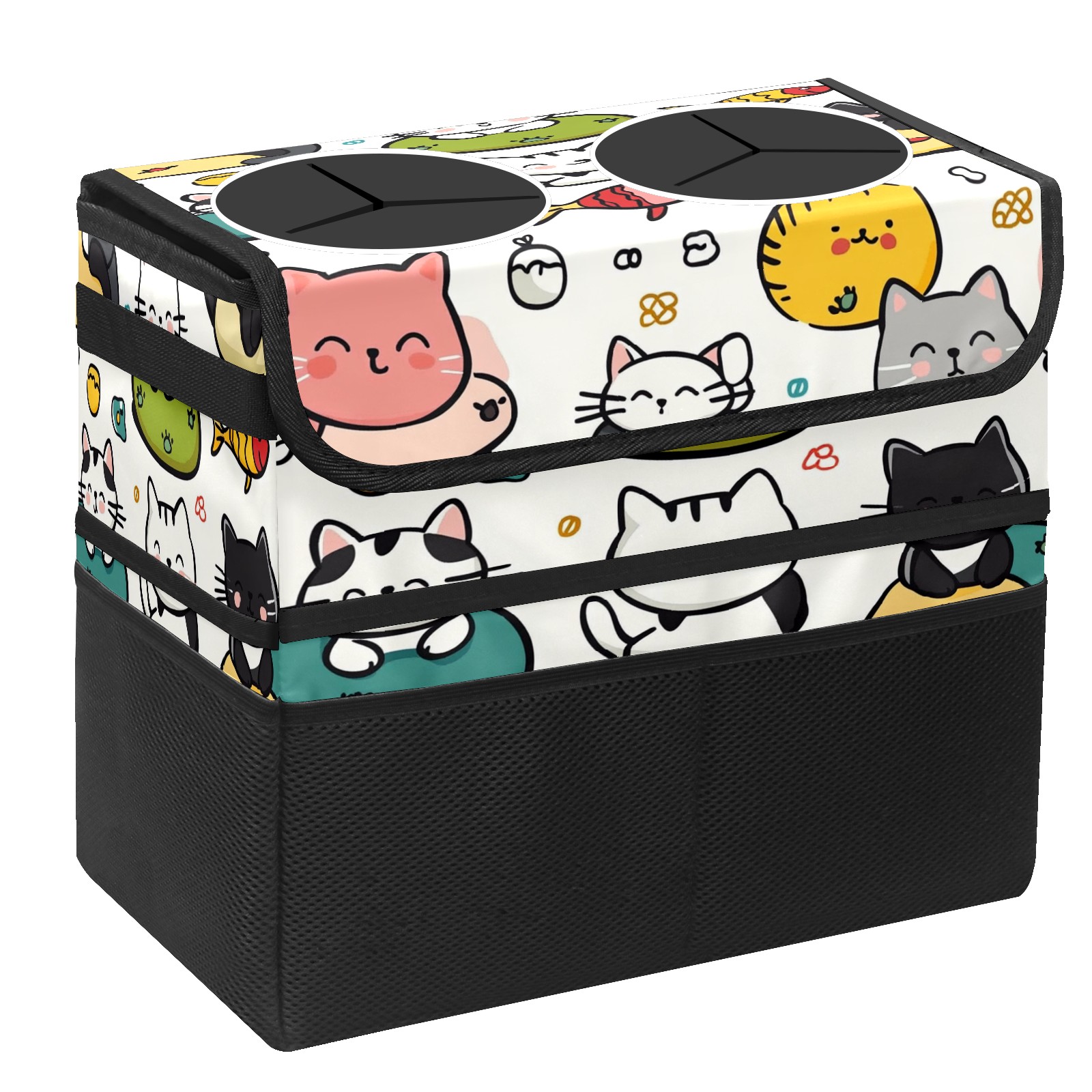 Car Trash Can with Lid, Portable Hanging Automotive Garbage Bin for Vehicles, Leakproof Waste Bag Container for SUV Truck Van Interior Auto Travel Road Trips(Cute Cats Playing)