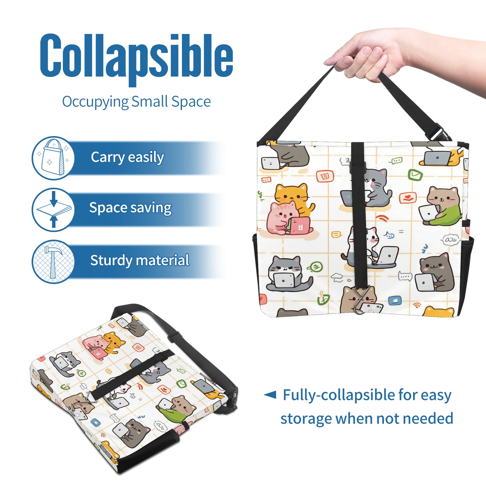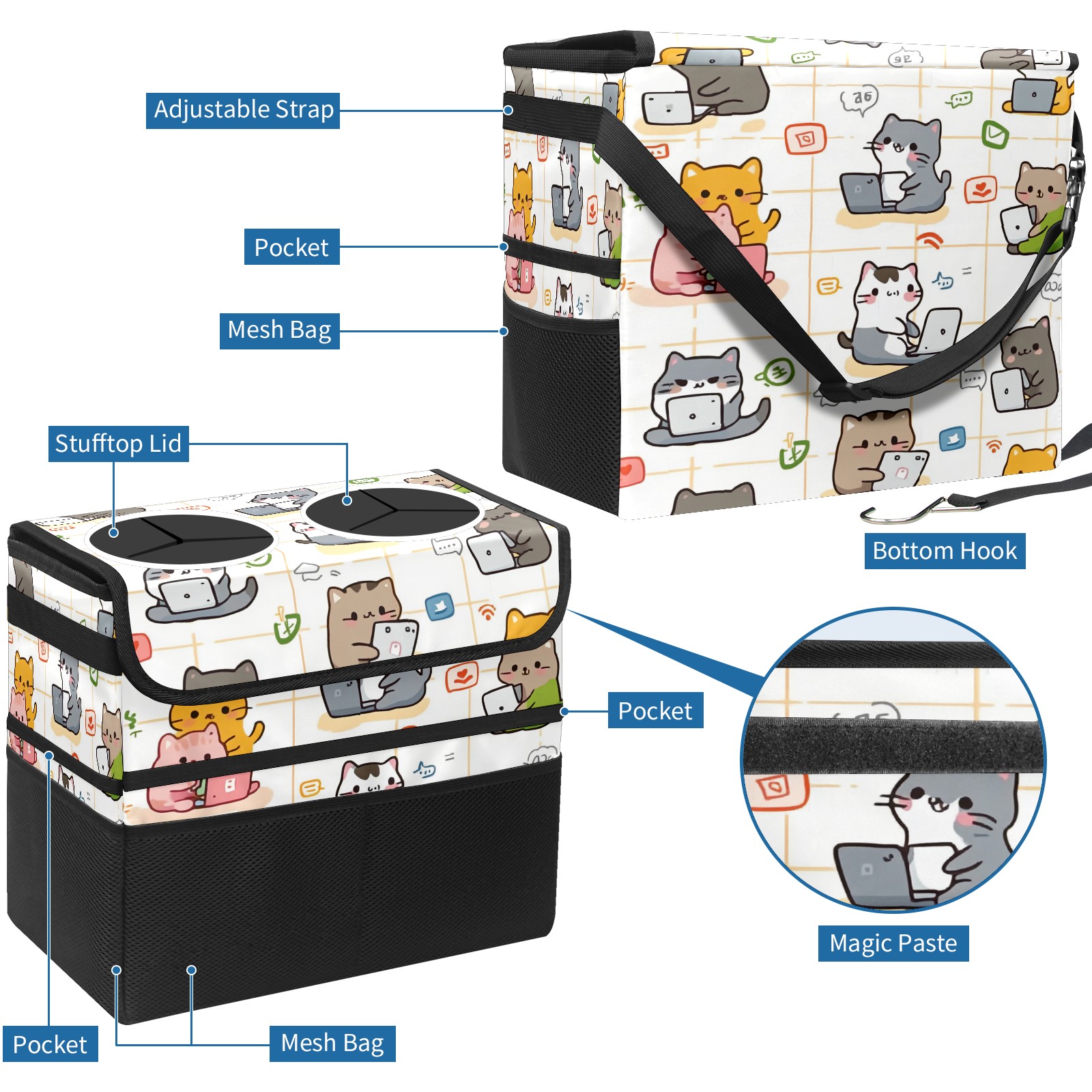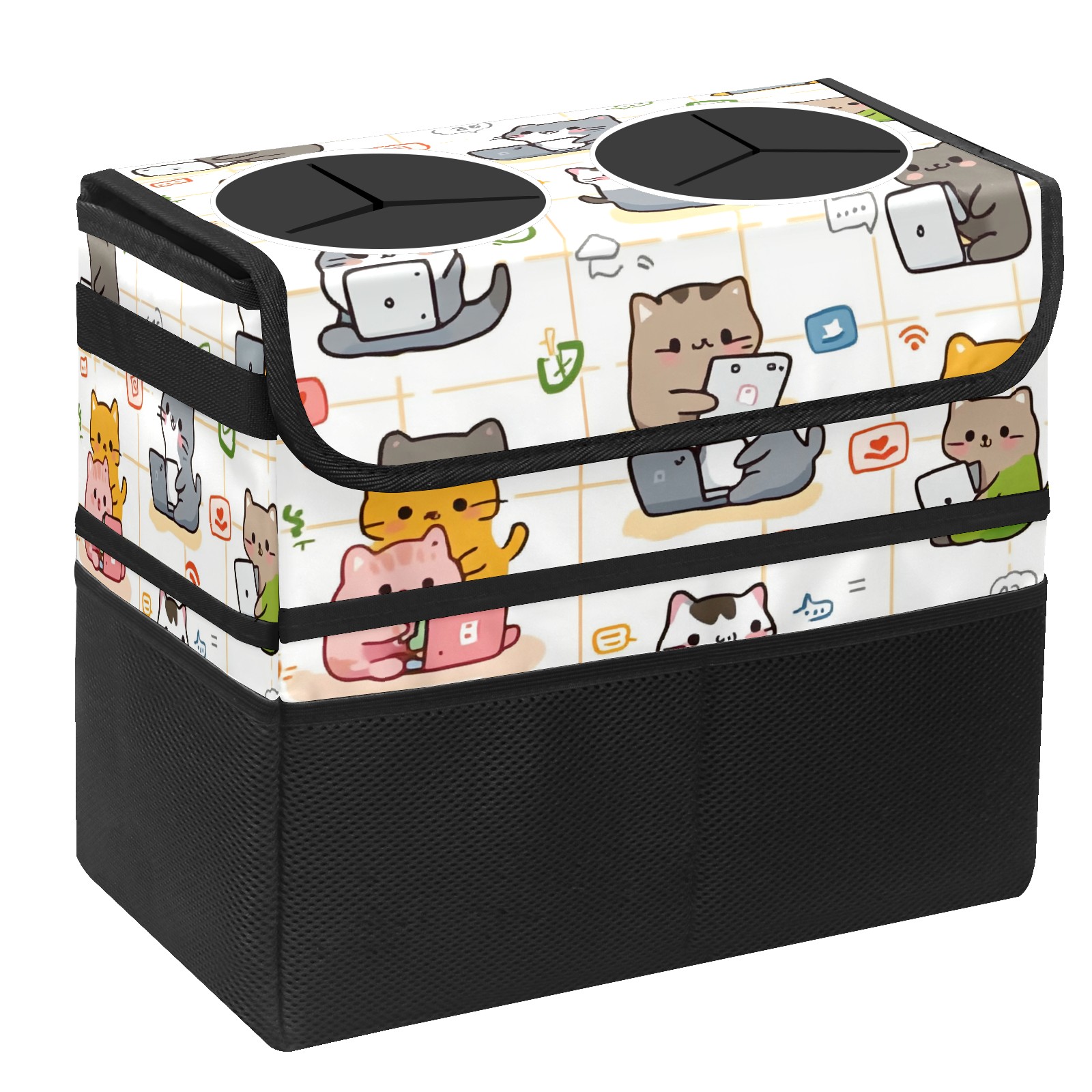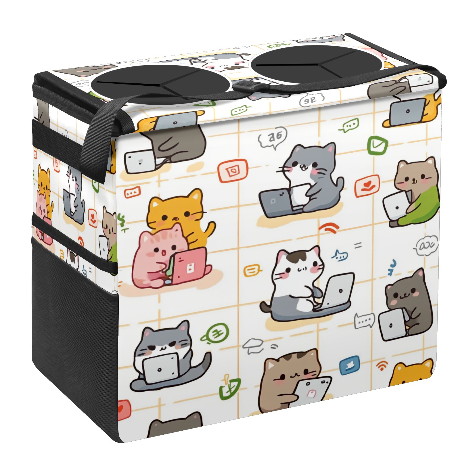 Car Trash Can with Lid, Portable Hanging Automotive Garbage Bin for Vehicles, Leakproof Waste Bag Container for SUV Truck Van Interior Auto Travel Road Trips(Cats Working On Laptops)