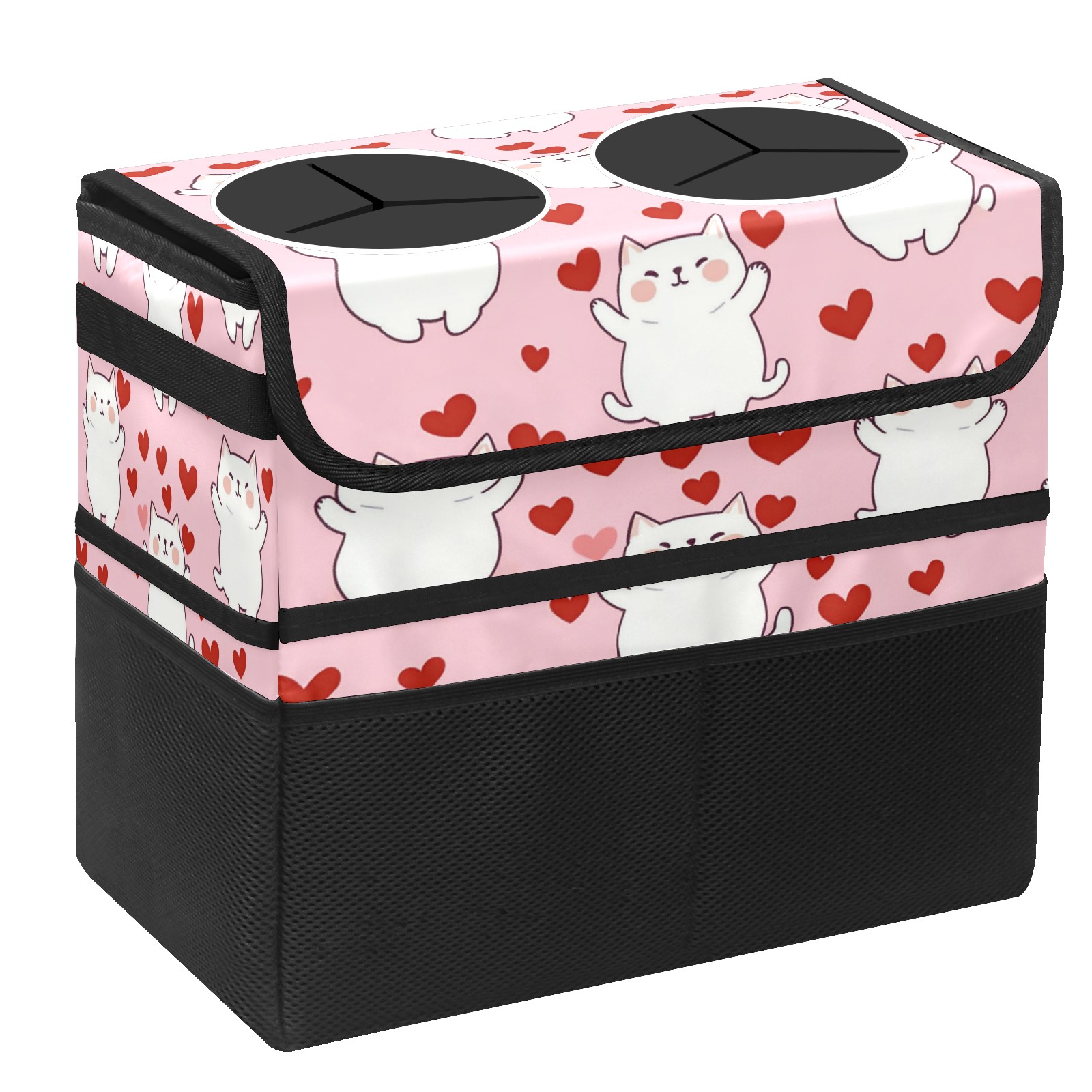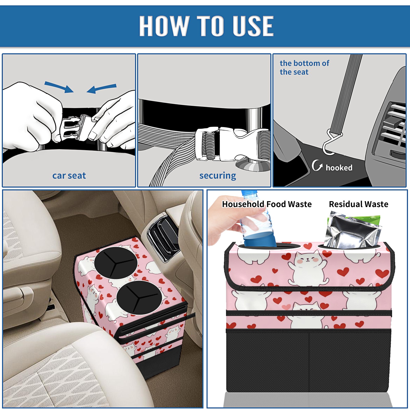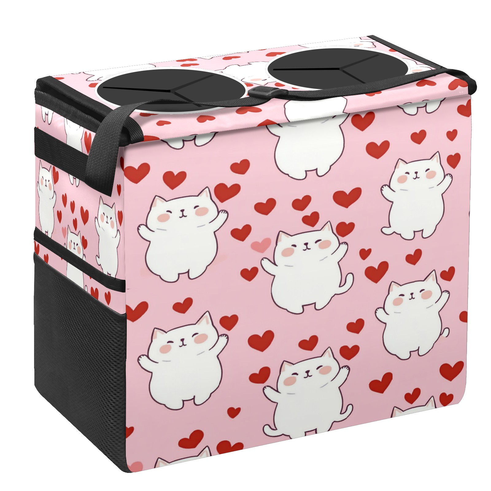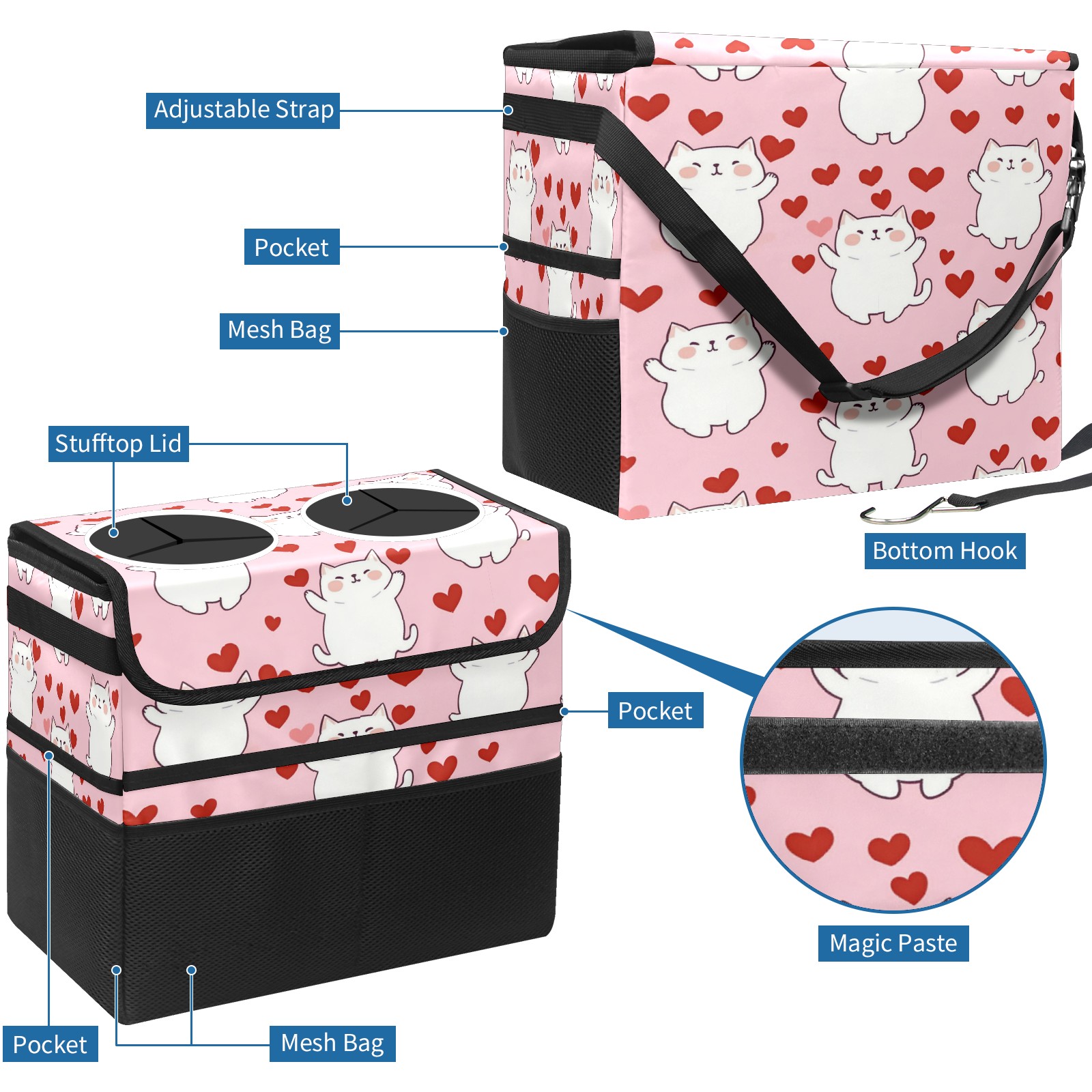 Car Trash Can with Lid, Portable Hanging Automotive Garbage Bin for Vehicles, Leakproof Waste Bag Container for SUV Truck Van Interior Auto Travel Road Trips(Cats)